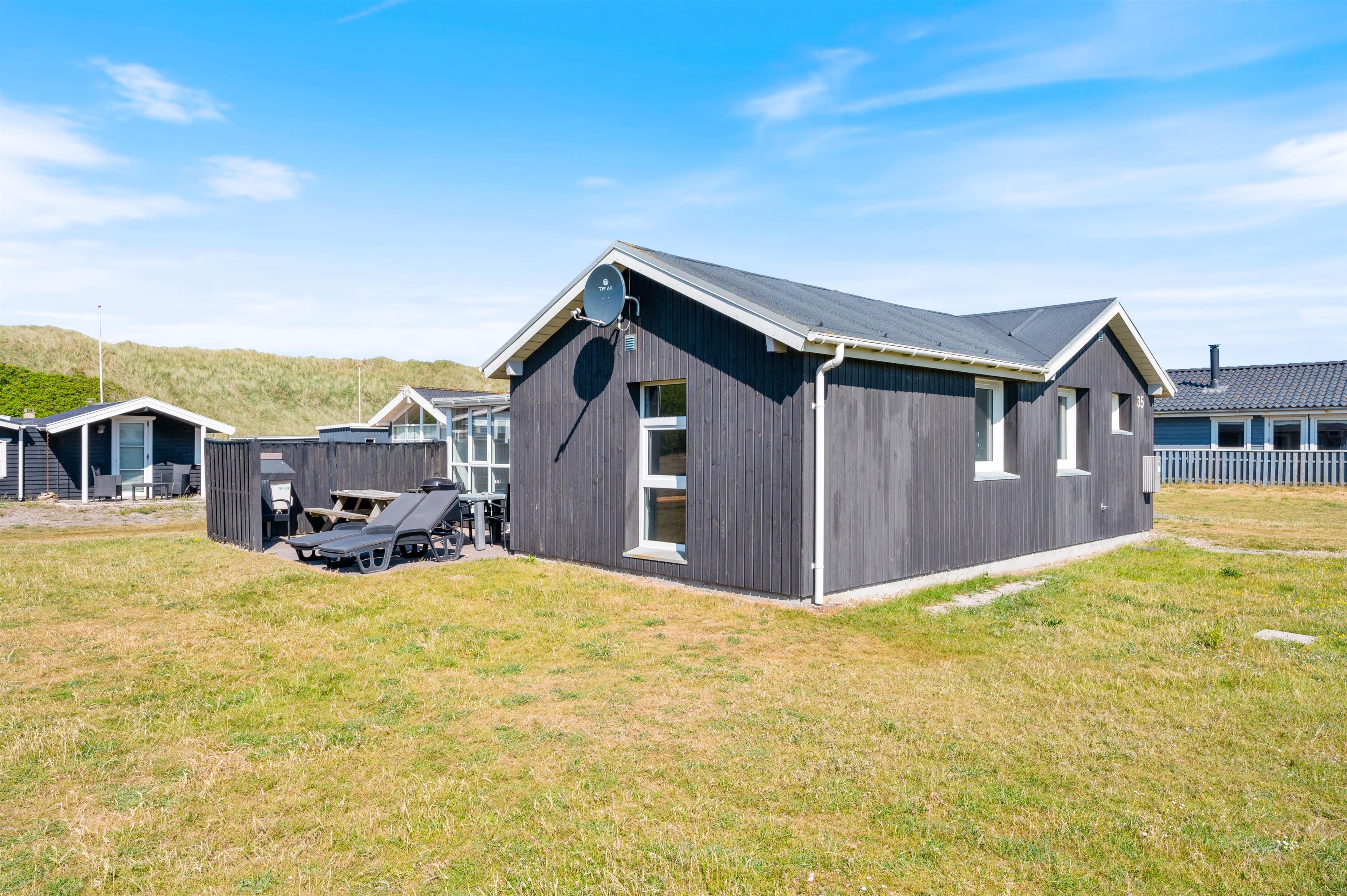 Sommerhuset har en dejlig terrasse med havemøbler, hvor I kan nyde solen og den friske havluft. Med kun 70 meter til stranden kan I høre Vesterhavets brusen, mens I slapper af med en god bog eller en kop kaffe.