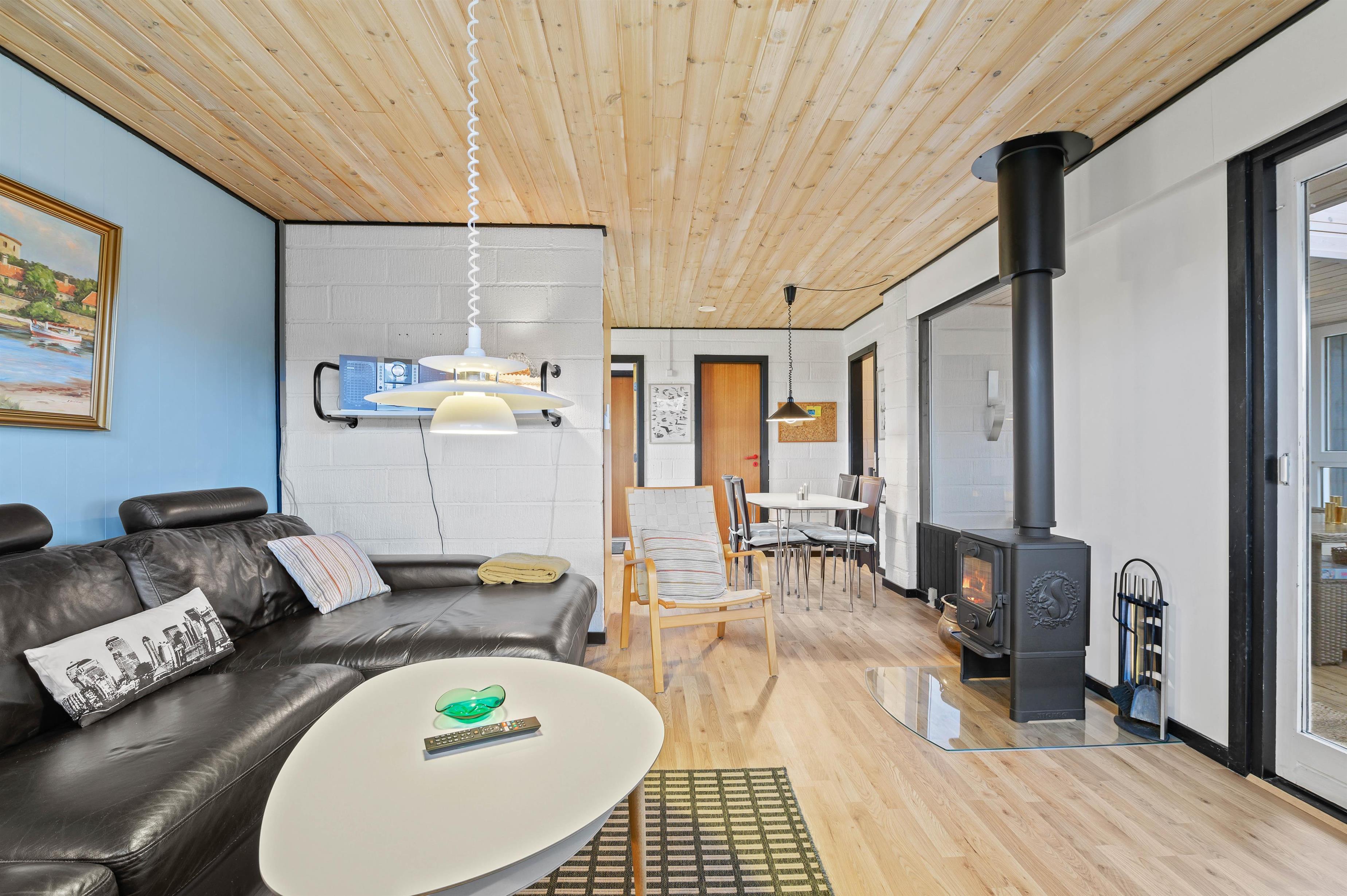Fra alrummet er der adgang til en skøn udestue, hvor I kan tilbringe mange hyggelige timer. Her kan I nyde varmen og de knitrende lyde fra brændeovnen, mens I slapper af med udsigt til haven og naturen udenfor.