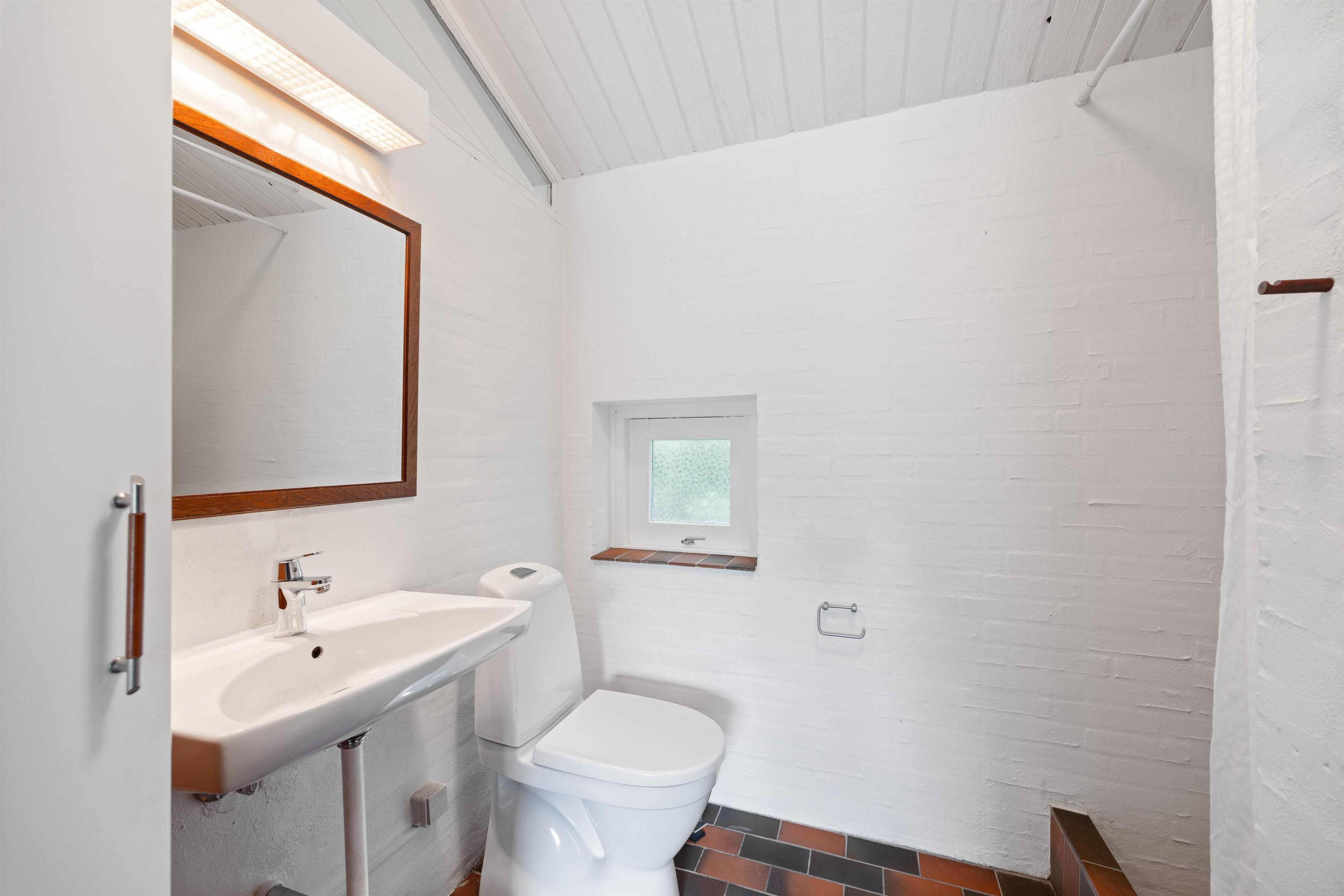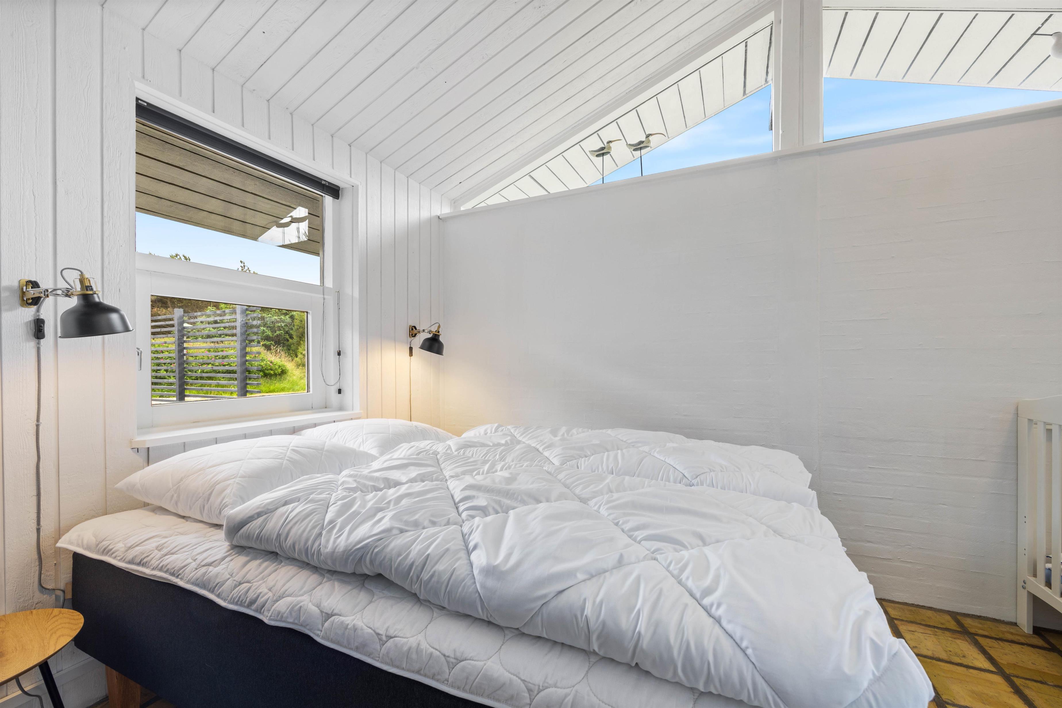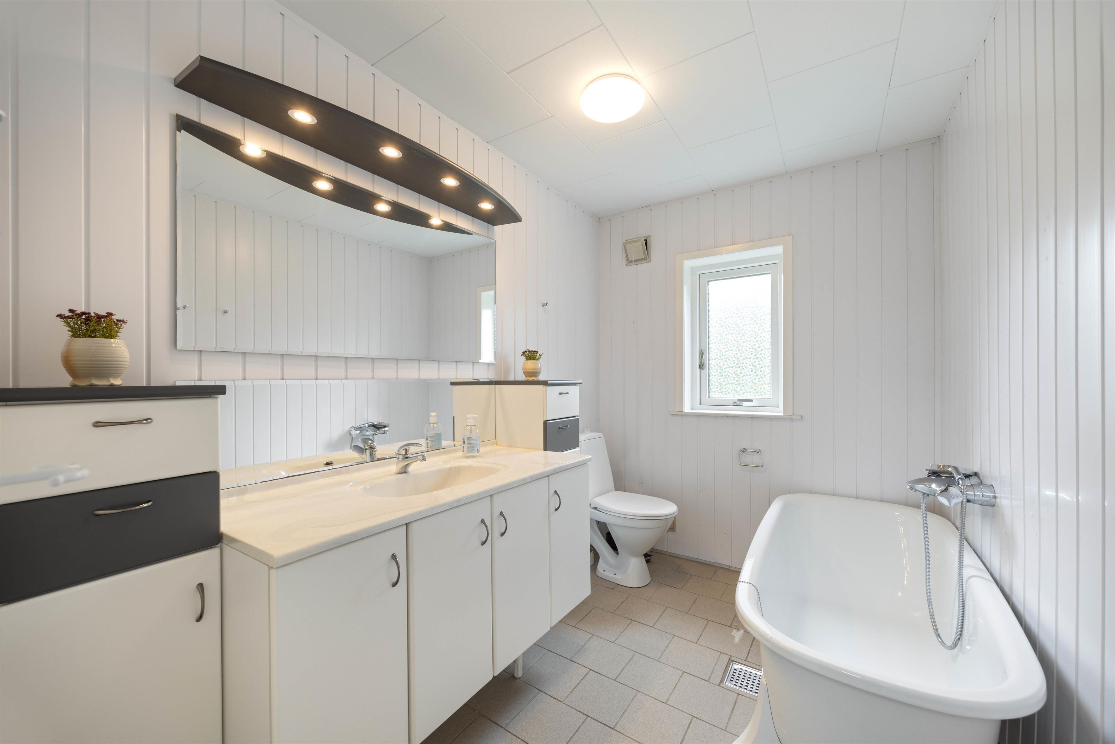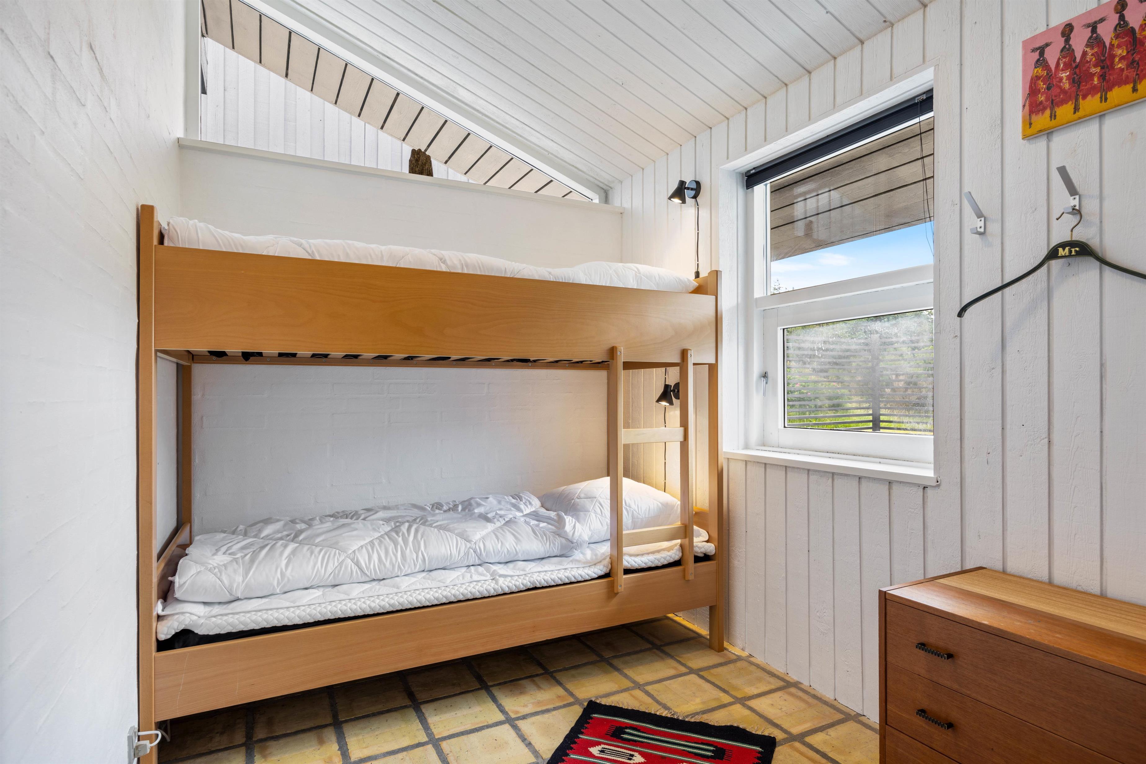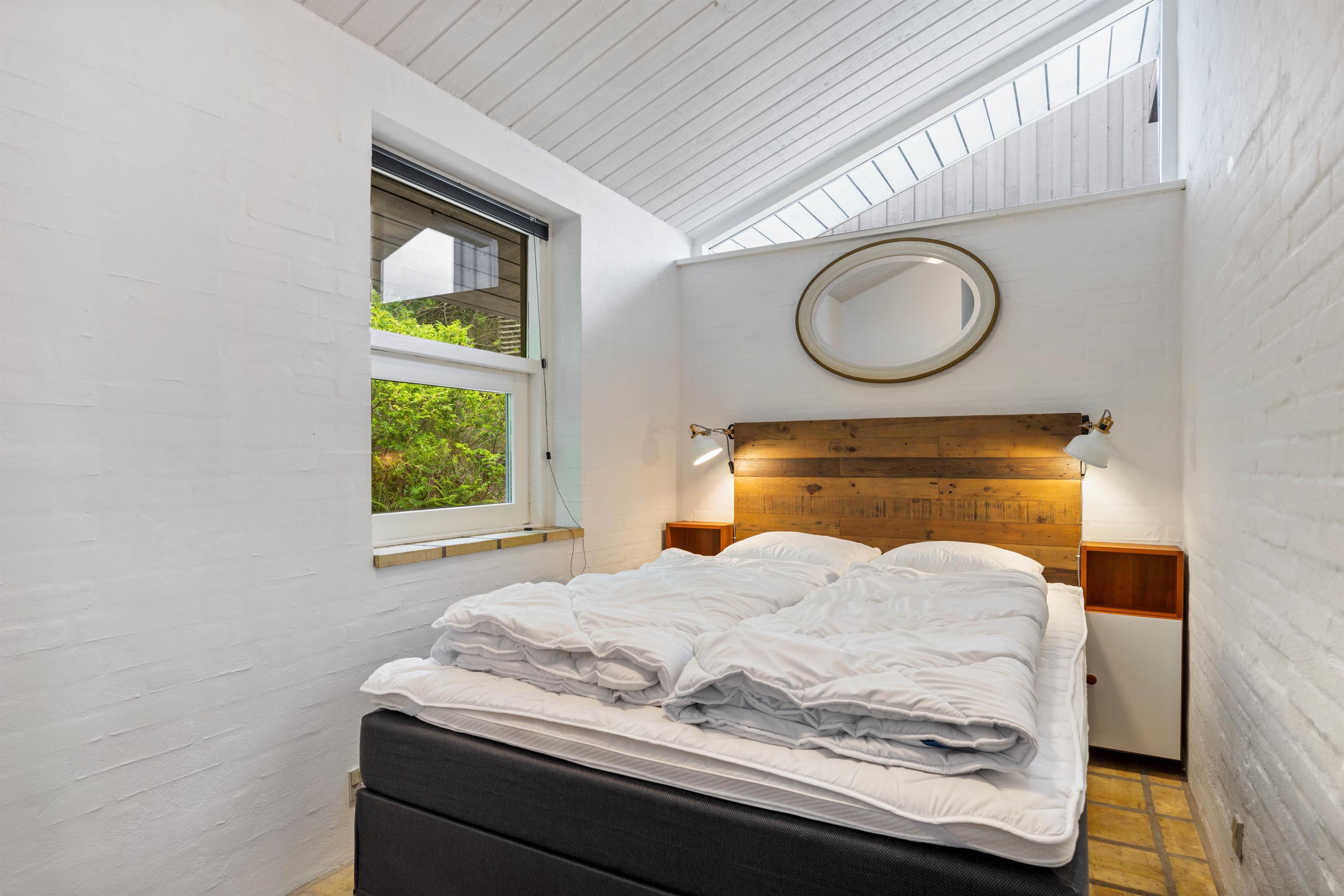 Når natten begynder at sænke sig, og batterierne skal lades op til en ny god feriedag, kan I fordele jer i sommerhusets 4 soveværelser og på den ene hems. 3 af soveværelserne er hver indrettet med en dobbeltseng, 1 er indrettet med en køjeseng og hemsen er indrettet med 2 enkeltsenge. I sommerhuset finder I også 2 badeværelser, som ligger praktisk i hver ende af sommerhuset. Ydermere er der på det ene af badeværelserne et badekar, så her er der mulighed for at blive varmet godt igennem, og bare slappe helt af.
