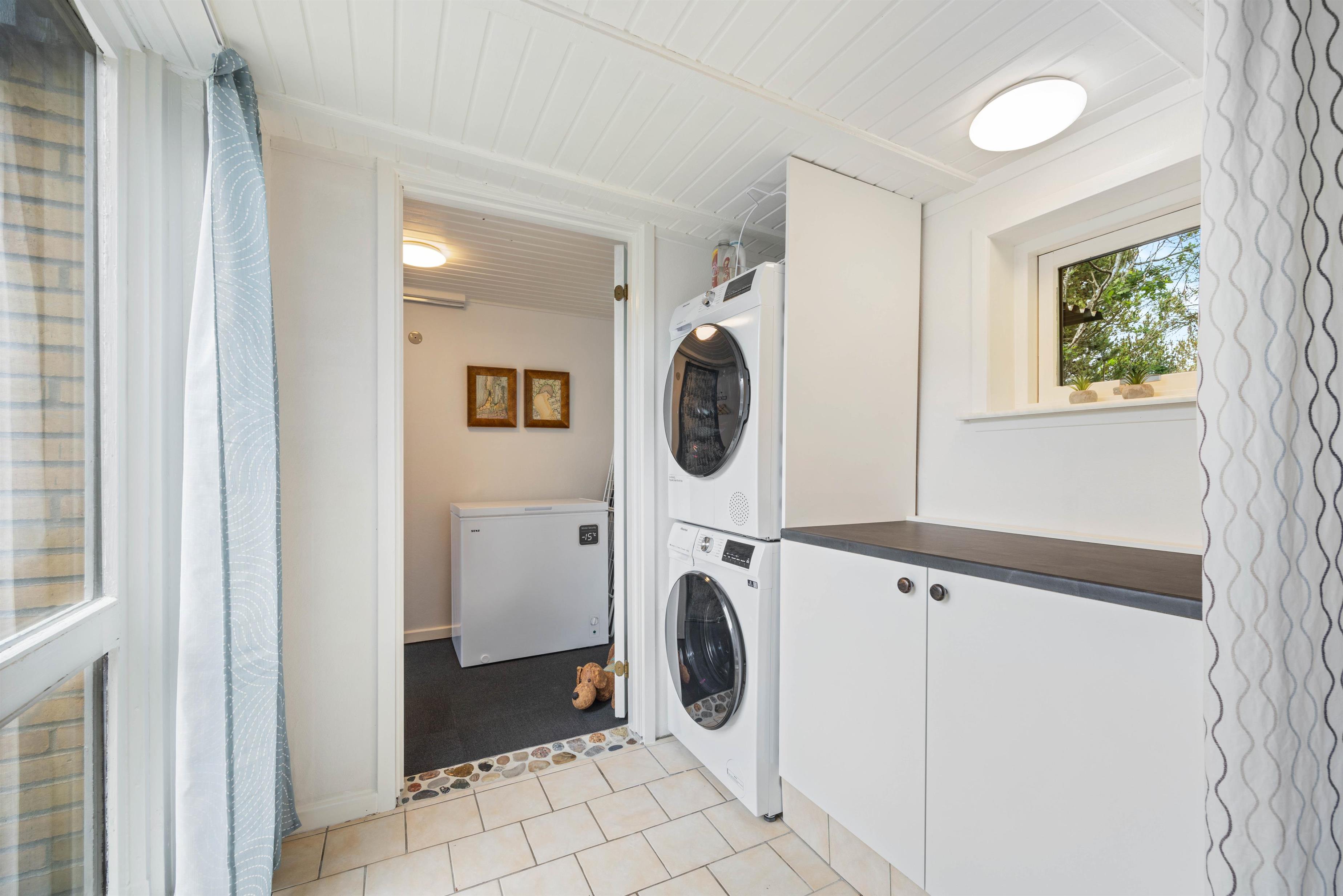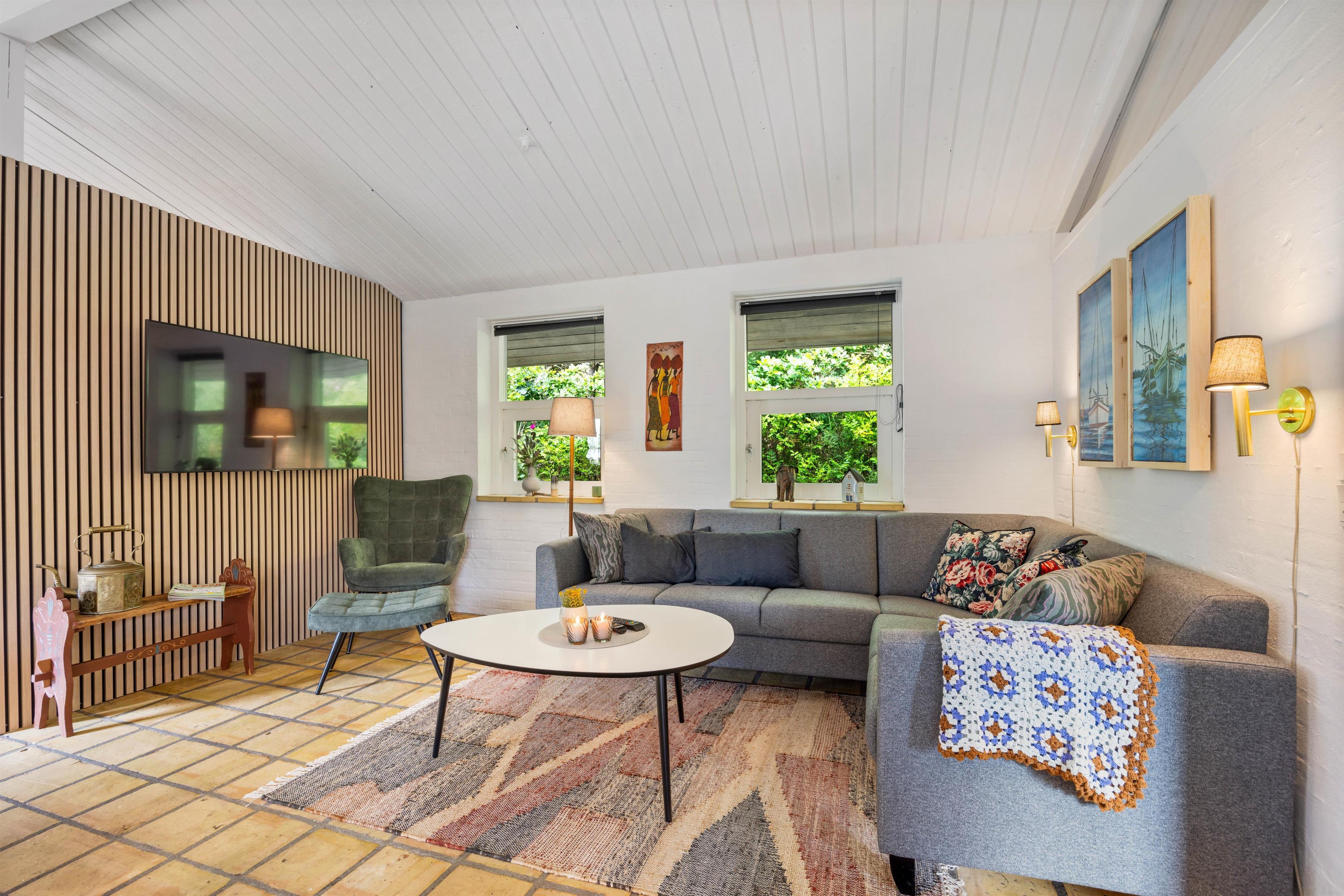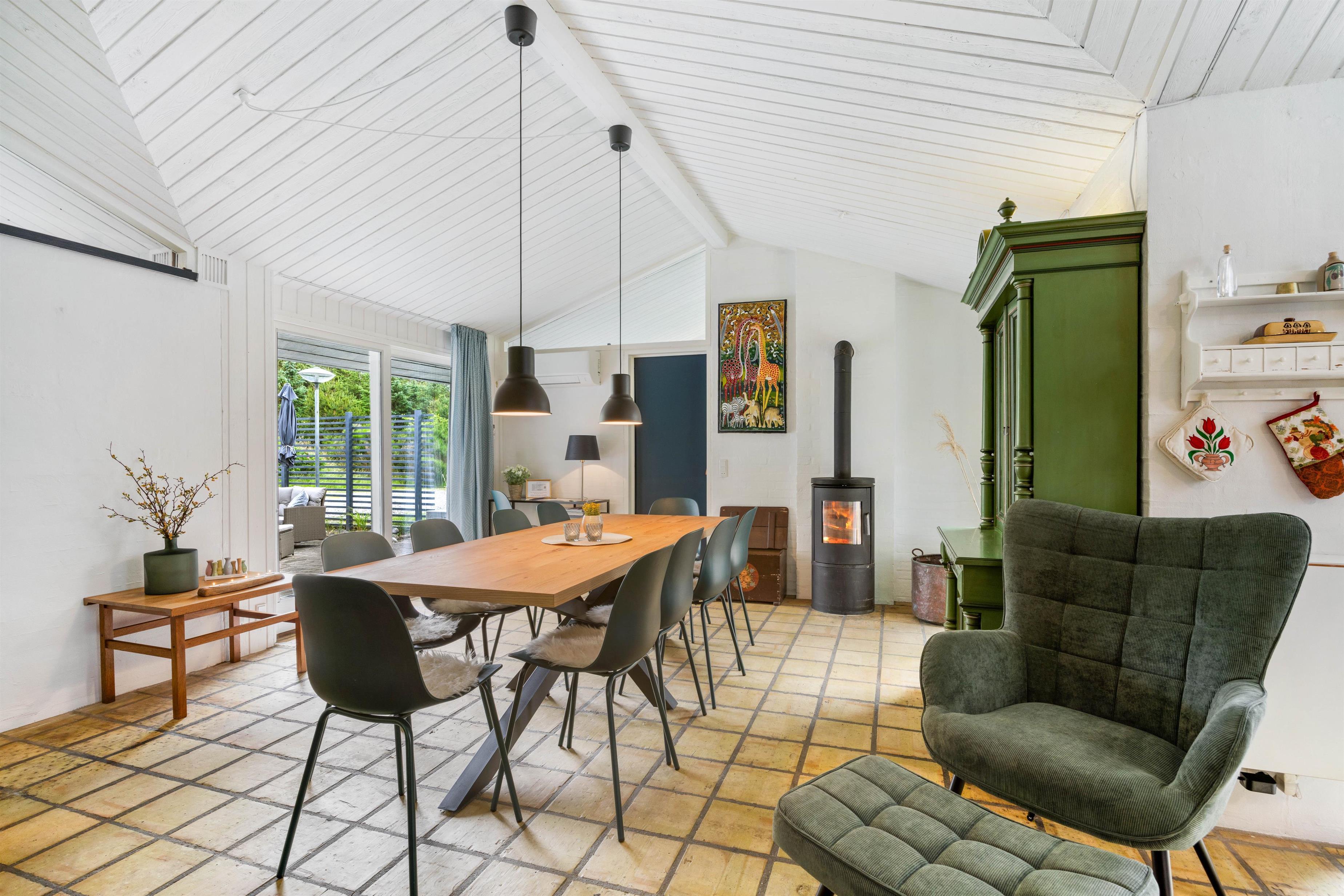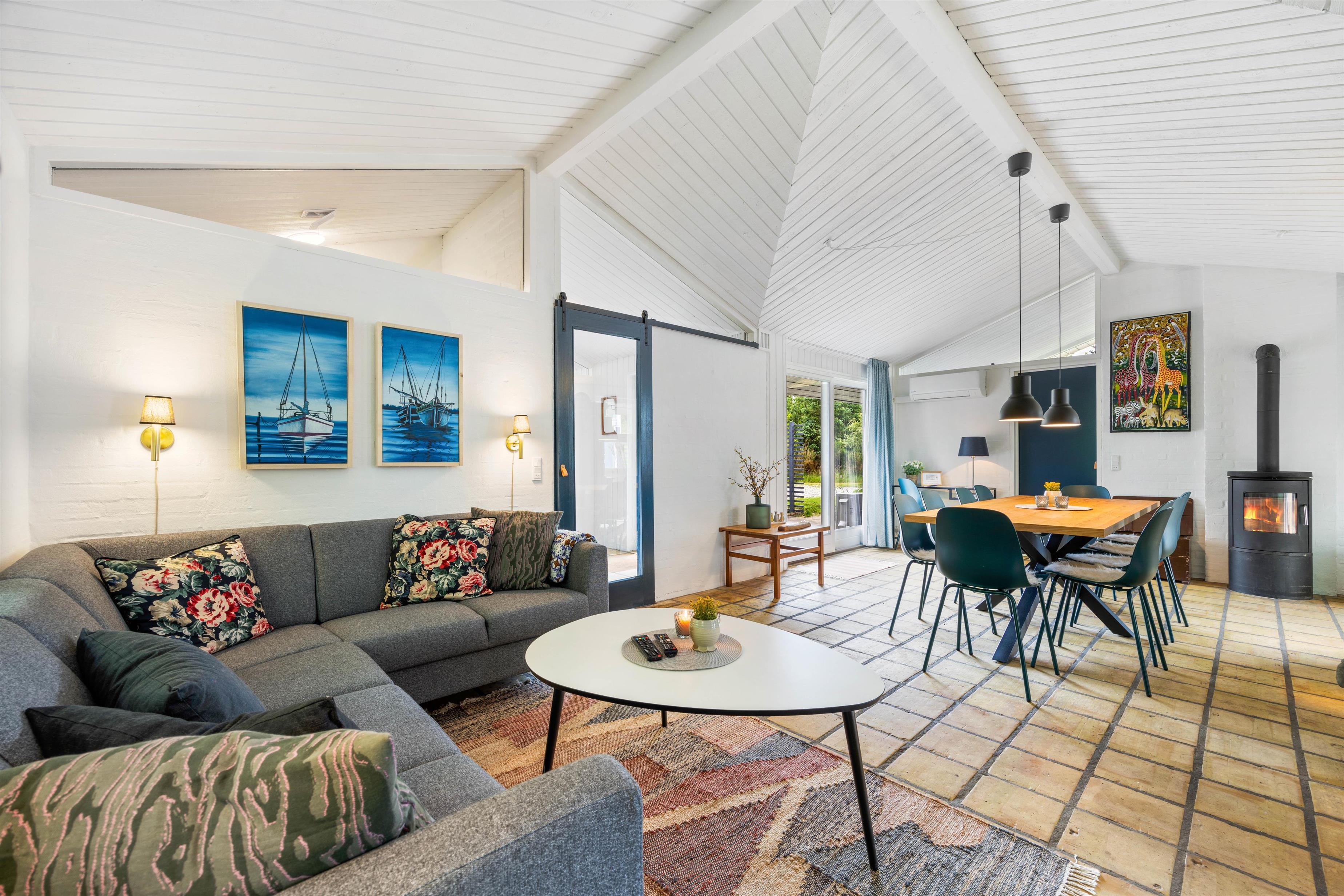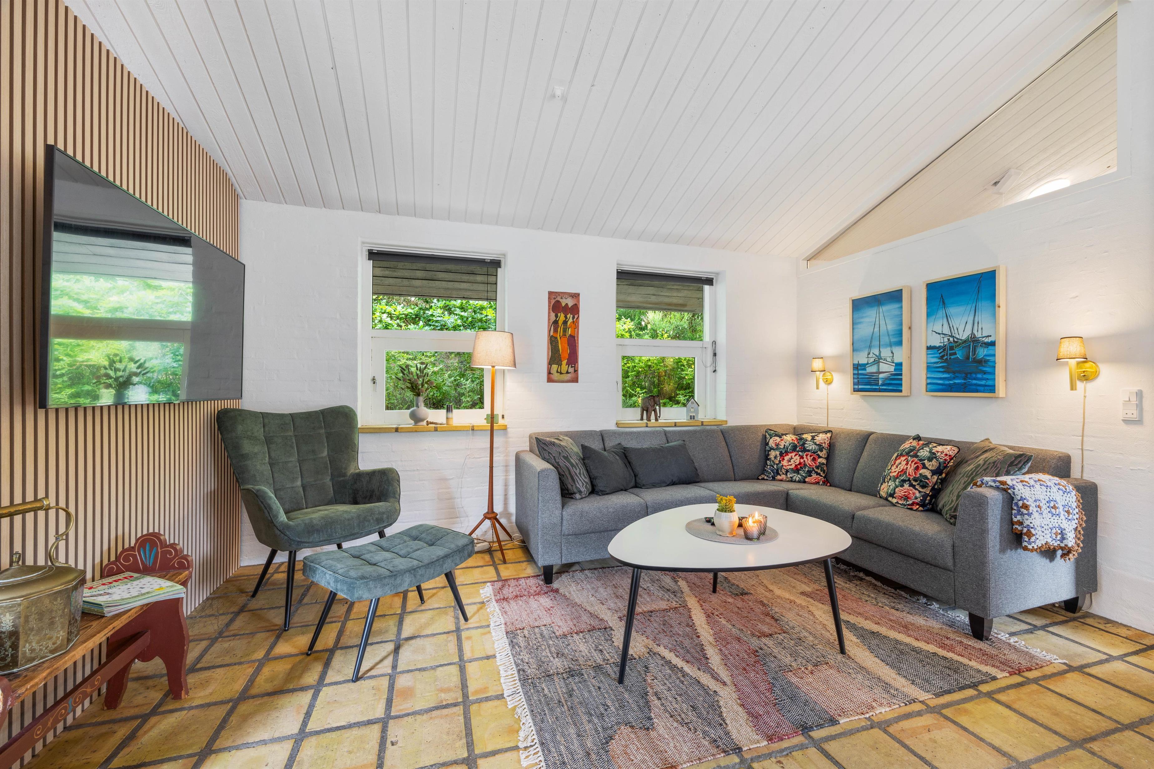 Lige så snart I træder ind i sommerhuset, vil I blive mødt af den ægte sommerhusstemning. Her er der mulighed for at slappe af og hygge sig sammen med sin familie eller venner. I stuen er det oplagt at sætte en god film eller serie på, og bare nyde I har en velfortjent og god ferie. På de lidt koldere dage er det oplagt at tænde op i brændeovnen, og stille og roligt mærke varmen brede sig i hele sommerhuset. Har I ikke tændt for brændeovnen, har I en energibesparende luft til luft varmepumpe til rådighed, som vil sørge for et rart og behageligt indeklima, hele året rundt.