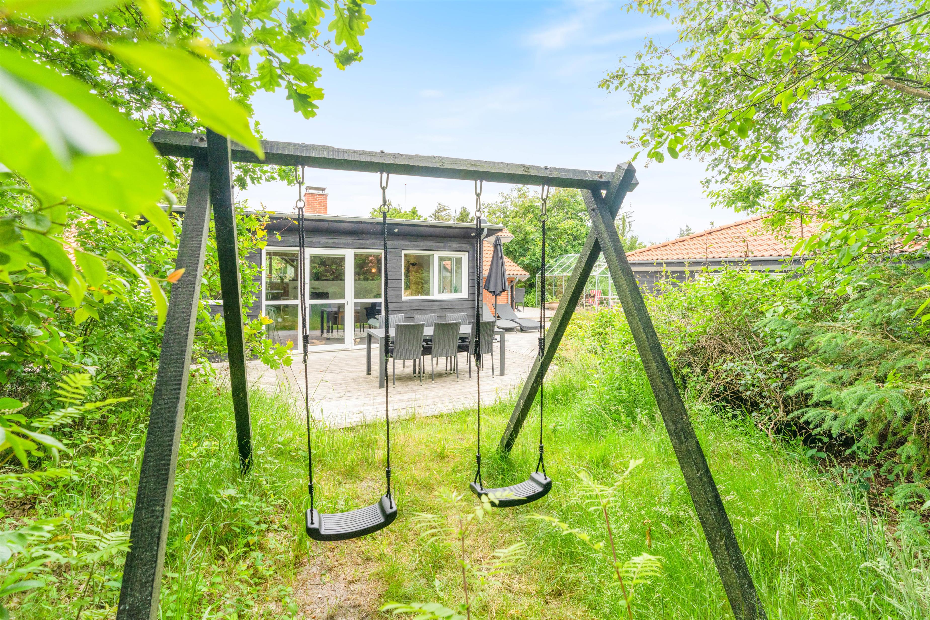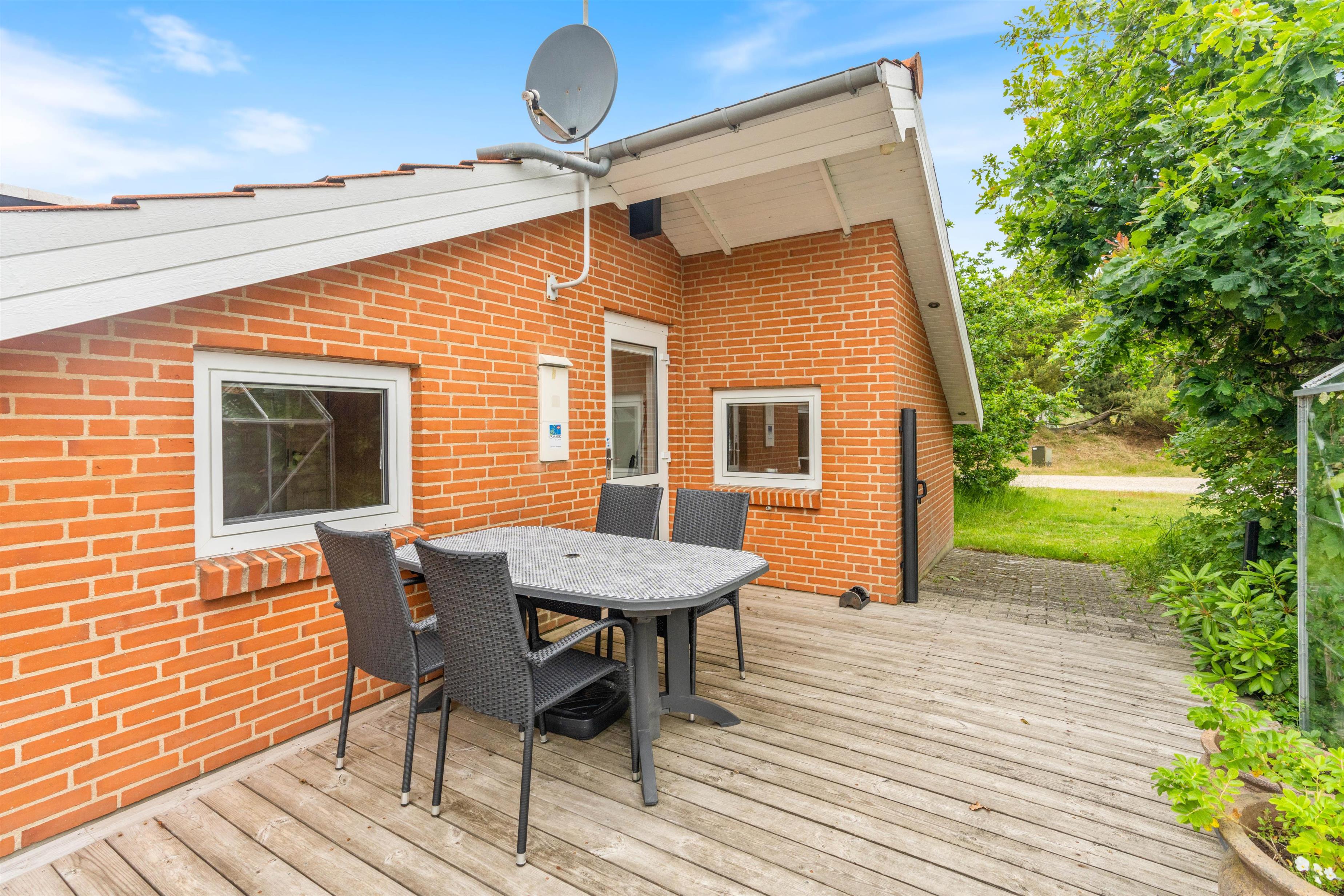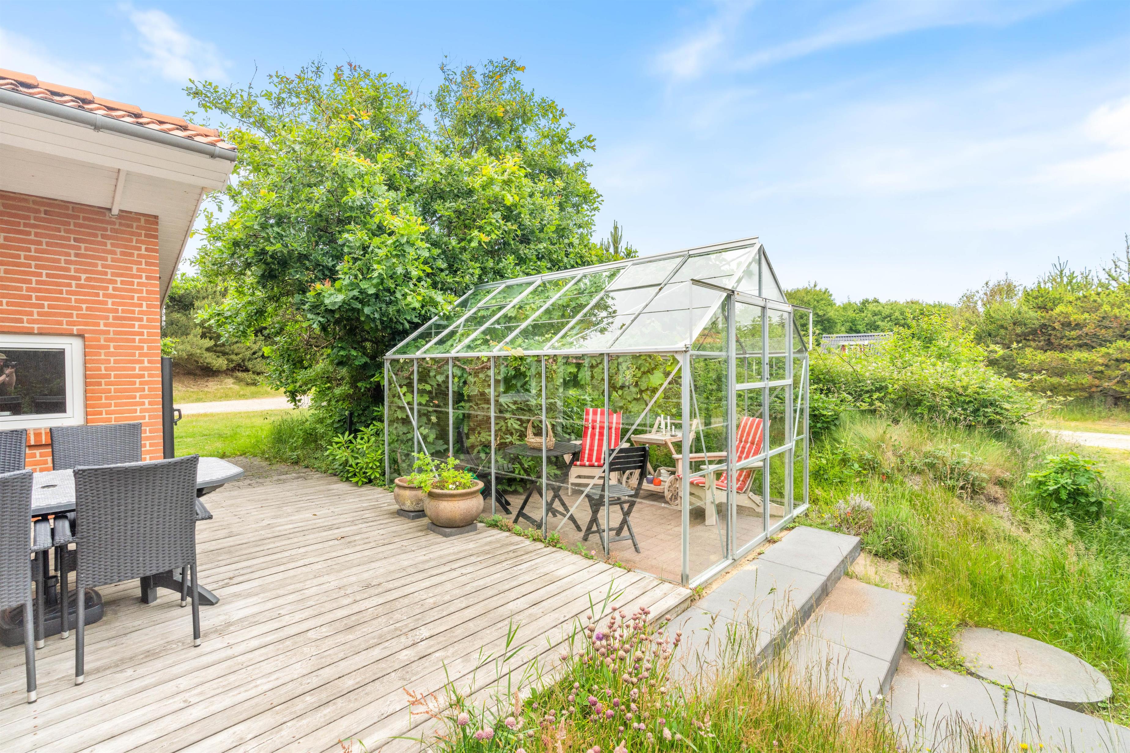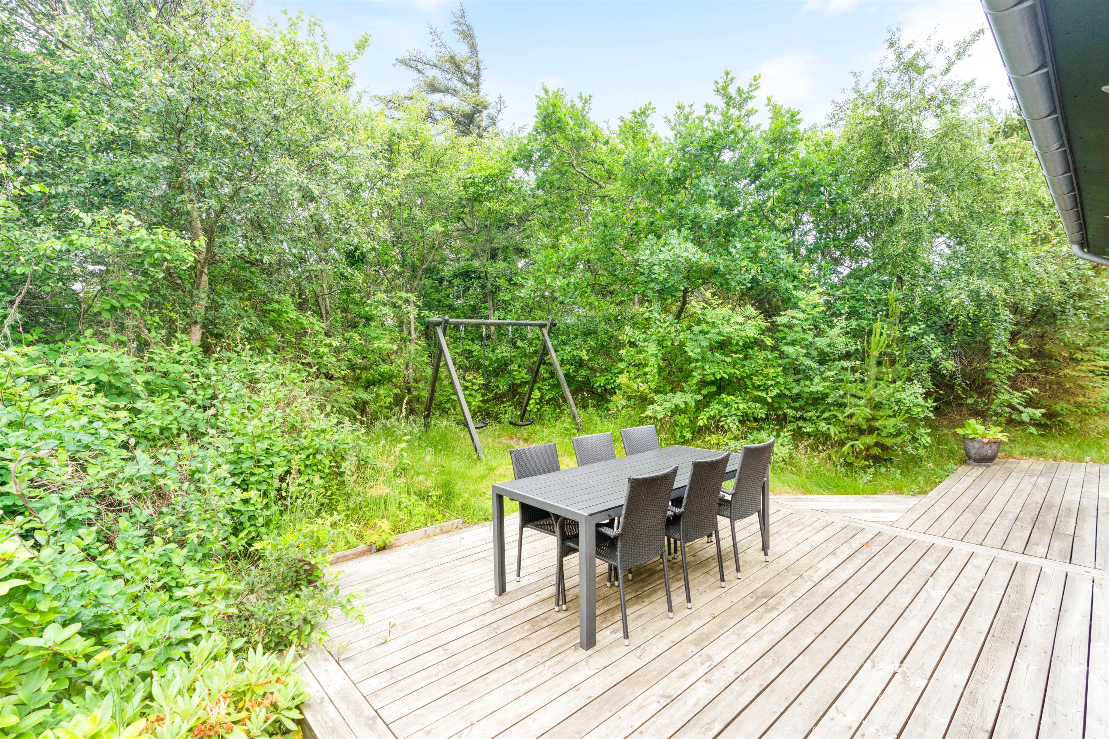 Ved sommerhuset finder I flere gode hjørner og kroge, hvor I kan hygge jer og nyde solen. Der er flere lækroge, hvor I kan sidde godt beskyttet mod vestenvinden – perfekt til en rolig morgenstund, mens resten af huset langsomt vågner, eller til aftensmad, mens grillen bliver varm.