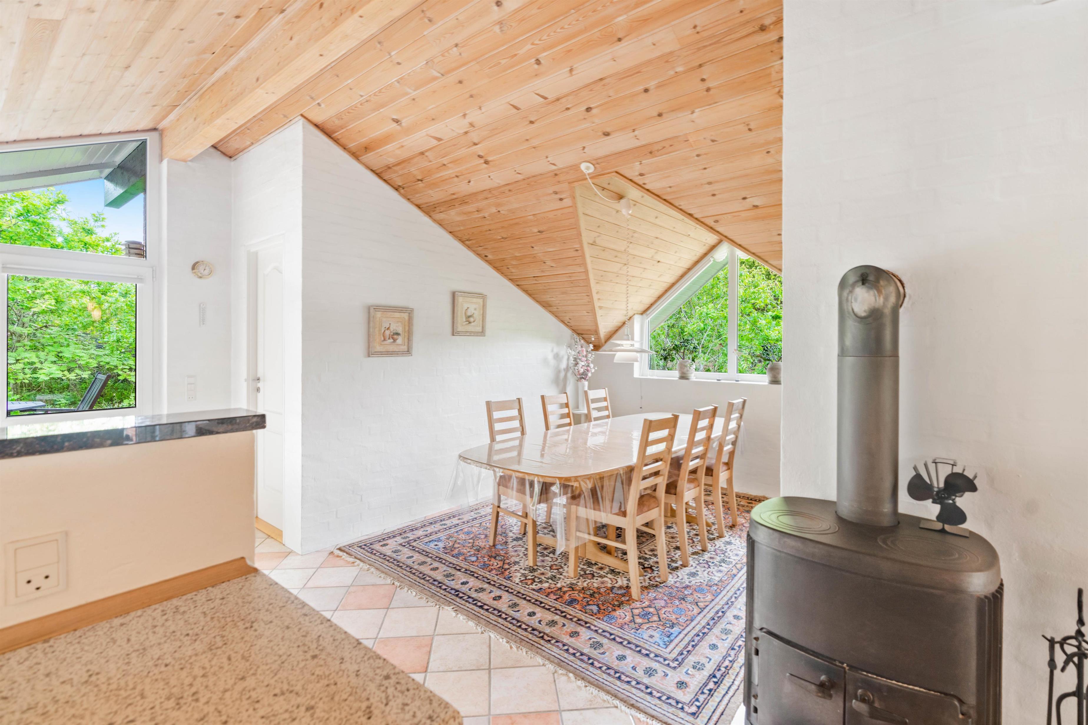 Sommerhuset på Hagevej 115 i Fjand ligger på en over 1000 kvadratmeter stor grund og byder på mere end 110 kvadratmeter boligareal. Alt hvad I har brug for fra et veludstyret køkken med opvaskemaskine til en hyggelig stue med brændeovn, finder I her.