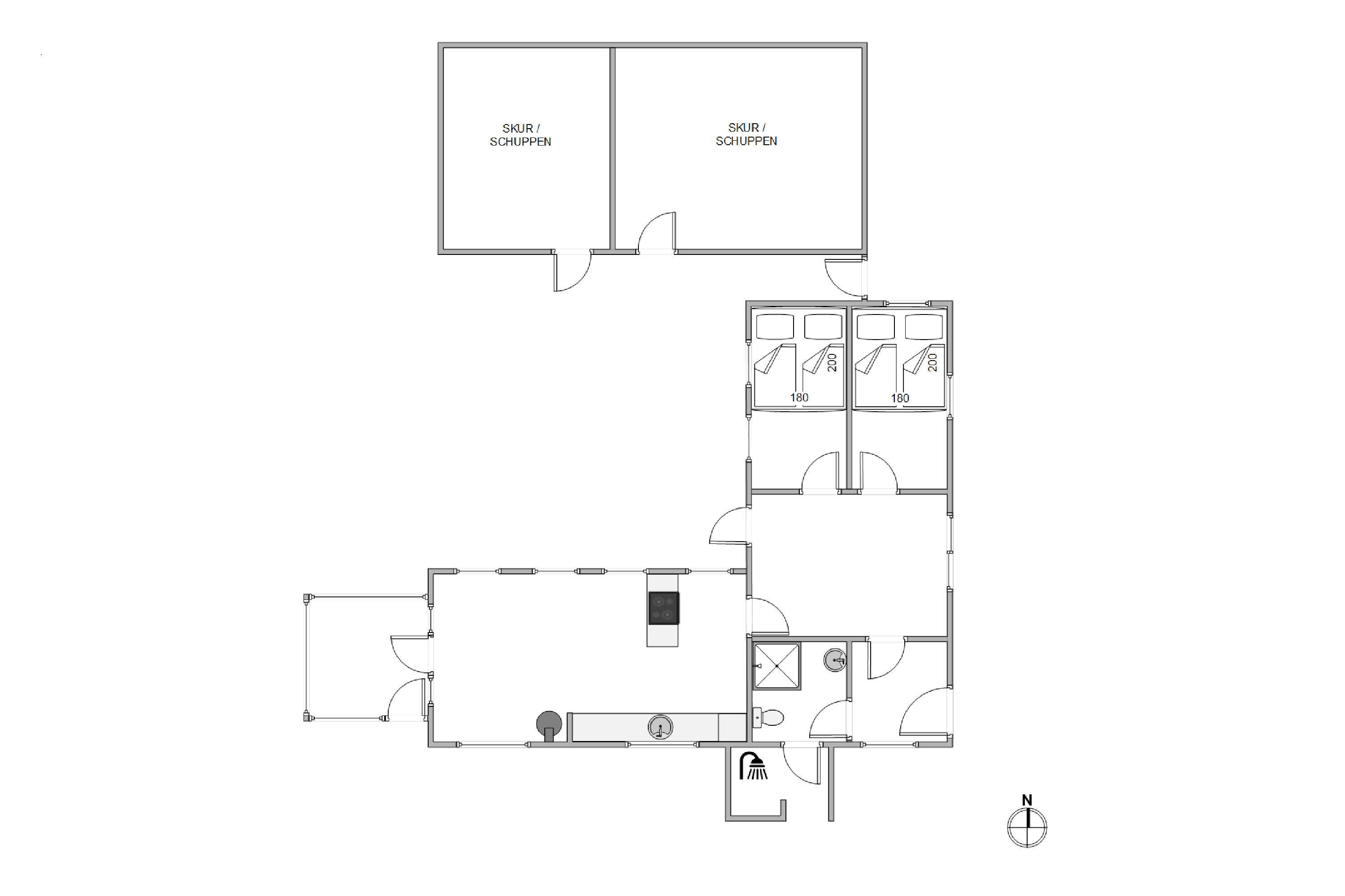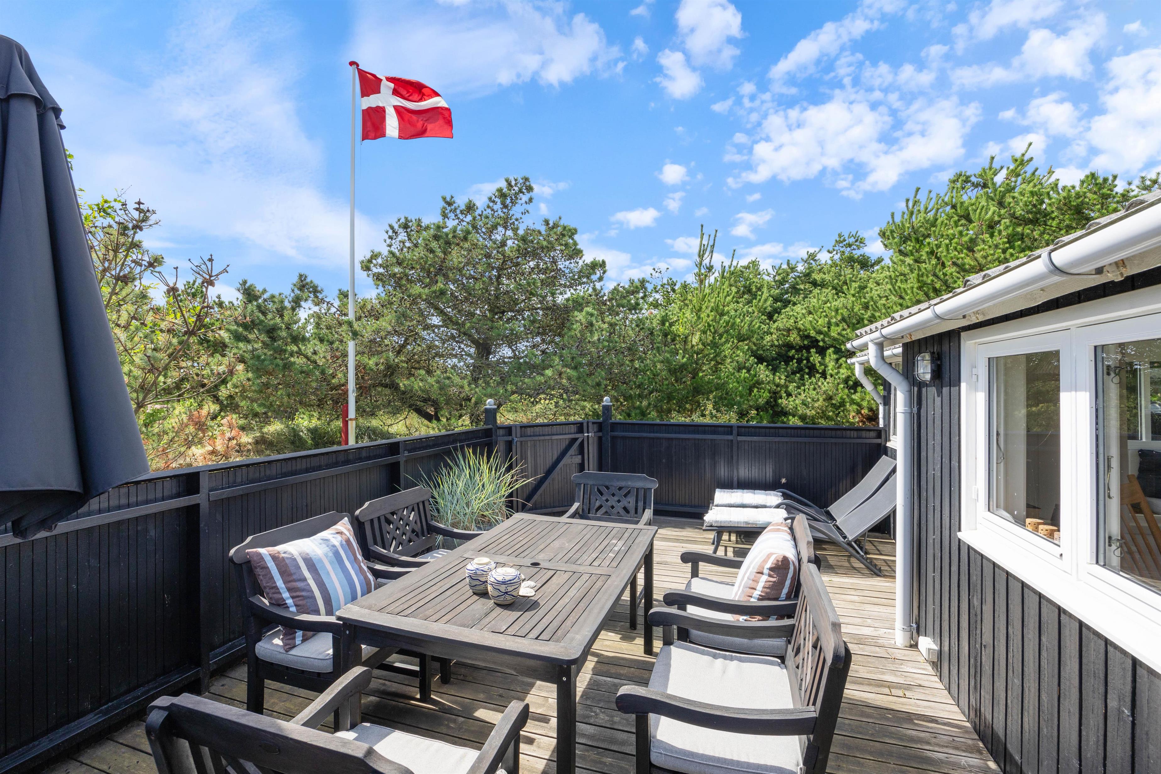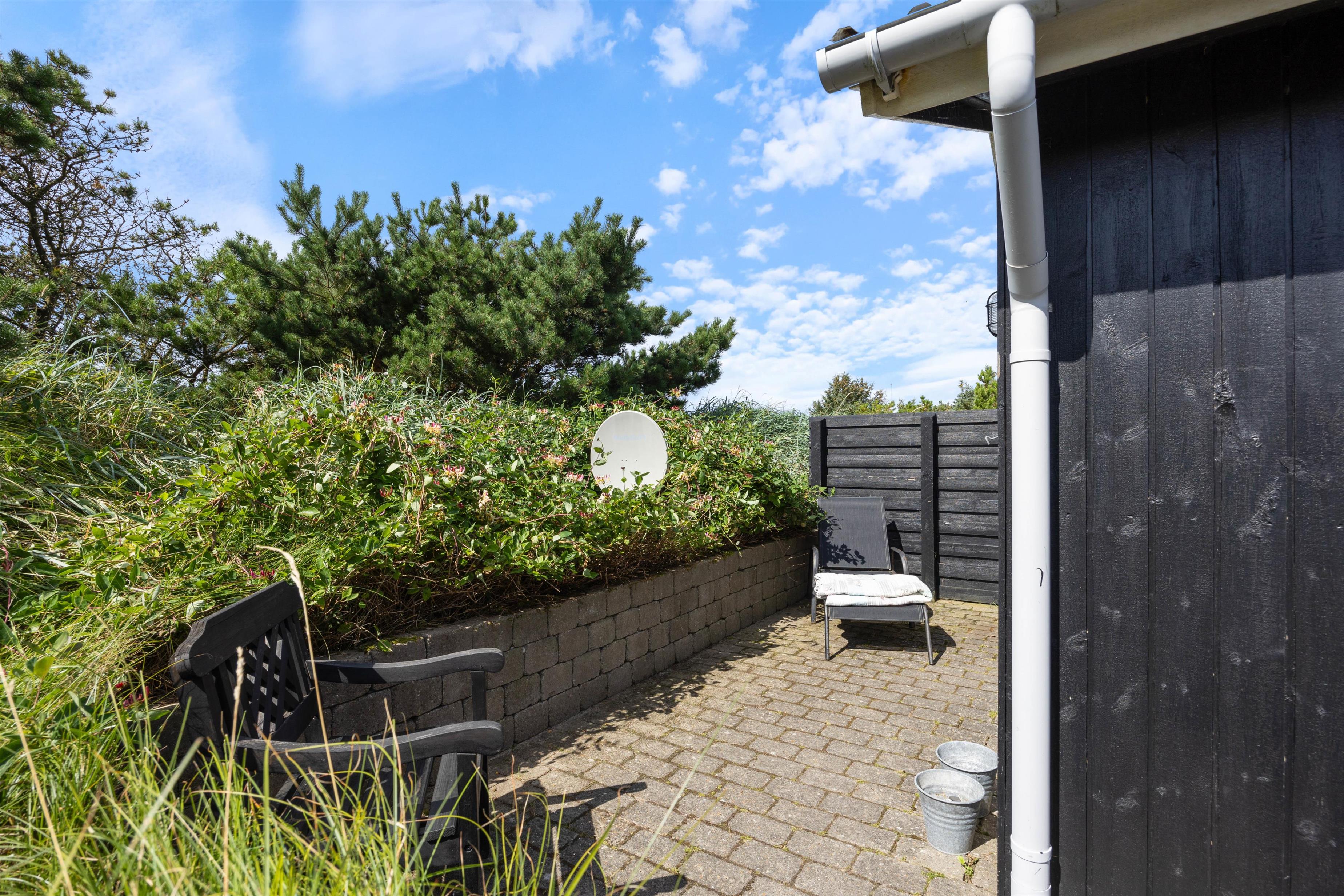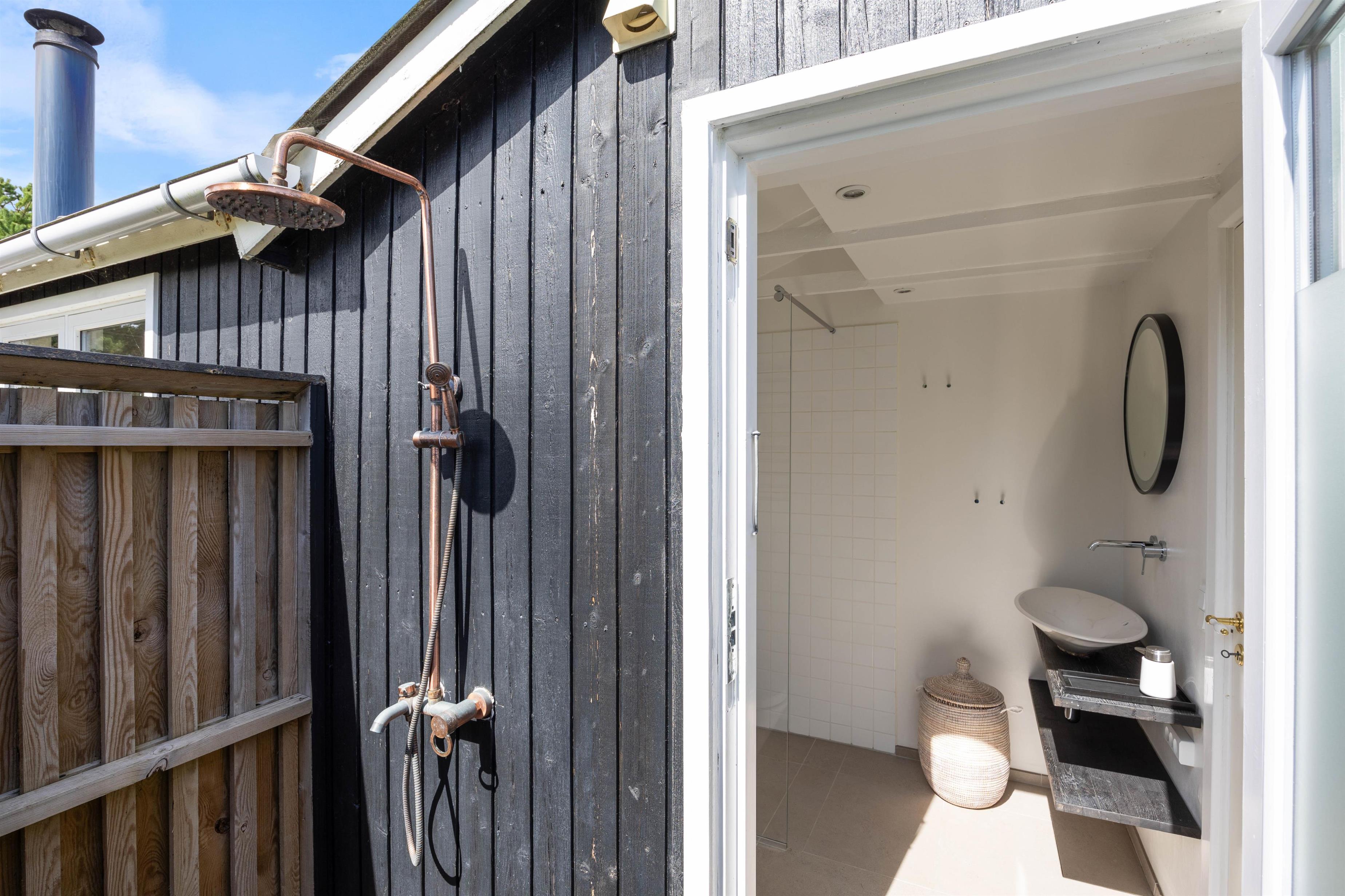 Sommerhuset er beliggende på en hele 3.000 kvadratmeter stor naturgrund i Fjand, der er godt afskærmet af træer og buskads. Her kan I ganske ugeneret nyde den friske luft på en af de gode terrasser. Alle terrasserne er lukket af, hvilket ikke kun giver jer privatliv, men også er praktisk, hvis I har hunden med på ferie. Her finder I også en lækker ugeneret udebruser, så I kan få skyllet jer efter en varm dag i solen.