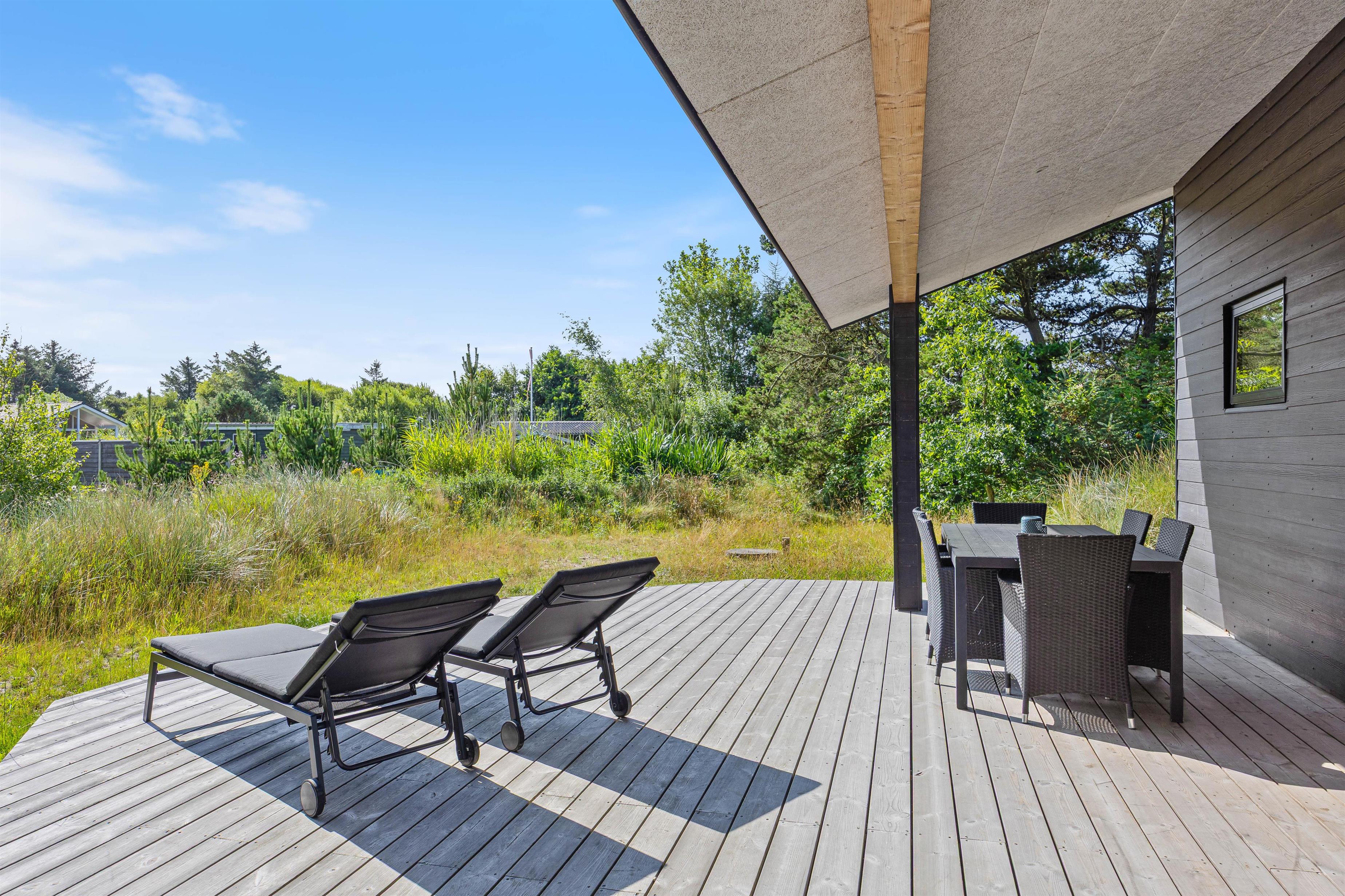 Sommerhuset byder på et væld af udendørs faciliteter, der gør det til et ideelt valg for naturelskere og alle, der sætter pris på ro og afslapning i smukke omgivelser. På den 1.200 m² store naturgrund finder I både en åben og en afskærmet terrasse samt en overdækket terrasse, så I kan nyde udelivet uanset vind og vejr.