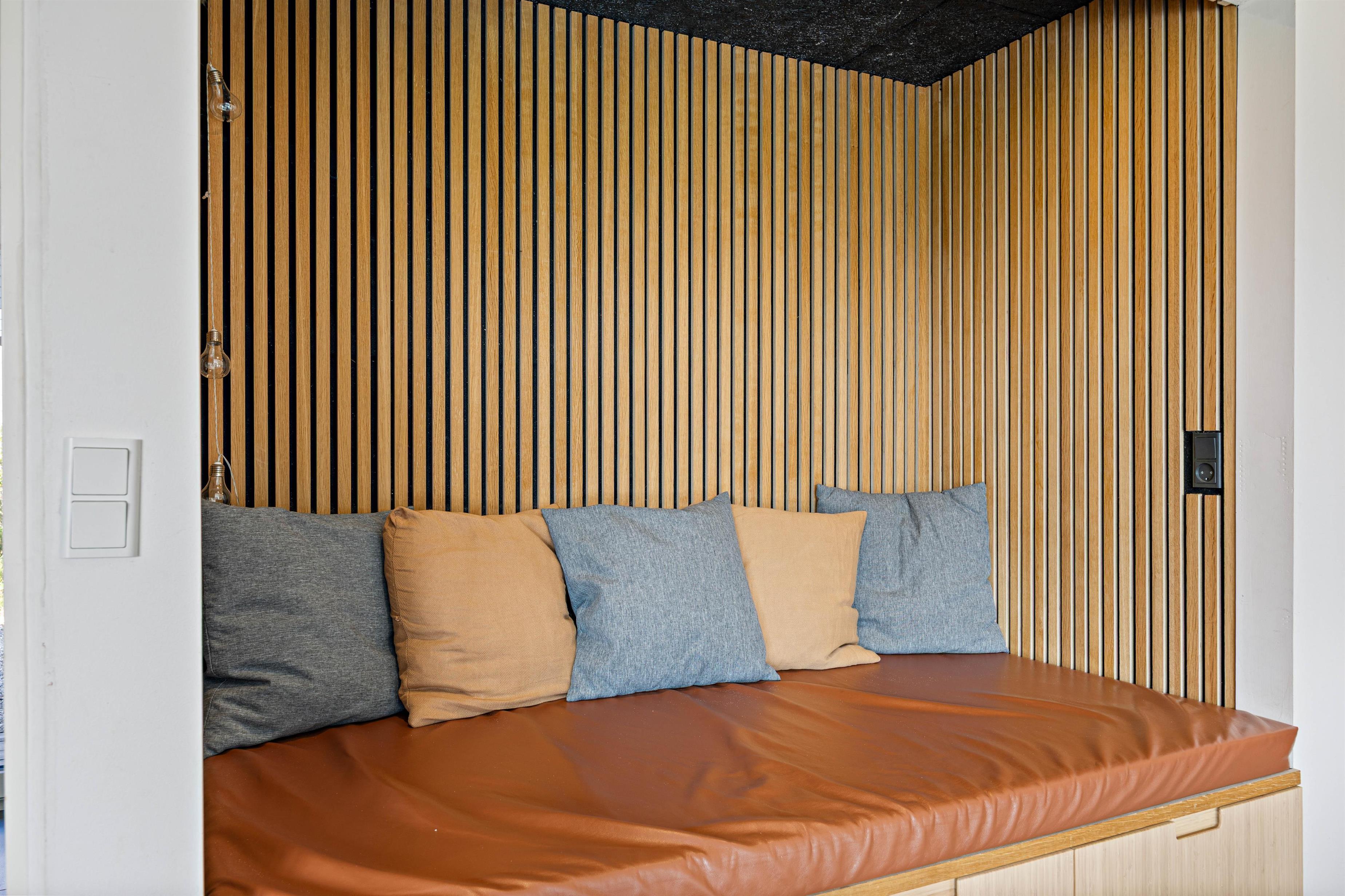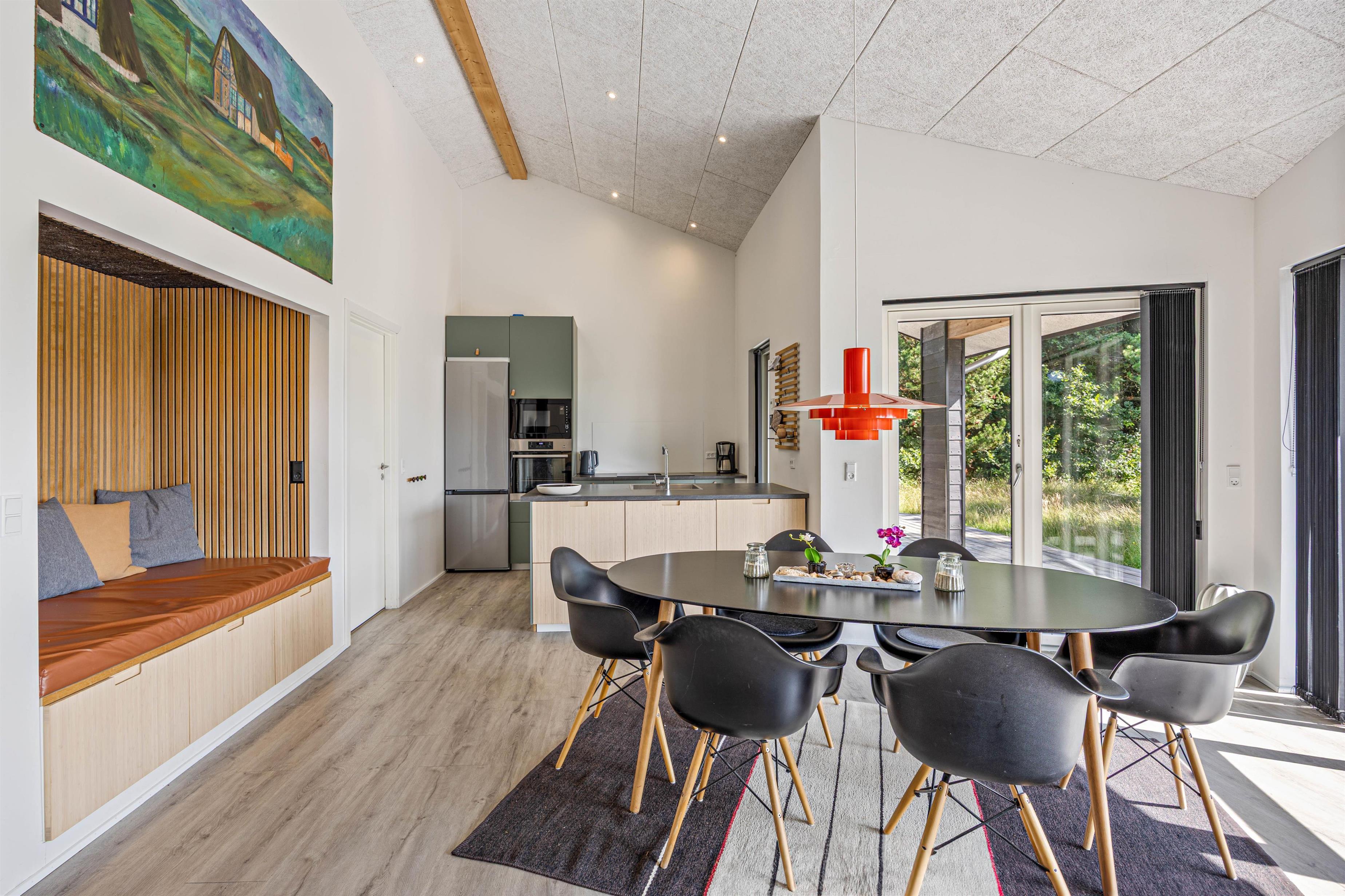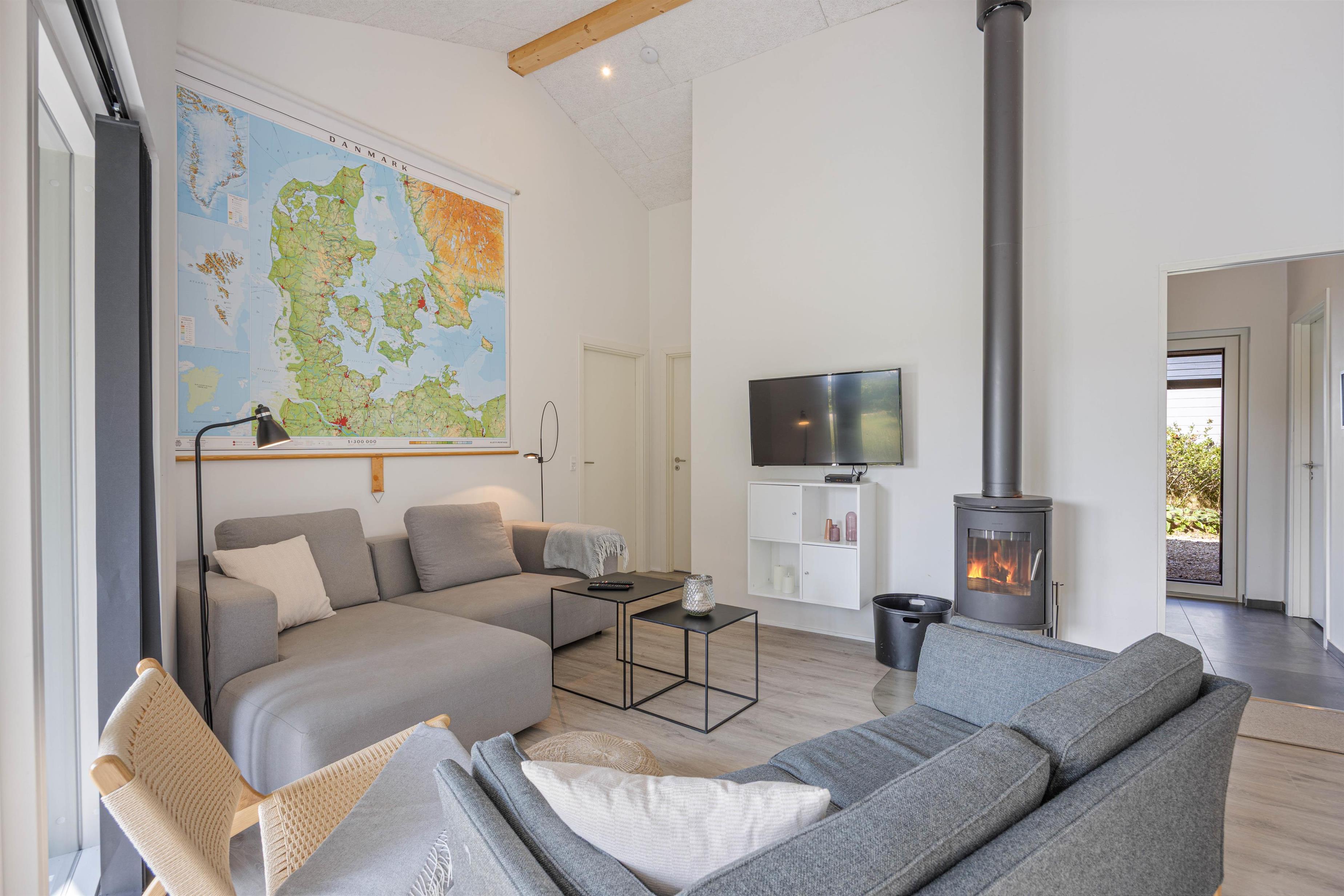De lækre omgivelser byder jer straks velkommen. Her er der virkelig taget godt imod jer som gæster. Stue og køkken er i åben forbindelse, og der er indbygget en hyggekrog, som gør det muligt at samle hele familien i husets hjerte. Brændeovnen i stuen værner om hyggen, og foran den kan hele familien samles. Muligheden for en mere miljøvenlig opvarmning finder I også i husets luft-til-vand varmepumpe. Desuden kan I benytte det hurtige internet til at streame jeres yndlingsfilm.