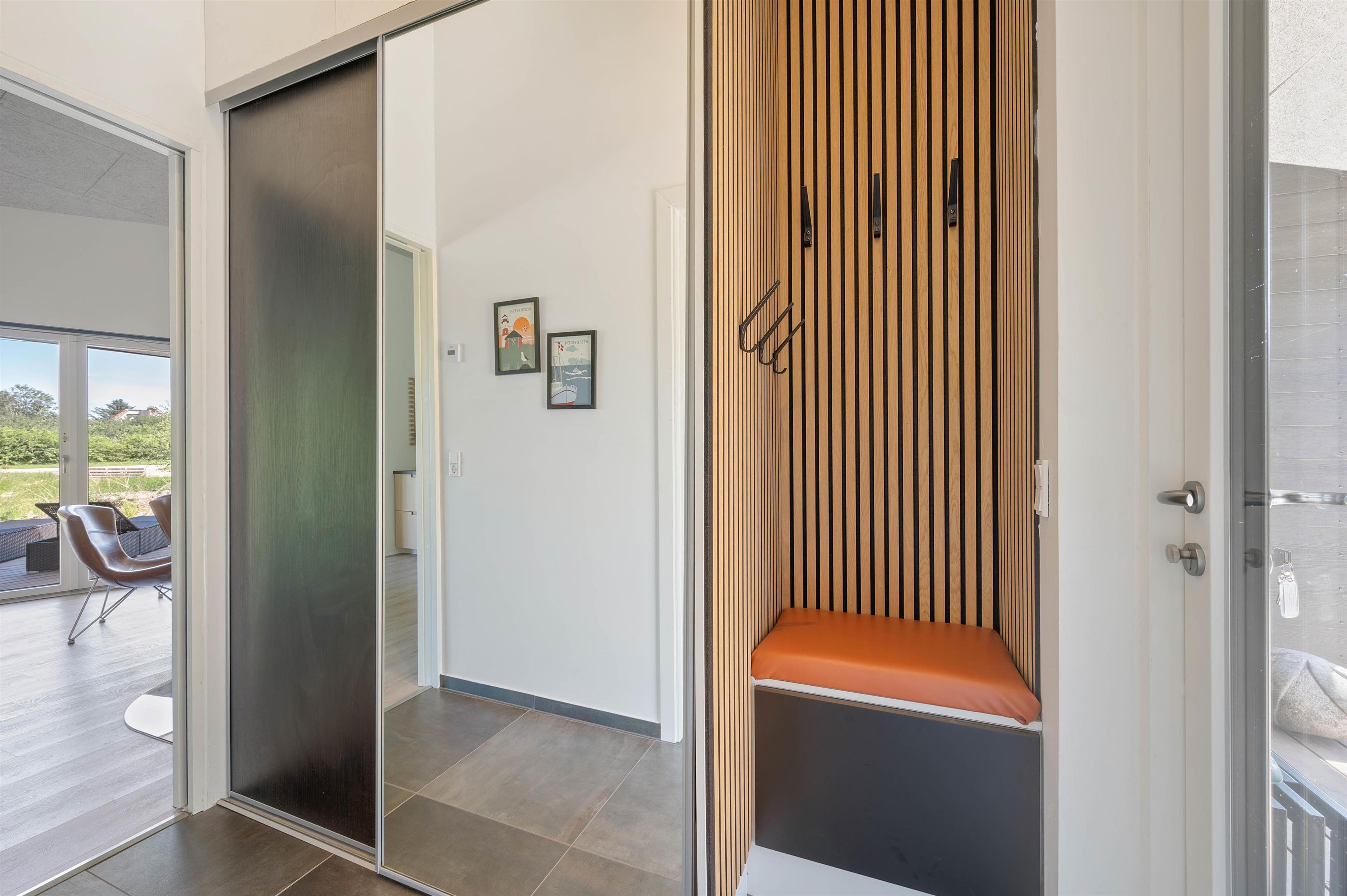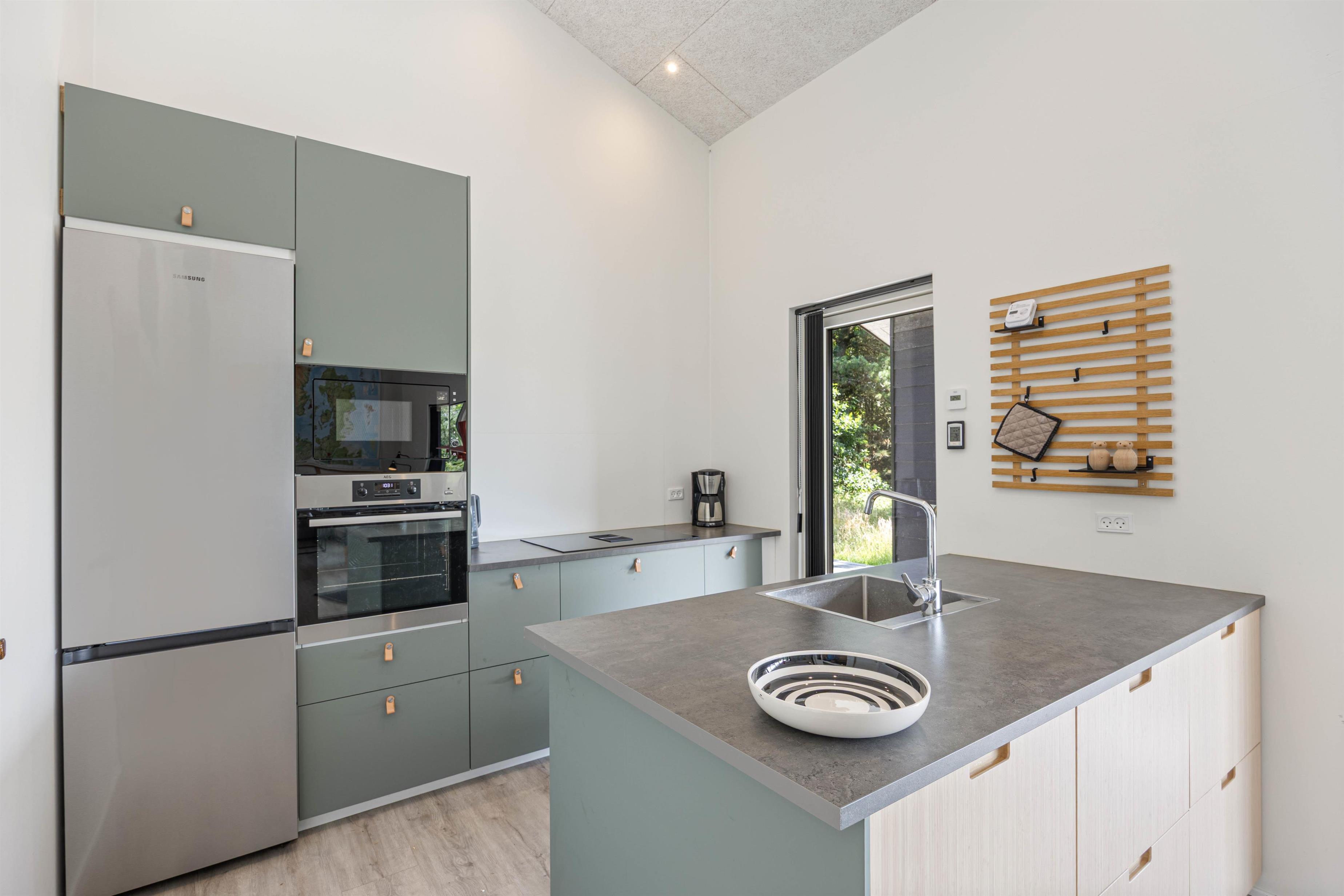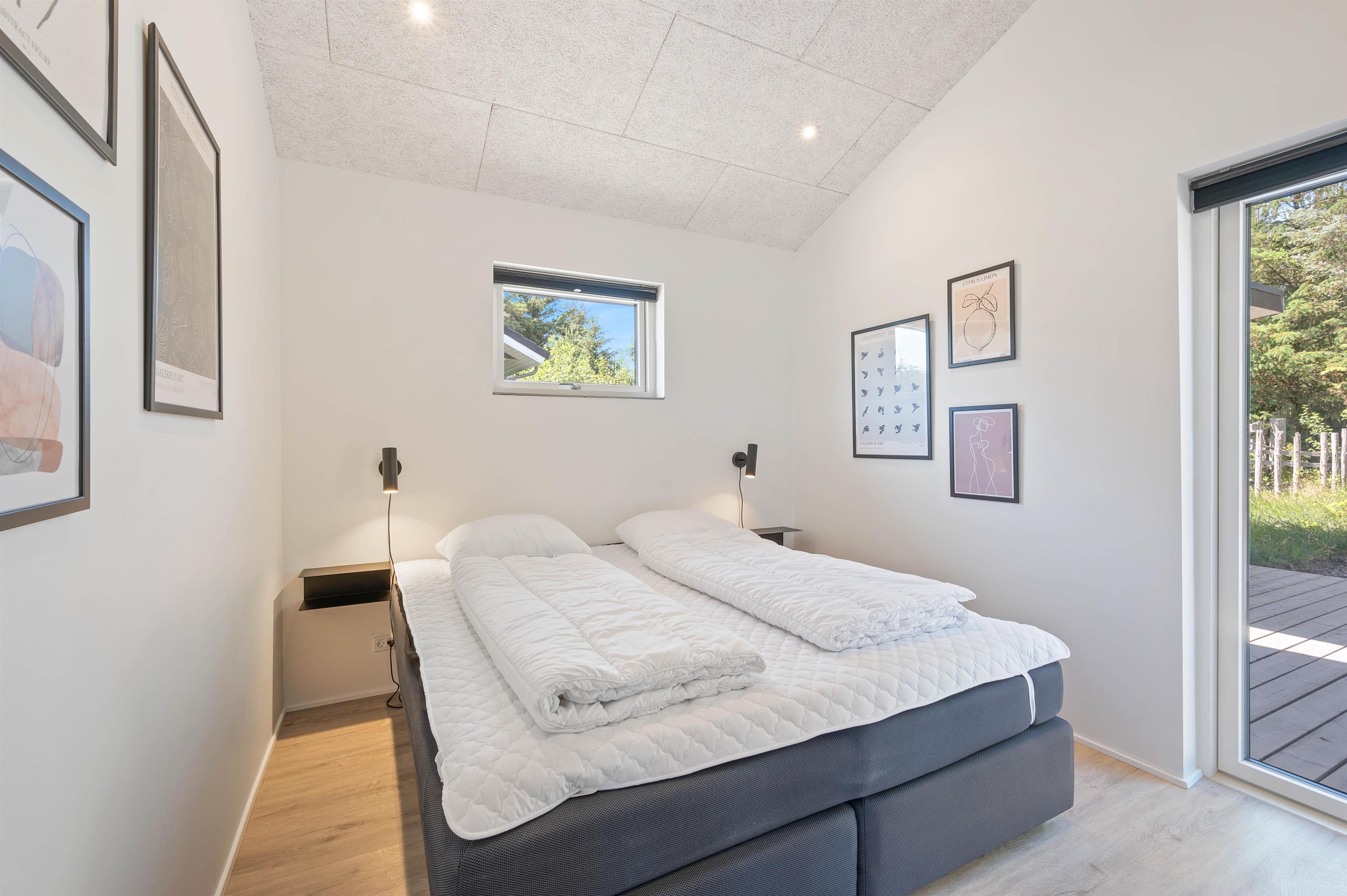 Dette sommerhus har hele 2 topmoderne badeværelser, hvor begge er udstyret med gulvvarme. Det er oplagt, hvis I er 2 familier, der holder ferie sammen, da hver familie kan få sit eget badeværelse. De 6 sovepladser er fordelt på 3 soveværelser, hvor 2 har dobbeltseng, og ét værelse har enkeltmandssenge – et oplagt værelse til teenagerne.