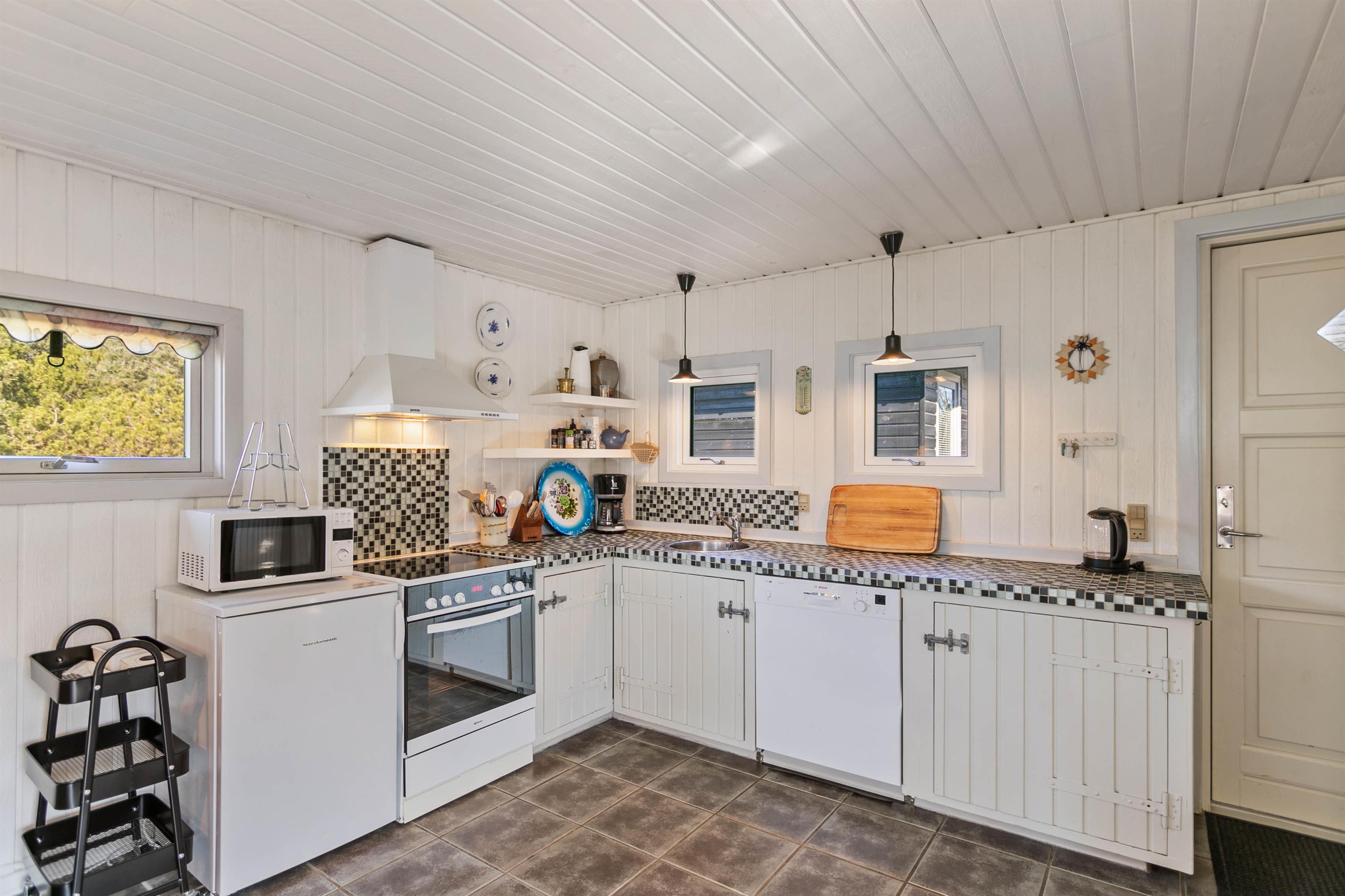 Det charmerende køkken er udstyret med gode praktiske faciliteter såsom opvaskemaskine og mikroovn. Dertil kommer en vaskemaskine, en tørretumbler, en separat fryser (105 L) og et ekstra køleskab i annekset. Ydermere er annekset indrettet med bl.a. vaskemaskine og tørretumbler til de praktiske gøremål under jeres ophold. Annekset råder også over et separat rum med diverse spil til brug udendørs som fx Petanque, crocket m.v.
