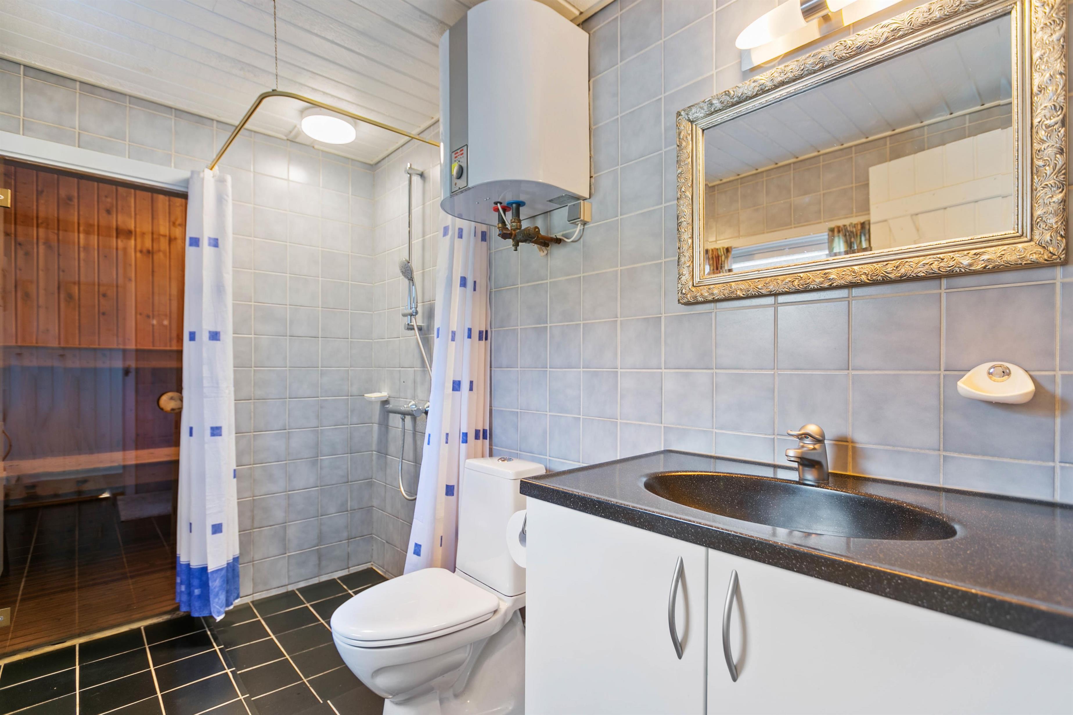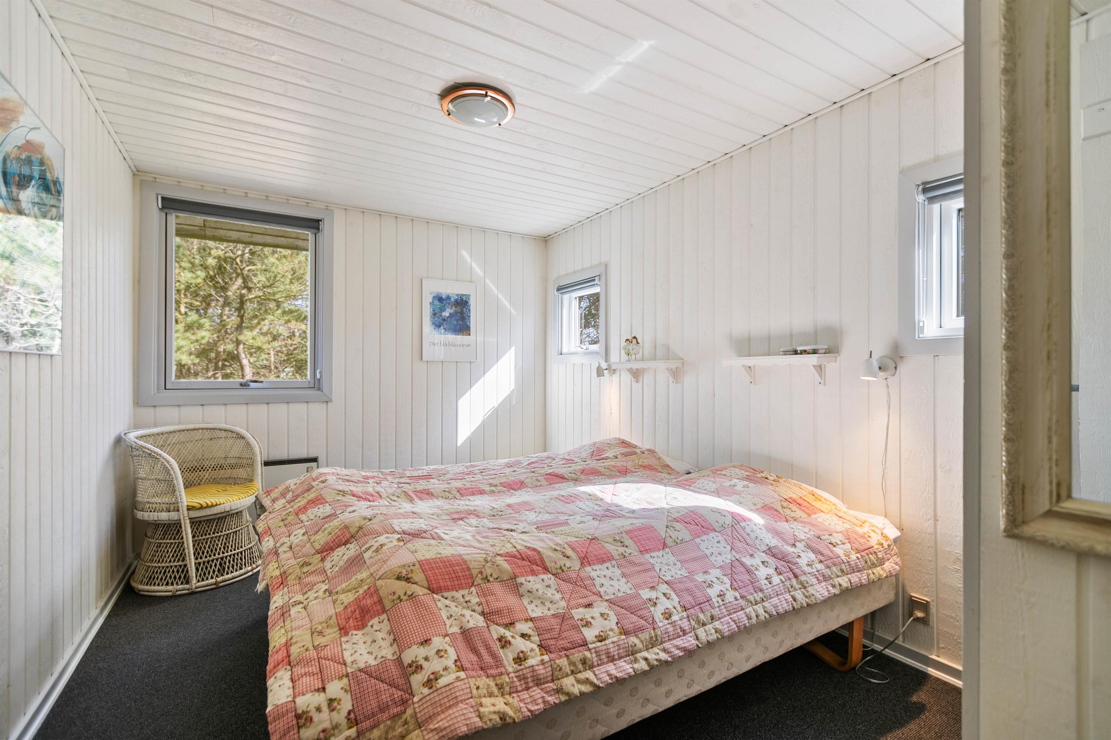 Soveværelserne er rummelige, indrettet i klassisk sommerhusstil og med dobbeltsenge og skabe der rummer god plads til jeres medbragte tøj. Fra badeværelset er der indgang til saunaen, hvor I kan tanke ny energi og blive varmet igennem, efter en dag i den friske havluft og natur.