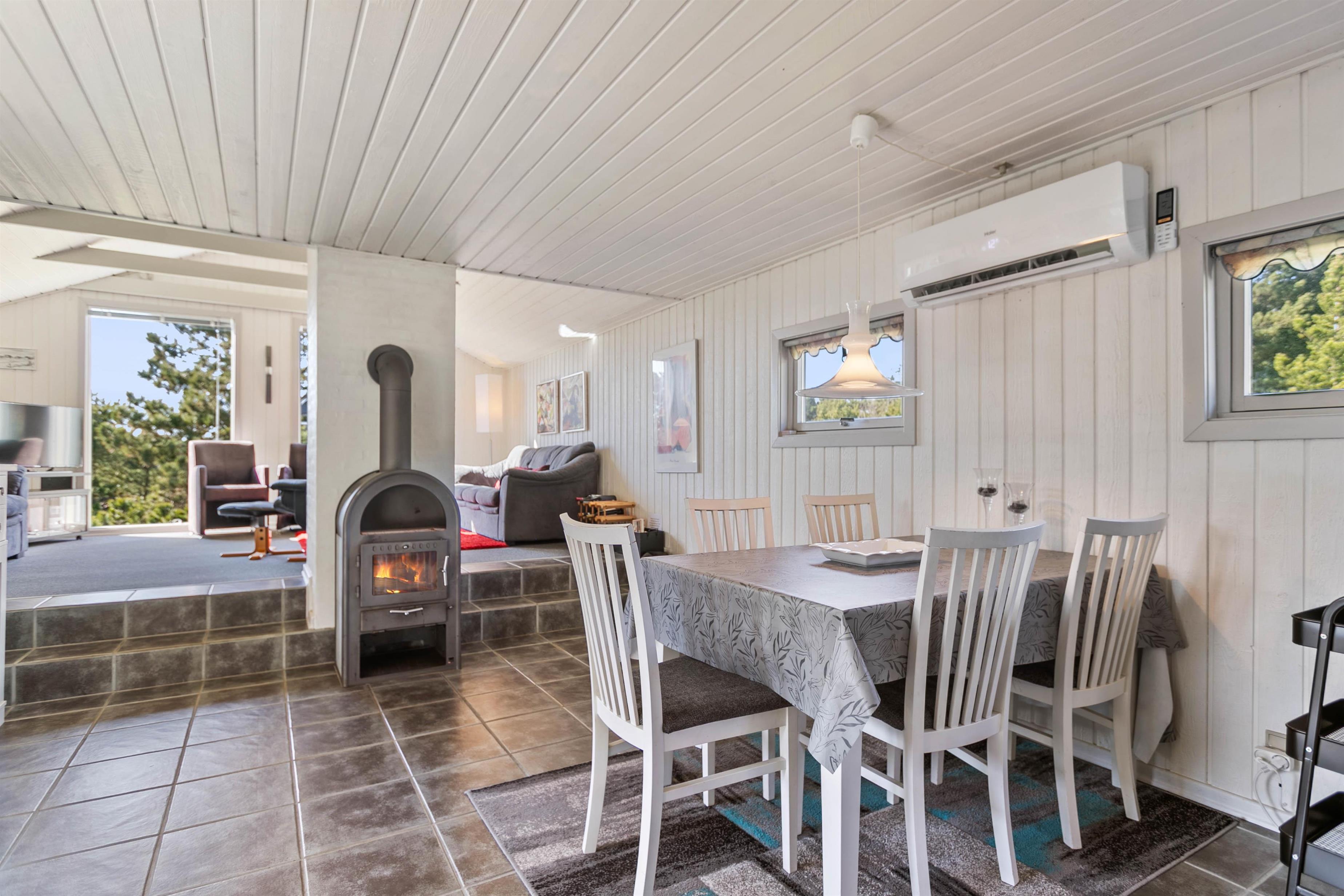 Det skønne sommerhus, som har ægte sommerhuscharme, indbyder til masser af hygge, nærvær og god tid til hinanden. Tag et spil kort, nyd et glas vin og fordyb jer i hinanden og de gode samtaler ved brændeovnen. Der er også installeret en energisparende varmepumpe i sommerhuset, som sørger for et behageligt indeklima.