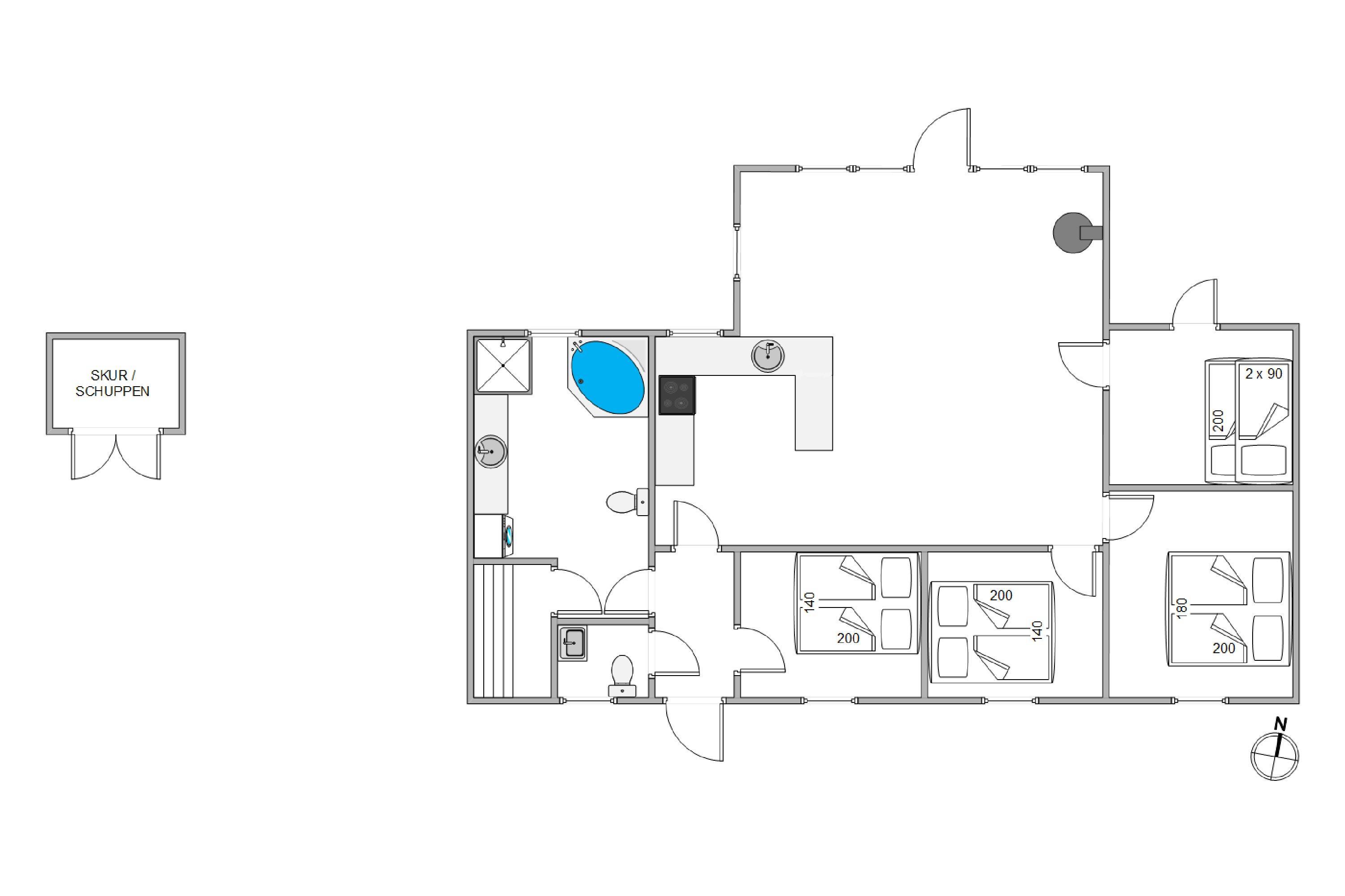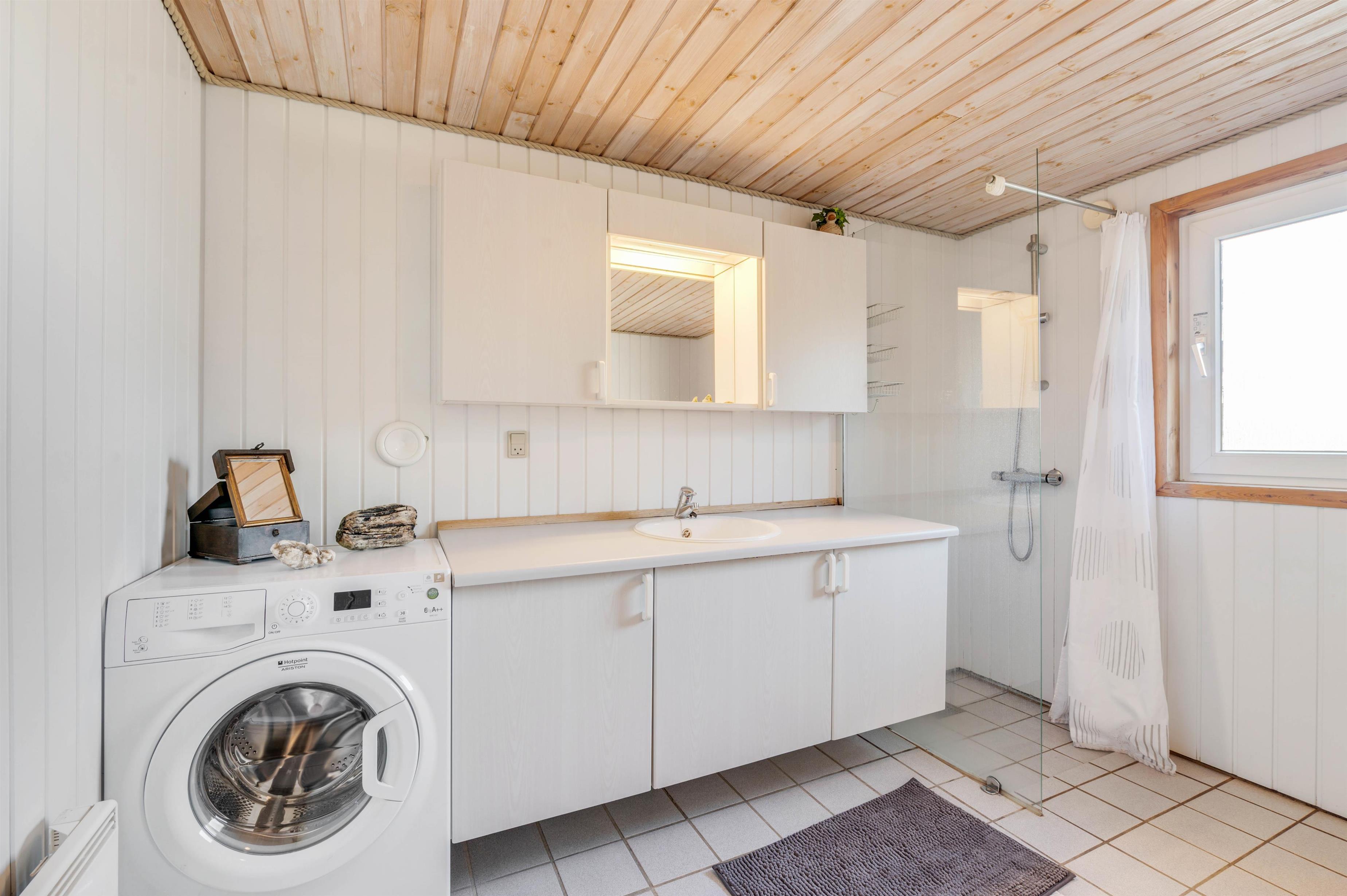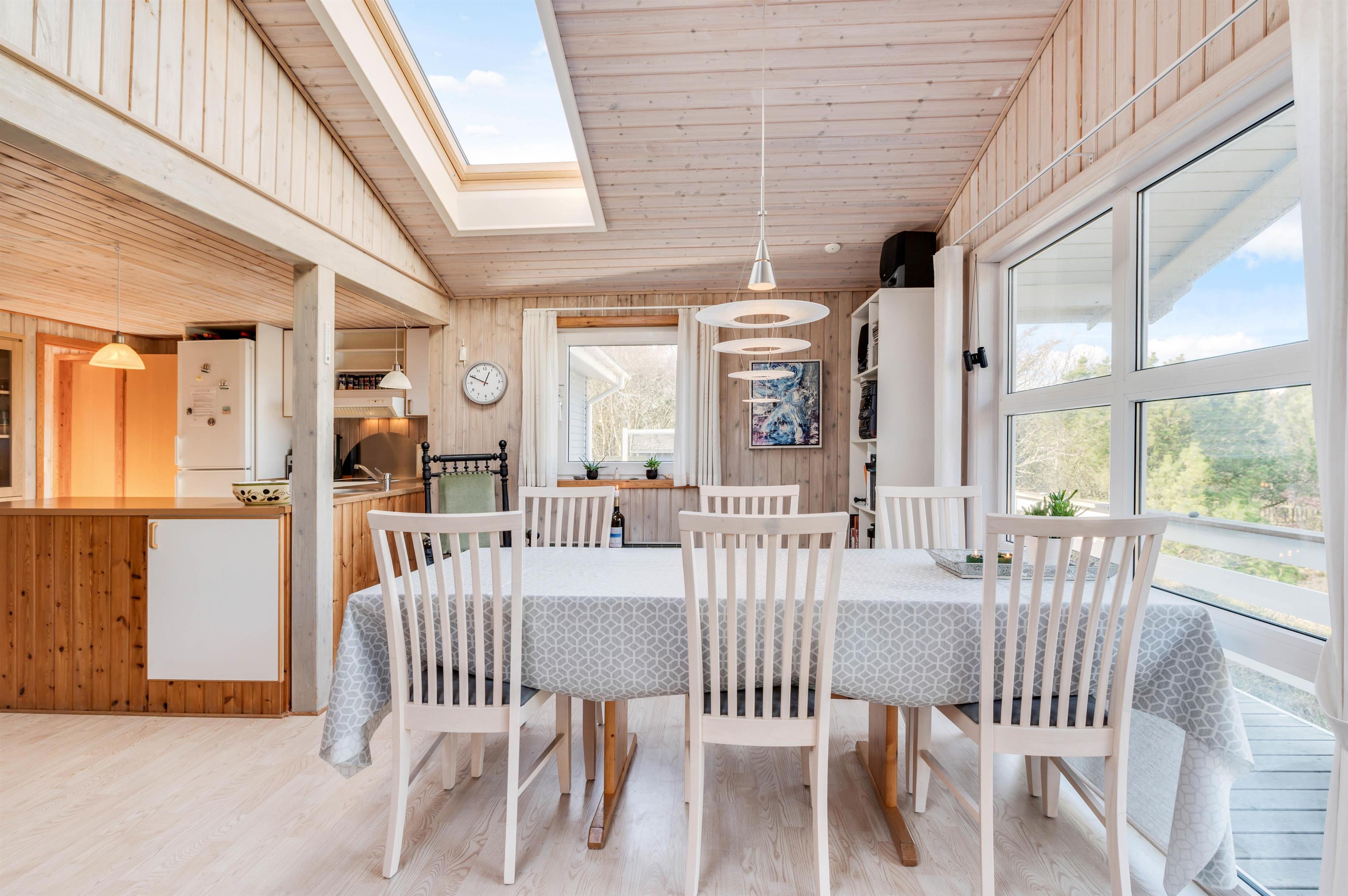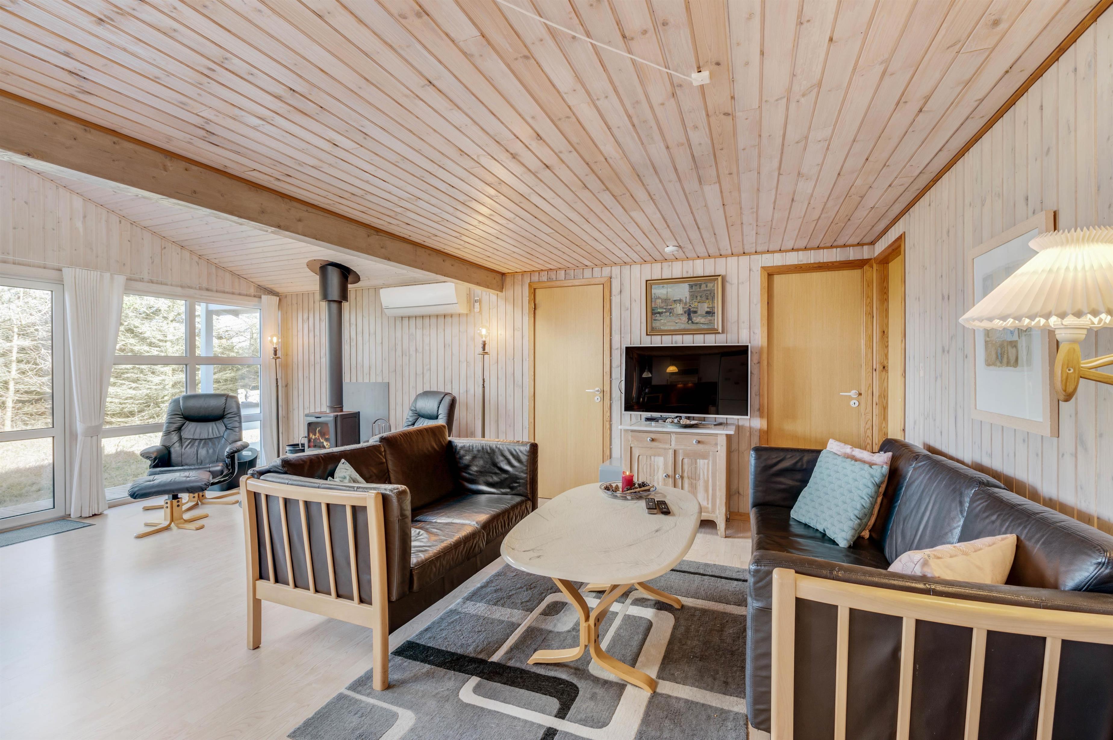 Når I træder ind i dette feriehus, bliver I straks mødt med en klassisk, hyggelig feriehusstil. Feriehuset fordeler sig på 4 soverum, hvoraf 3 af værelserne er udstyret med dobbeltsenge, og det sidste værelse er perfekt som børneværelse, da det har en køjeseng.