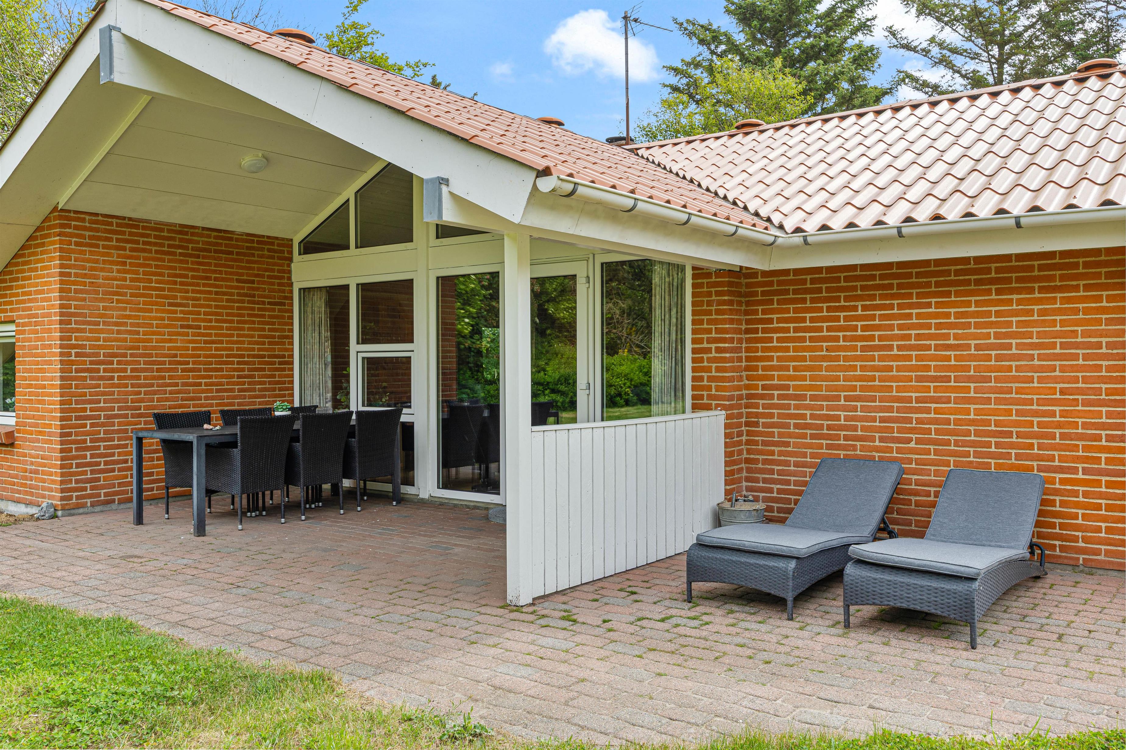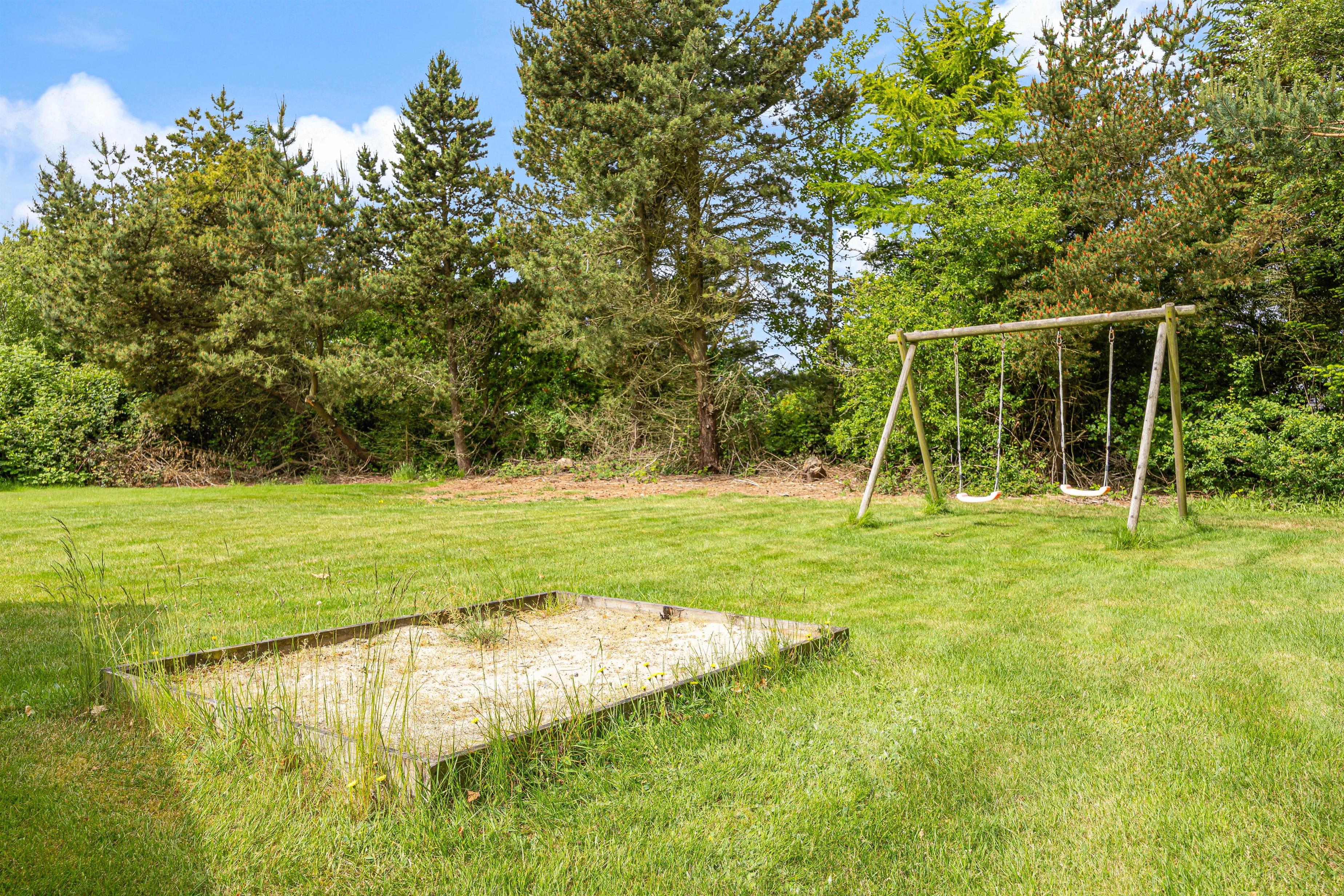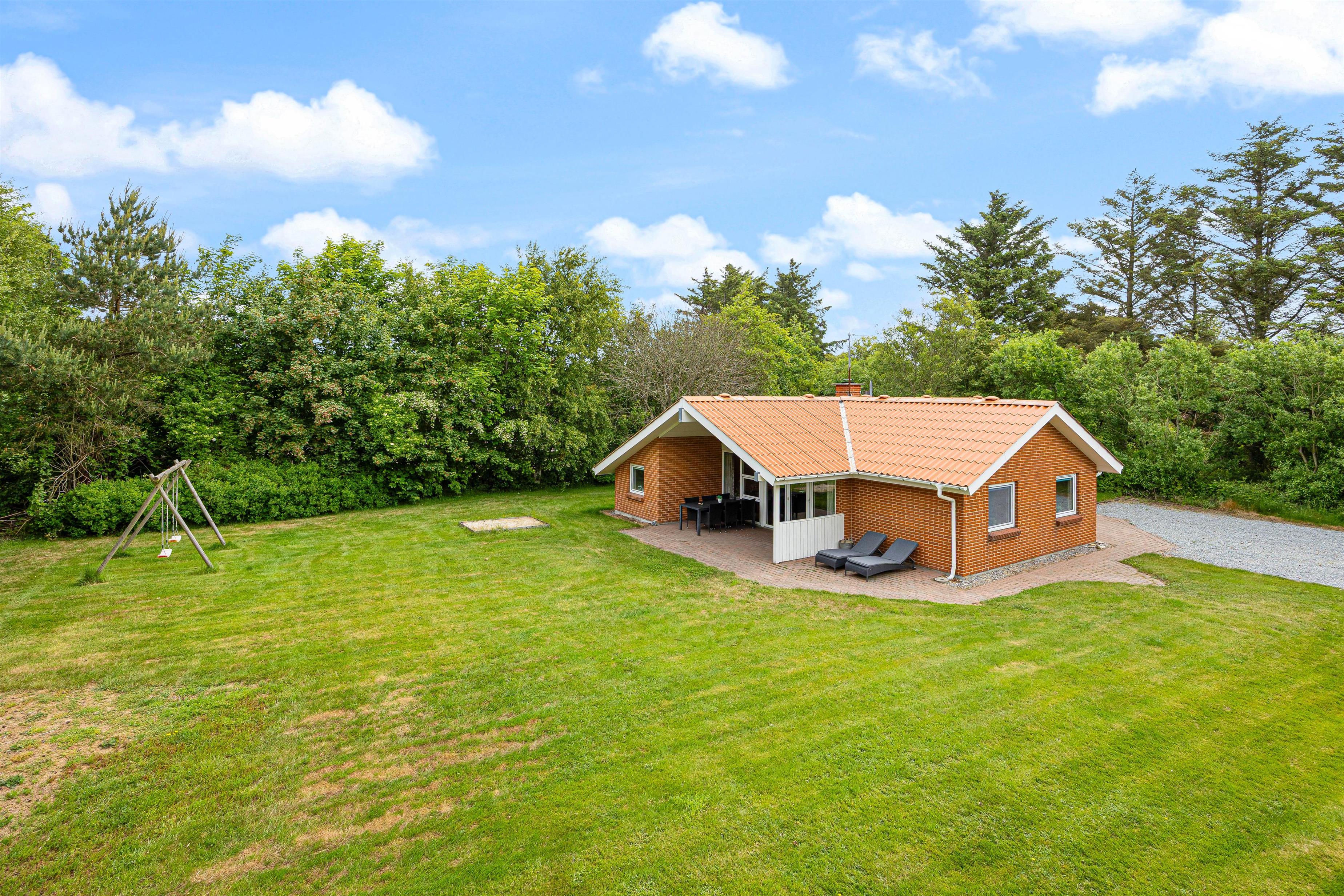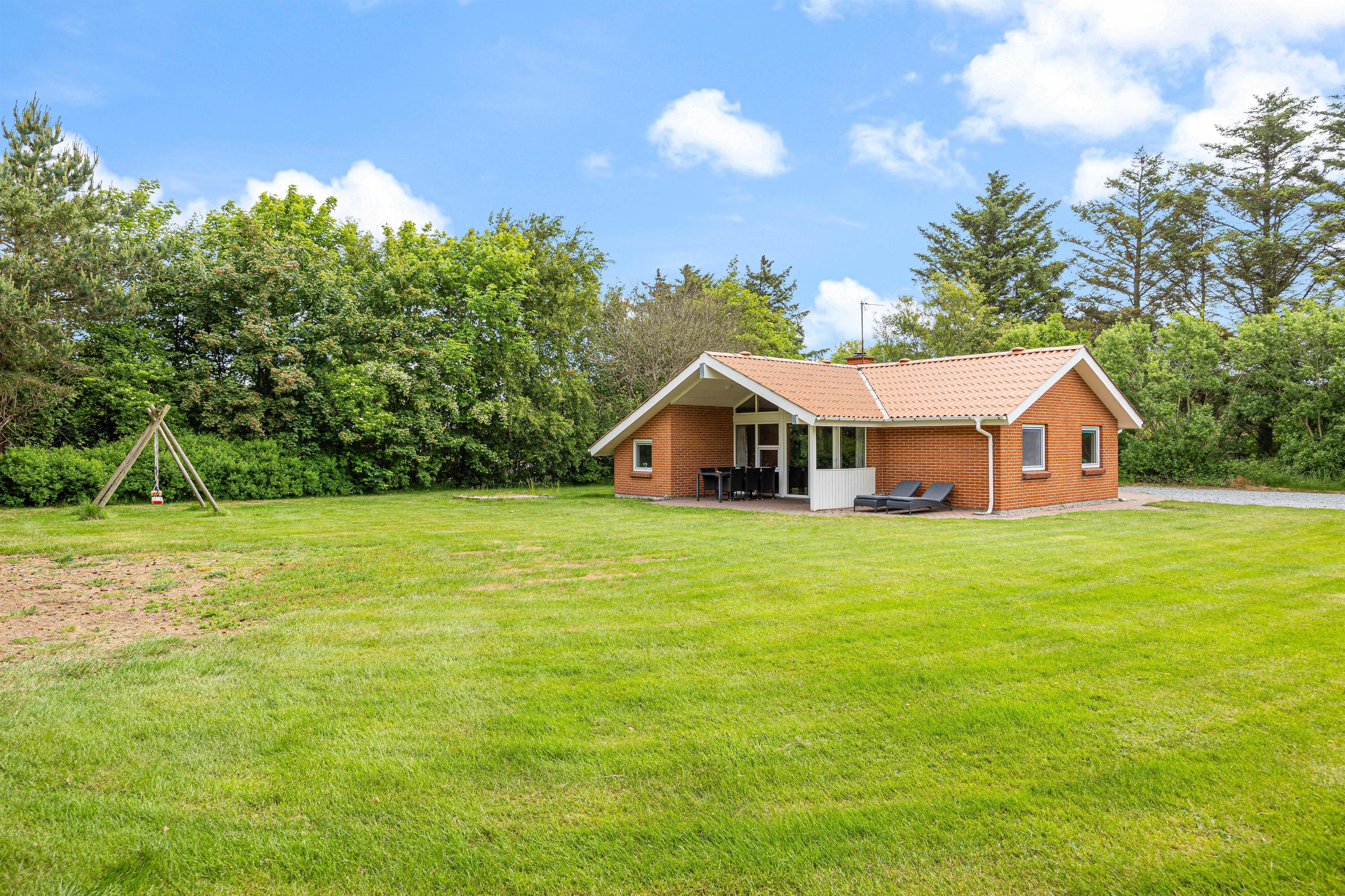 Nyd hyggelige timer ude i den friske luft på den overdækkede terrasse. Her er der havemøbler og grill til rådighed, så det er oplagt – på dage med godt vejr – at runde aftenerne af med god mad og hyggeligt selskab på terrassen. Der er en gynge og en sandkasse til børnene, som de helt sikkert ville kunne tilbringe mange timers sjov ved. Den græsklædte grund afrunder de udendørs faciliteter og giver masser af plads til leg og afslapning. Fordi Nissum Fjord kun ligger ca. 500 meter væk fra feriehuset, kan I gå mange dejlige ture ved vandet.