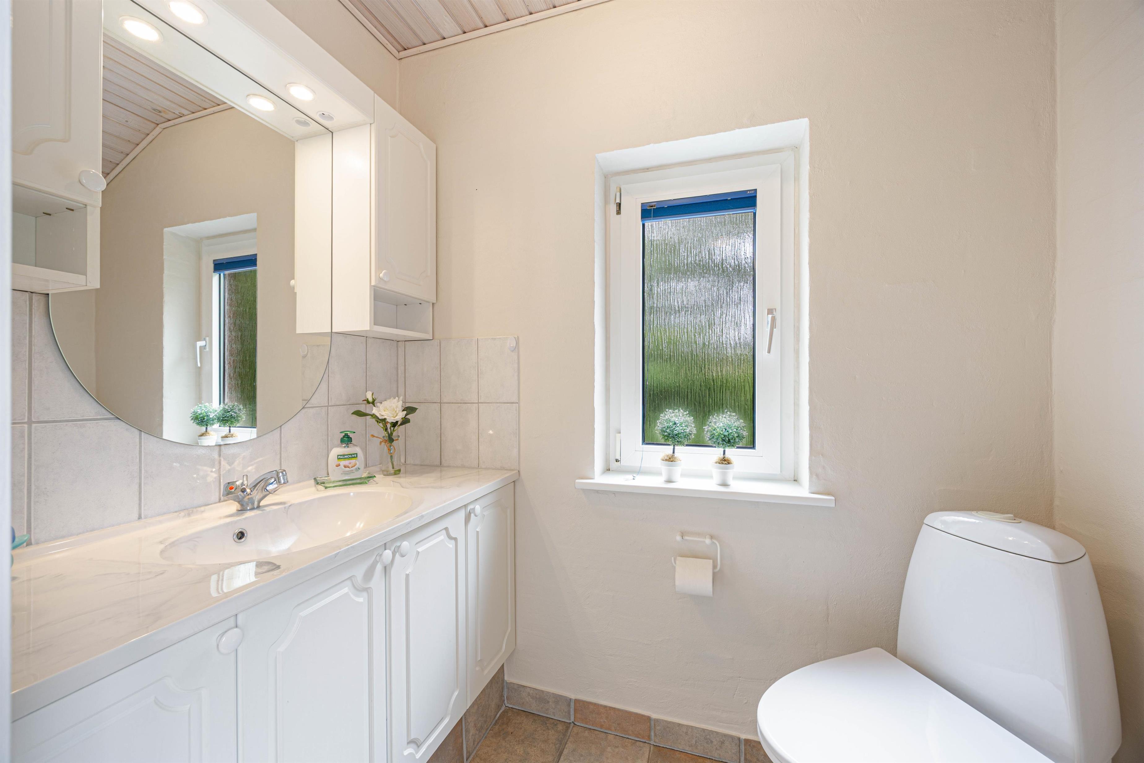 Badeværelset har gulvvarme, så I kan starte dagen med varme fødder. Efter en lang dag i den friske Vesterhavsluft kan I slappe af i spaen og afslutte wellness-dagen i saunaen. For at gøre jeres ophold endnu mere bekvemt er der også et gæstetoilet, så I undgår de lange køer. De praktiske hverdagshjælpere, såsom vaskemaskine og tørretumbler er også tilgængelige og venter bare på at blive brugt.