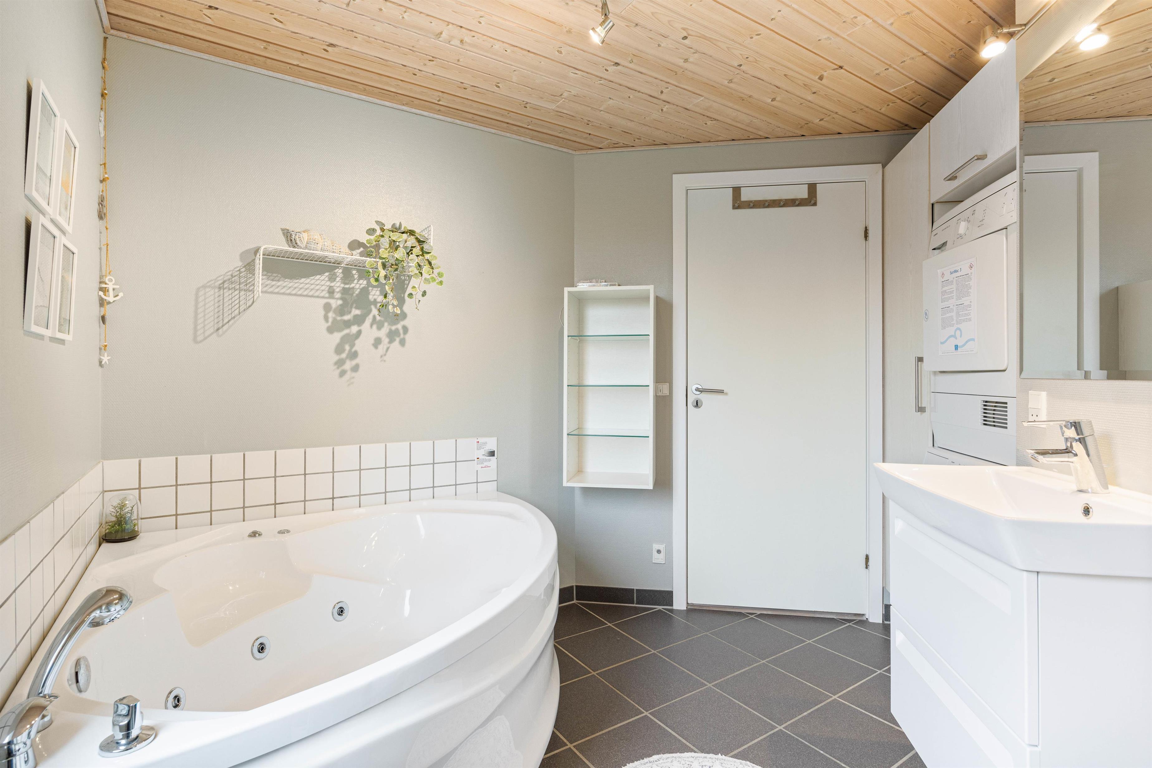 I sommerhuset finder I 3 rigtig gode soveværelser, hvoraf 2 af soveværelserne hver er indrettet med 2 enkelte elevationssenge, og det sidste værelse er indrettet med 2 almindelige enkeltsenge. På sommerhusets badeværelse, finder I et spabad, som I kan blive varmet rigtig godt igennem i.