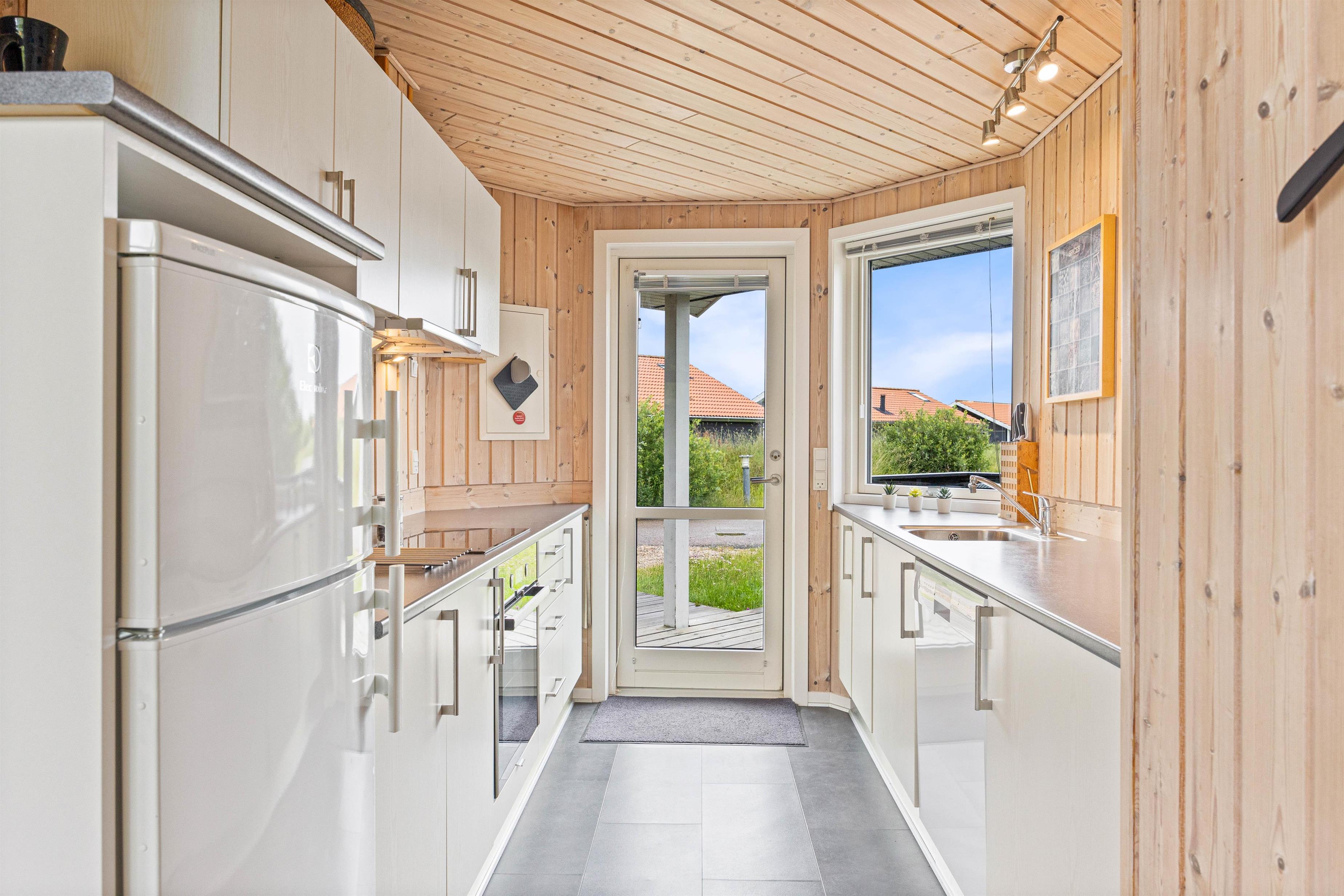 Lige så snart I træder ind i dette velindrettede sommerhus, bliver I mødt af en klassisk og hyggelig sommerhusstemning, og et åbent køkkenalrum, som gør at hele familien kan være samlet, uanset om I står i køkkenet og tilbereder et lækkert måltid, eller om I sidder ved spisebordet og planlægger feriens næste aktiviteter.
