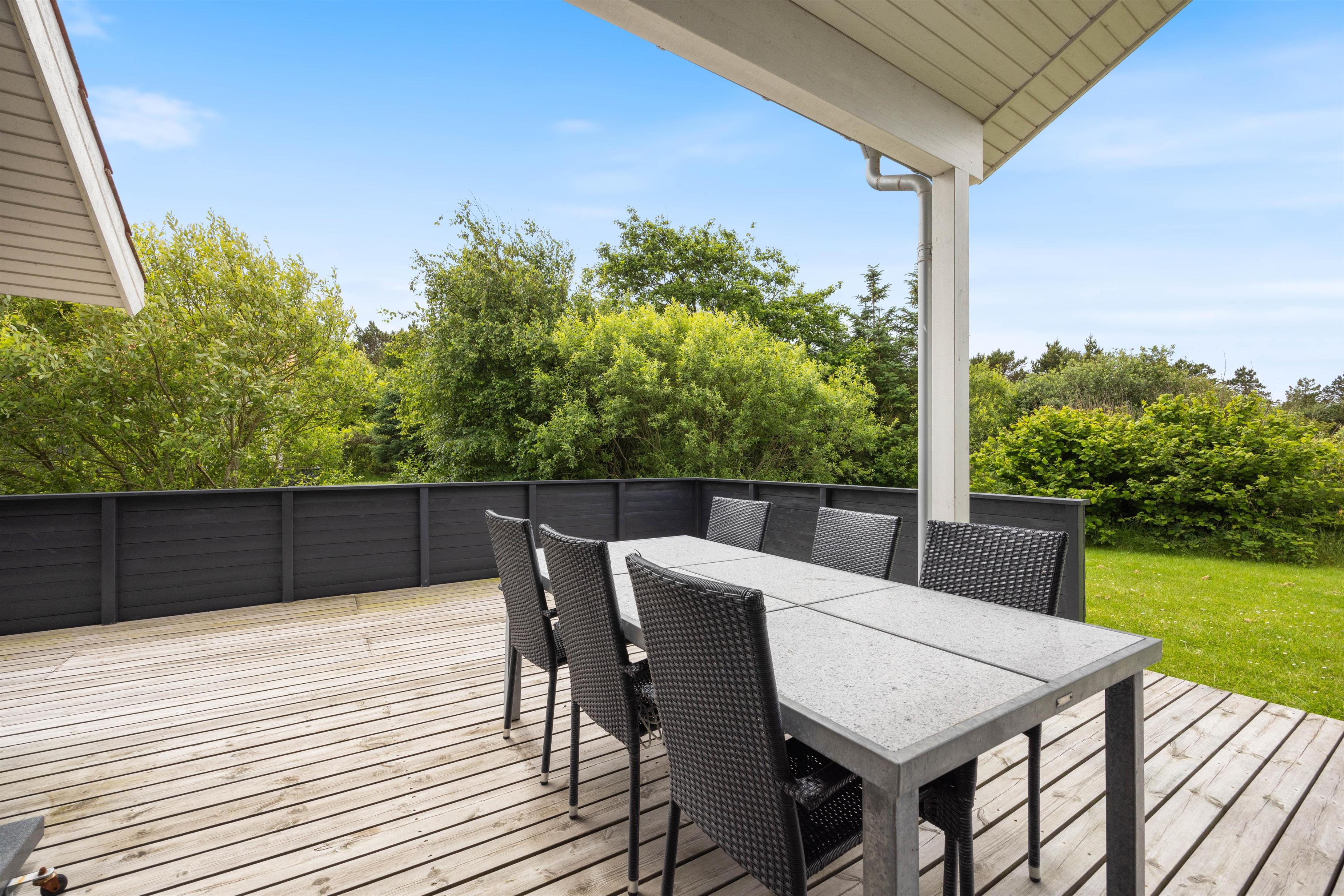 Sommerhuset på Fjand Strand 18 i Fjand, har en stor overdækket og afskærmet terrasse, hvor I har rig mulighed for at tilbringe en masse timer, hvis det danske sommervejr indbyder til det. På sommerhusets terrasse finder I havemøbler, liggestole og en grill, så her har I rig mulighed for bare at nyde, at I har ferie sammen.