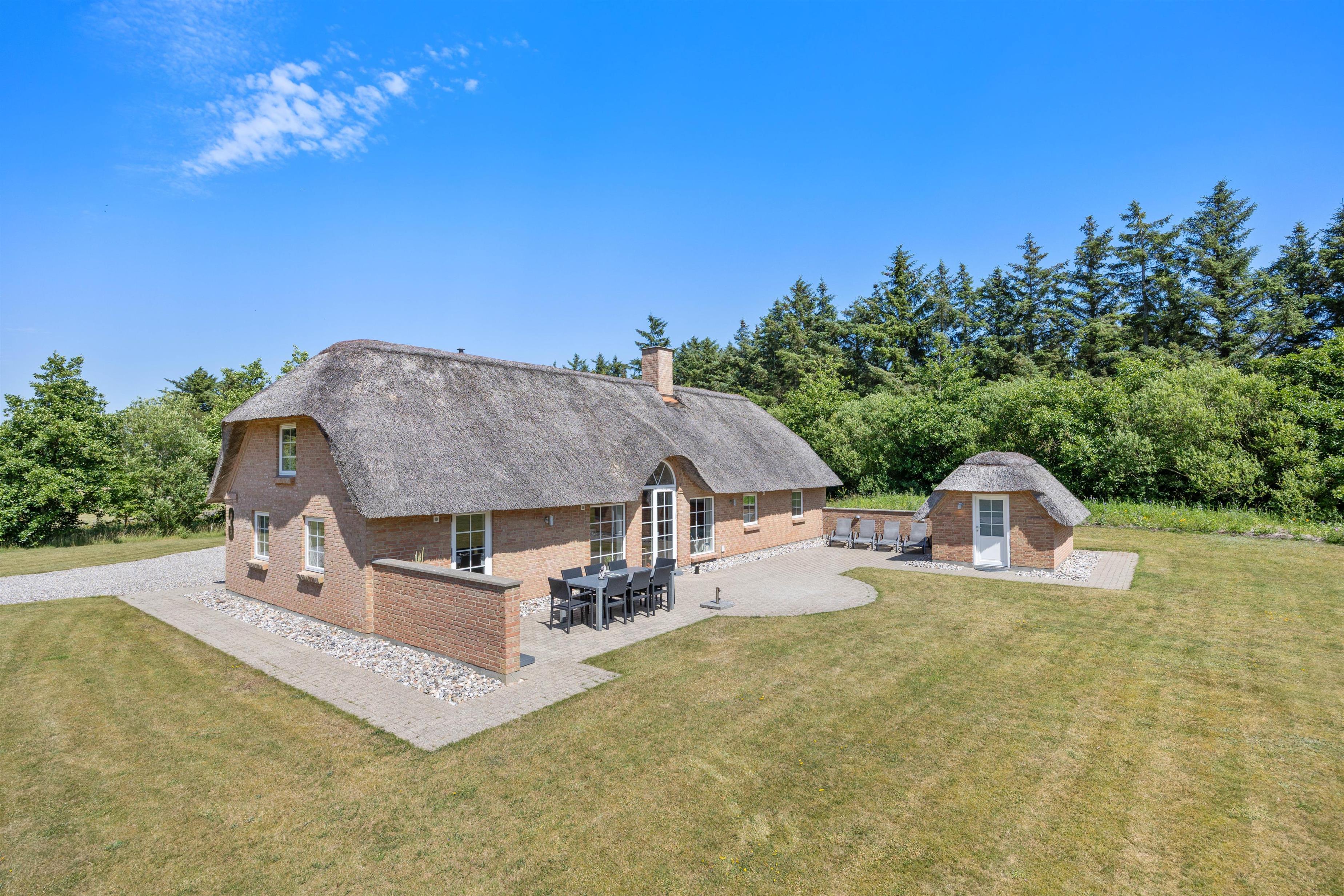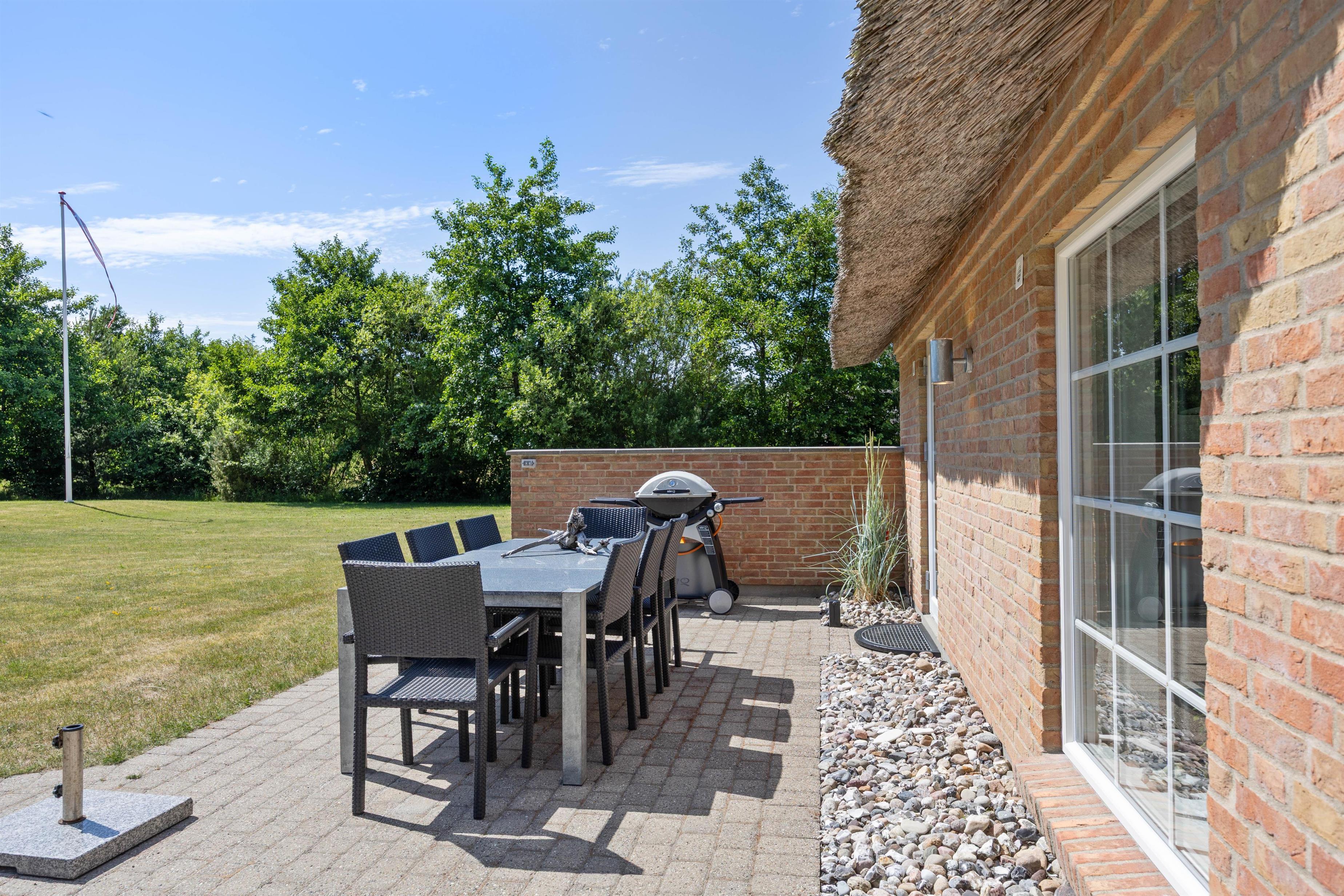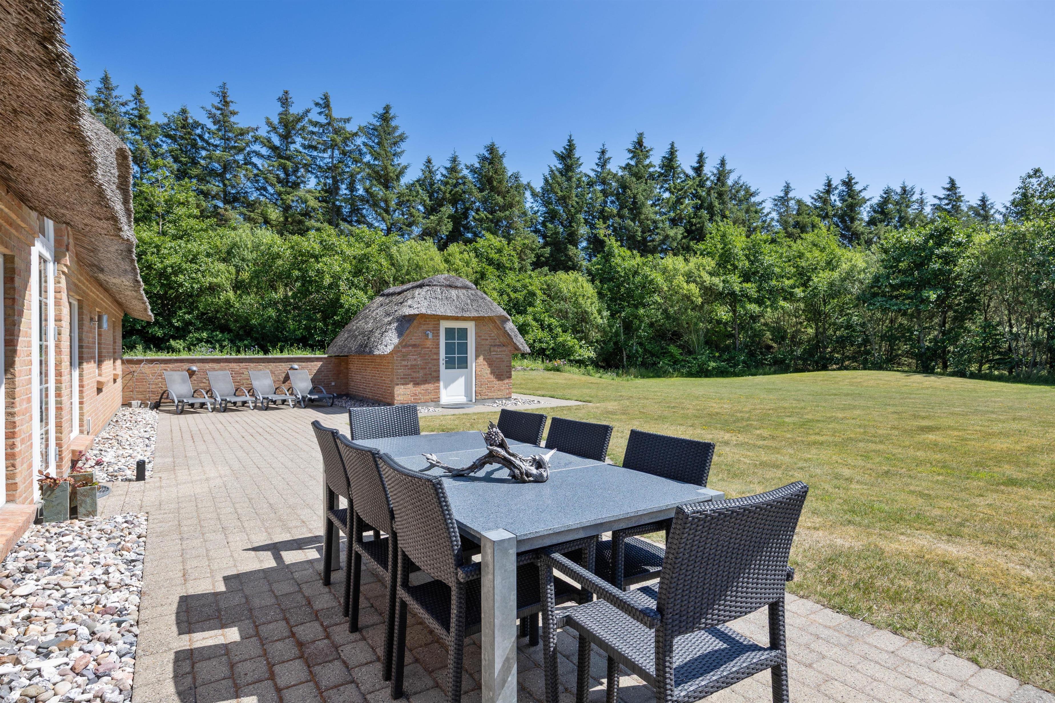 Udenfor på Lyngklitvej 3 venter en stor plænegrund på 3.500 m², hvor der er plads til at strække benene, og hvor børnene kan lege trygt. Sommerhuset har en åben terrasse, som gør det muligt at nyde morgenkaffen under åben himmel. Havemøblerne indbyder til lange middage i solnedgangen eller hyggelige grillaftener med de nærmeste. En gynge i haven kan skabe fornøjelse for de mindste, mens jeres bedste ven med fire ben hygger sig sammen med jer – for her er hunde hjertelig velkomne, dog kun én hund.