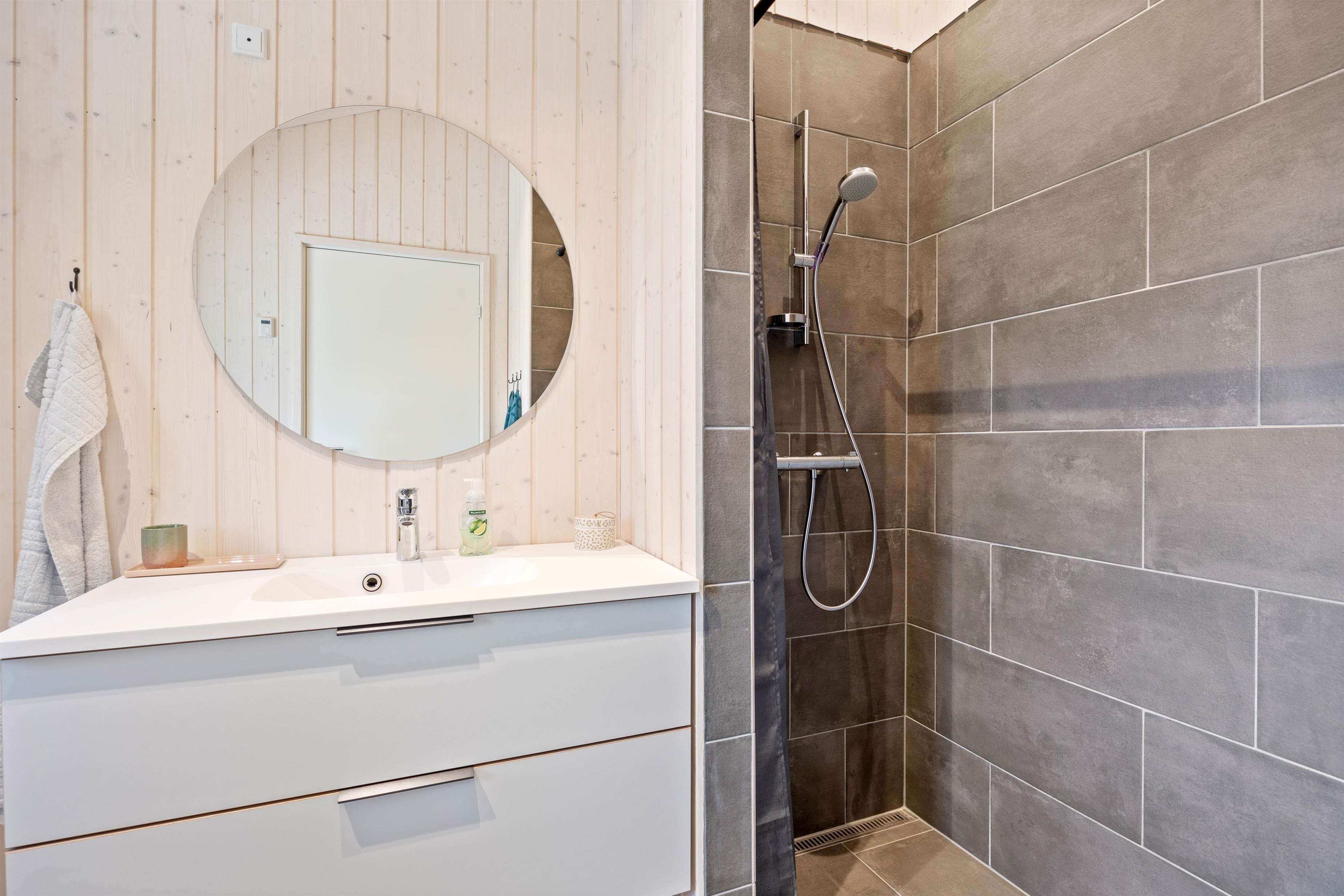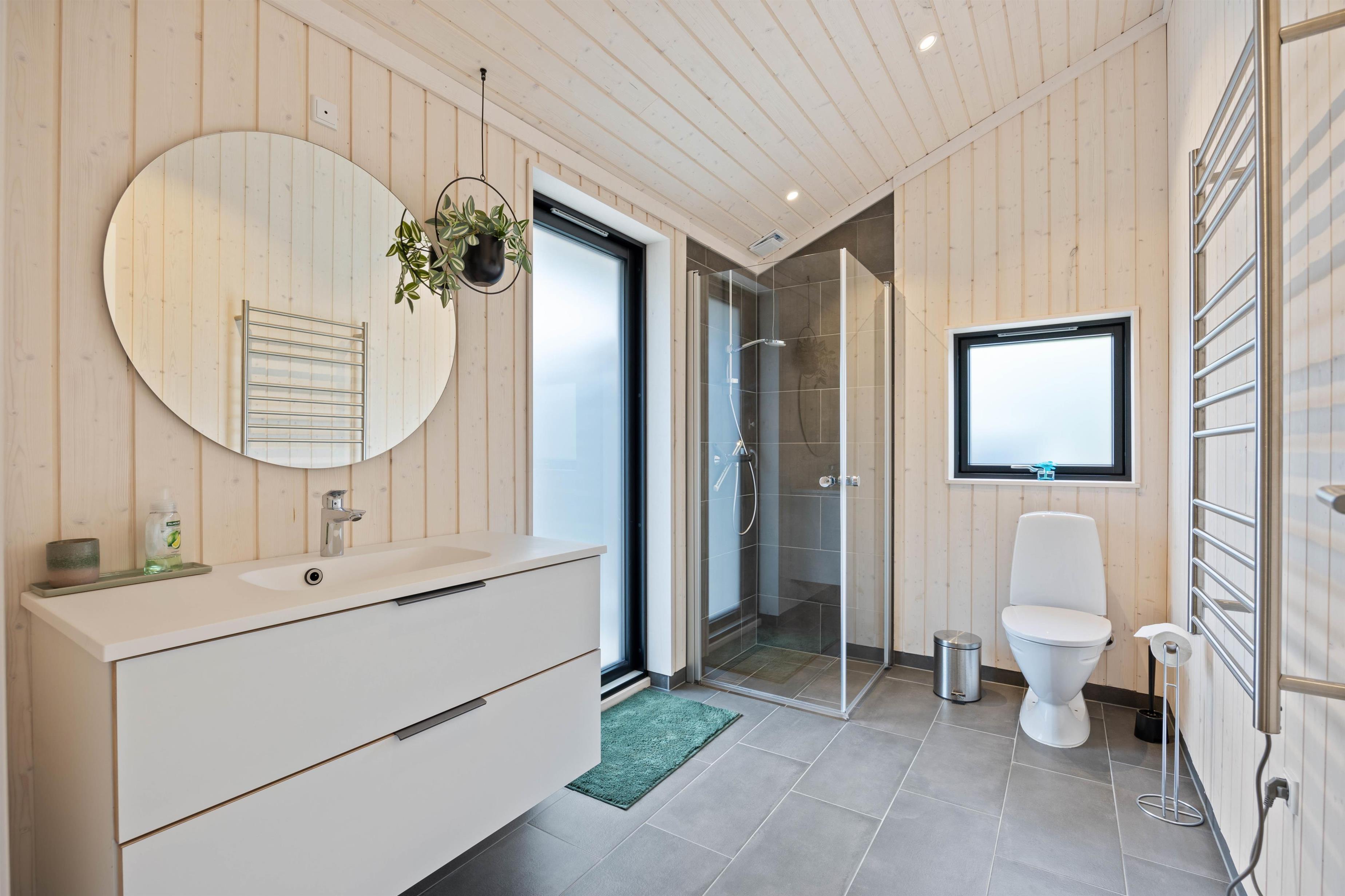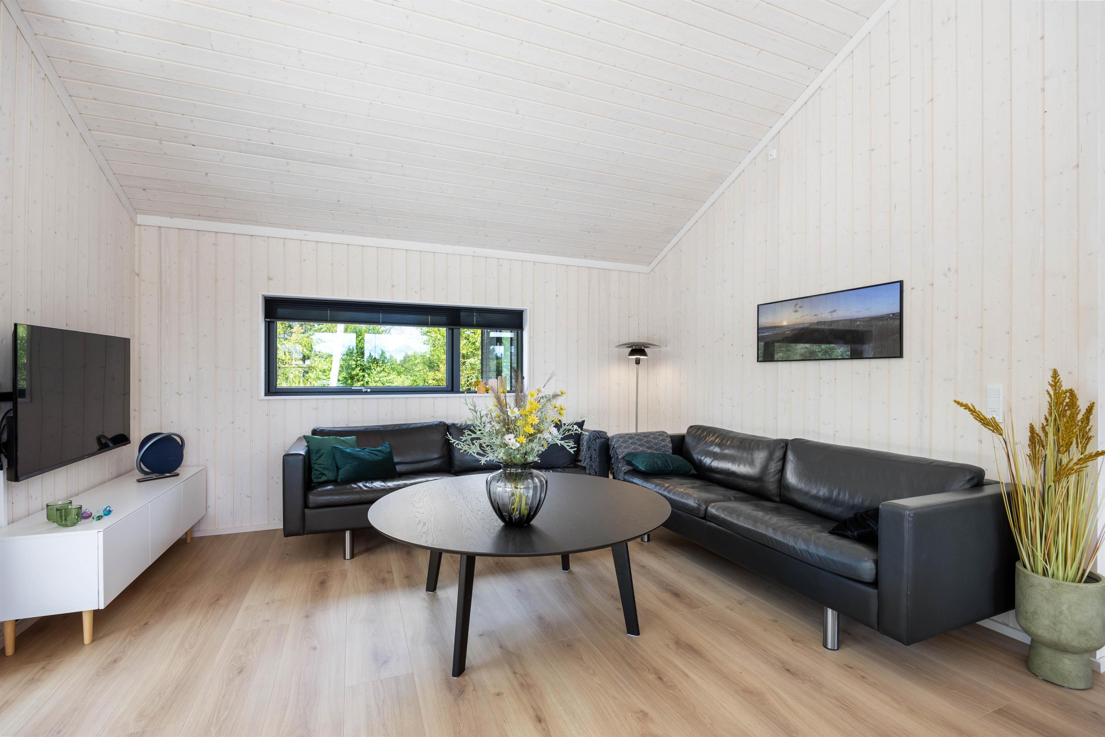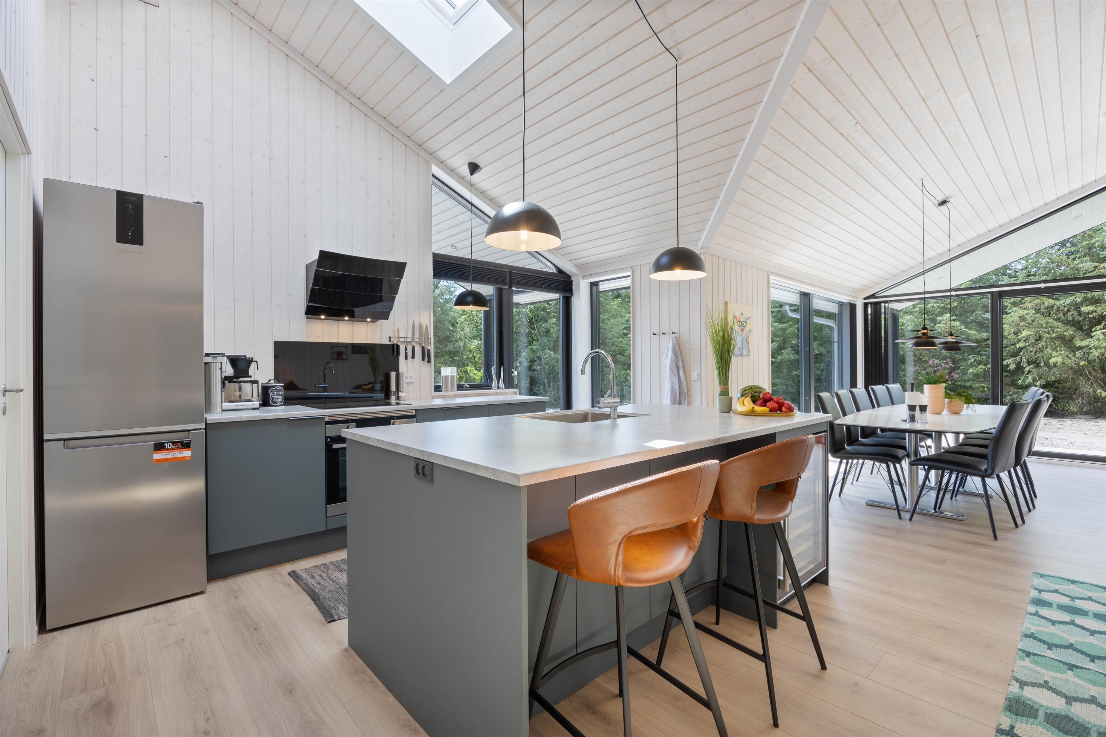 Om aftenen kan I synke ned i sofaen og kigge ud på stjernehimlen gennem de flotte, store vinduespartier, som bidrager til et fantastisk lysindfald i sommerhuset. Skulle I få brug for at vaske tøj under jeres ophold, så er der vaskemaskine til fri afbenyttelse.