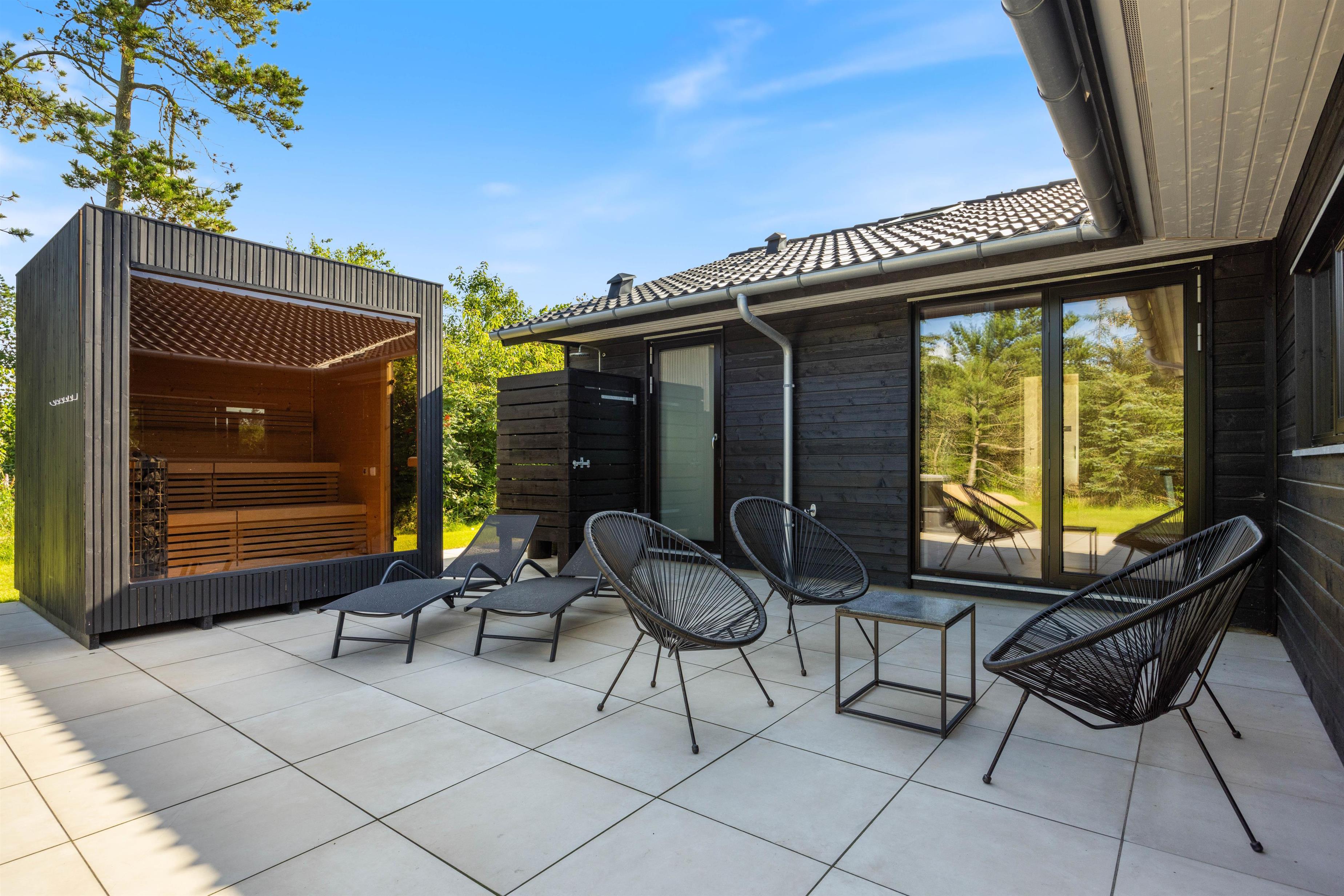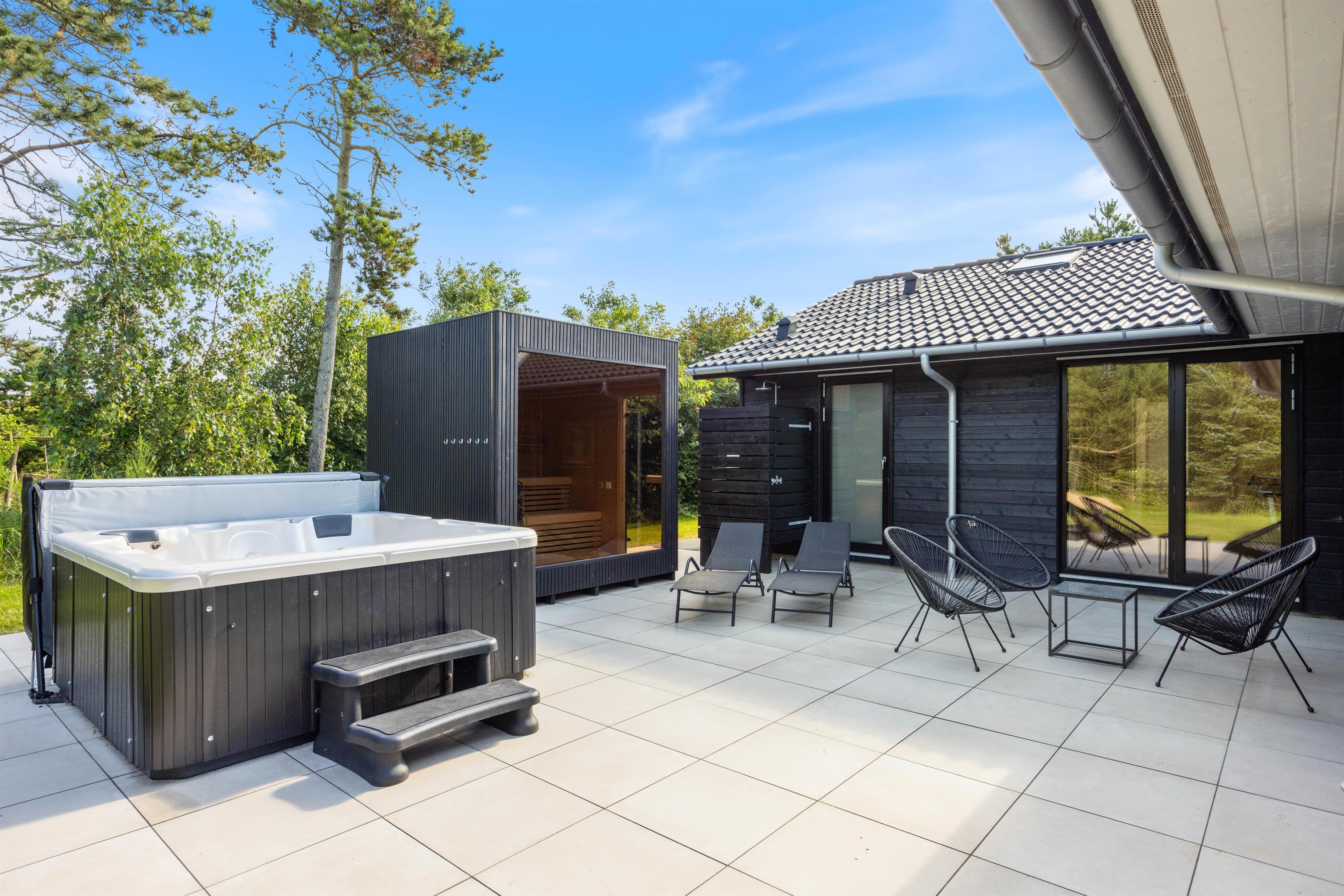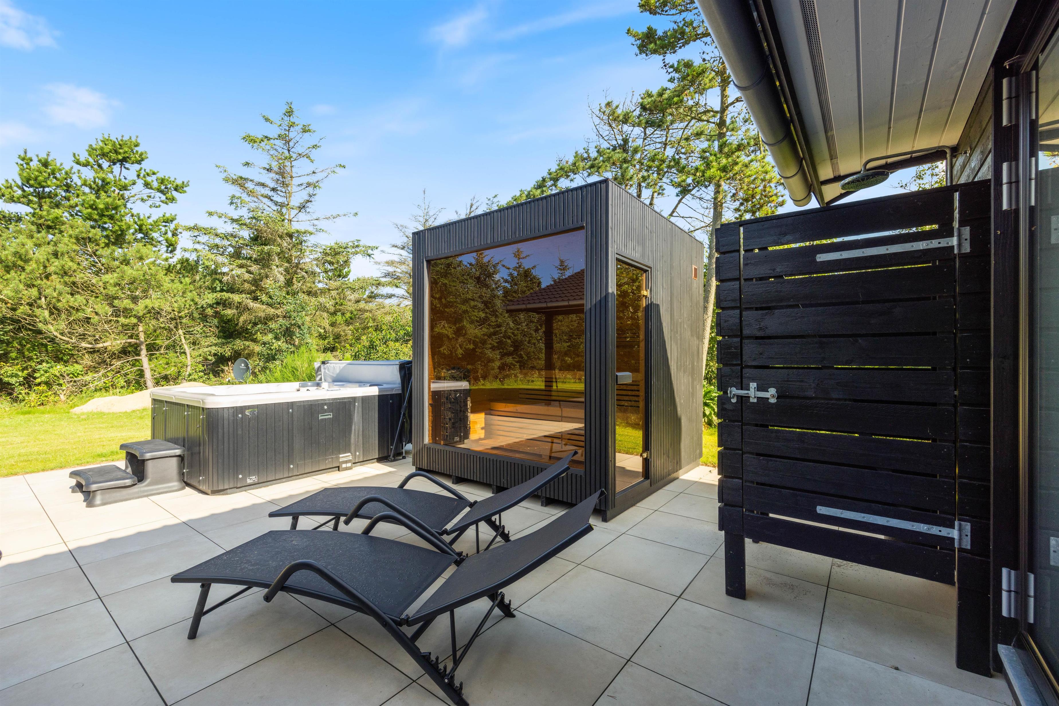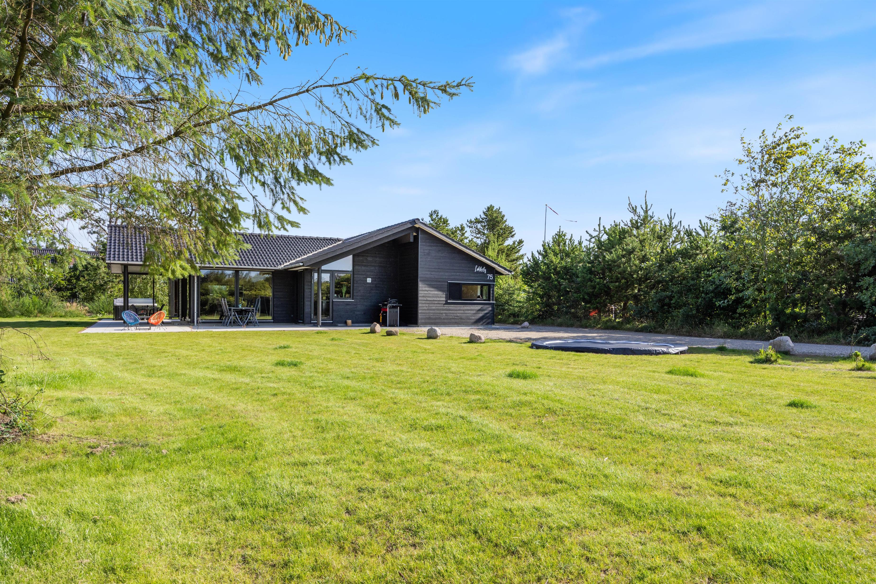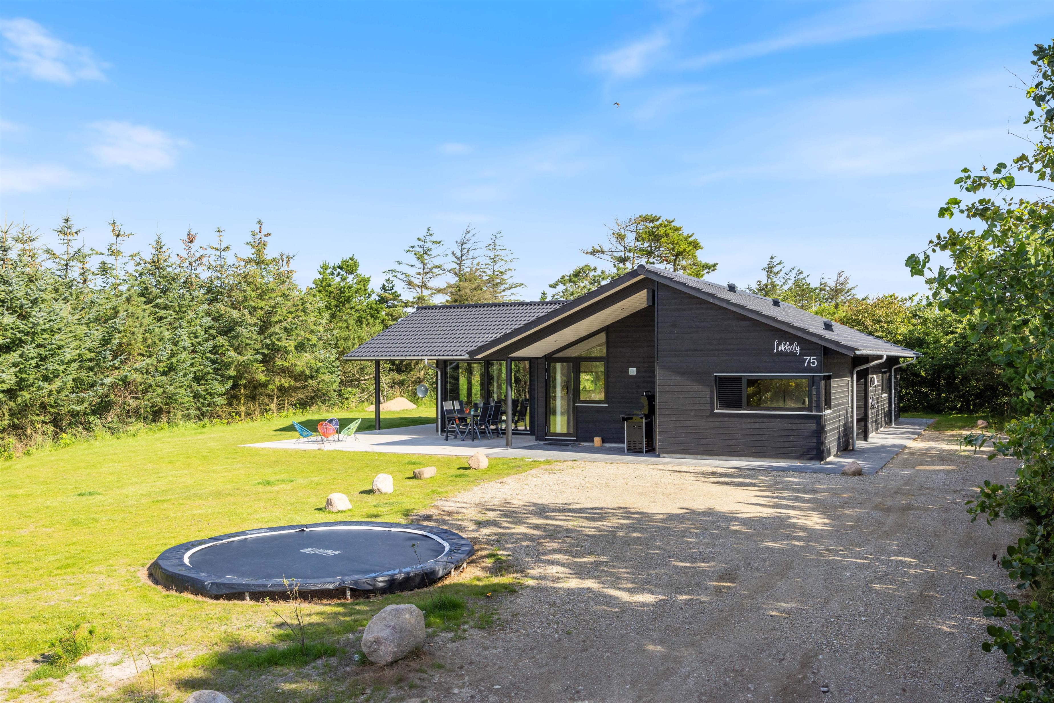 Det moderne og stilrene sommerhus på Hagevej 75 er bygget i 2023. Sommerhuset er rummeligt og har en størrelse på 149 kvm, så der er god plads til op til 10 personer og 2 hunde. Her er flere aktivitetsmuligheder, blandt andet i form af udespa, udebruser, udesauna og trampolin. Beliggenheden er i gåafstand fra Vesterhavet, hvor I kan nyde lange gåture på stranden, mens I lytter til bølgernes brusen.