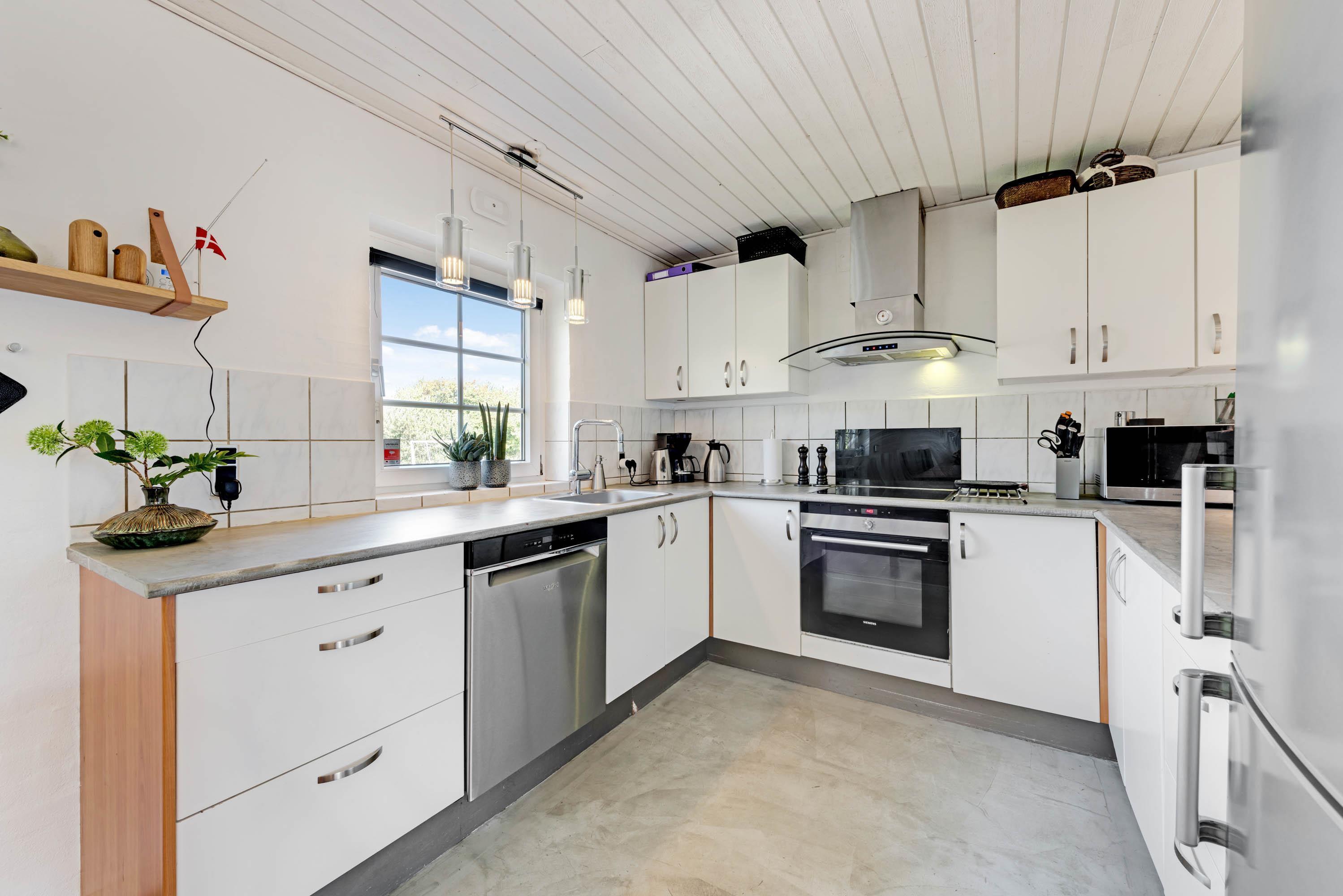 Mens nogle leger i haven, kan andre slappe af på sommerhusets store lukkede solterrasse. Her har I både havemøbler og liggestole til rådighed, som I kan læne jer tilbage i og læse en god bog, mens I nyder ferien og det gode vejr. Saml jer på terrassen om aftenen og slut feriedagene af sammen med lækker mad lavet på grillen og kolde drikkevarer.