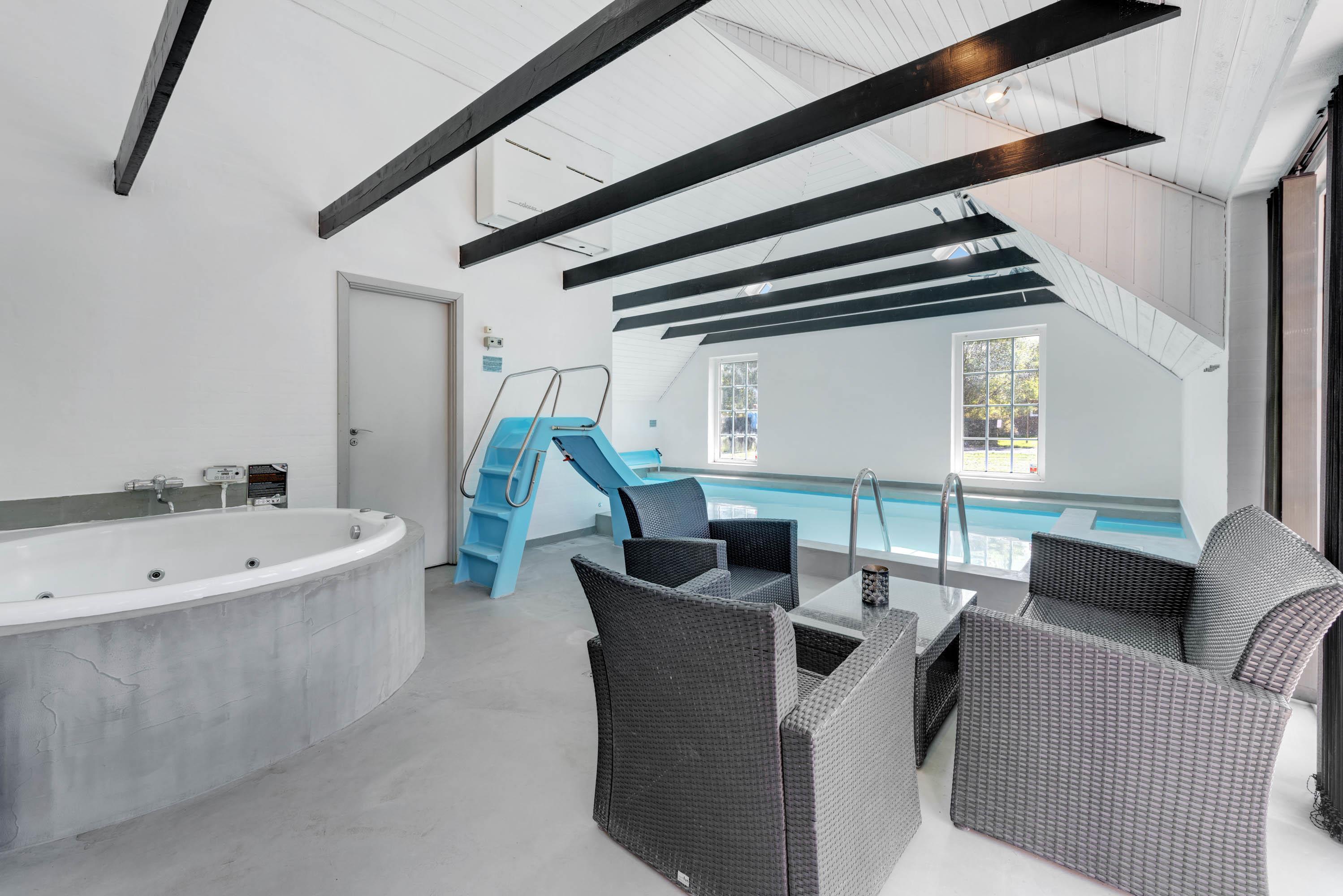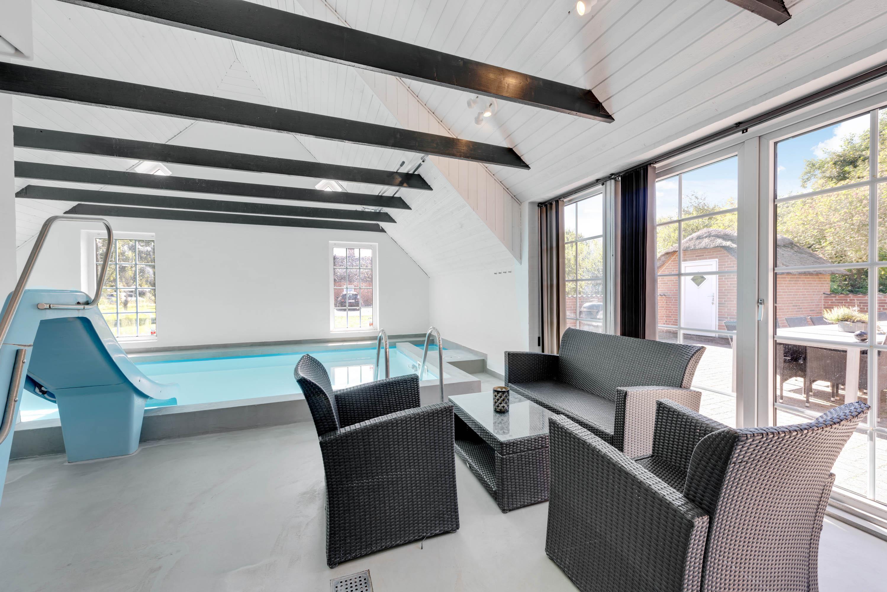 Det helt store højdepunkt i sommerhuset på Sdr. Fjandvej 36 er uden tvivl poolområdet. Her venter jer en 25 m2 stor swimmingpool med rutsjebane, hvor voksne såvel som børn kan slå sig løs i en masse forskellige vandlege. Skulle I få brug for en pause, kan I sætte jer til rette i loungemøblerne, inden legene igen fortsætter.