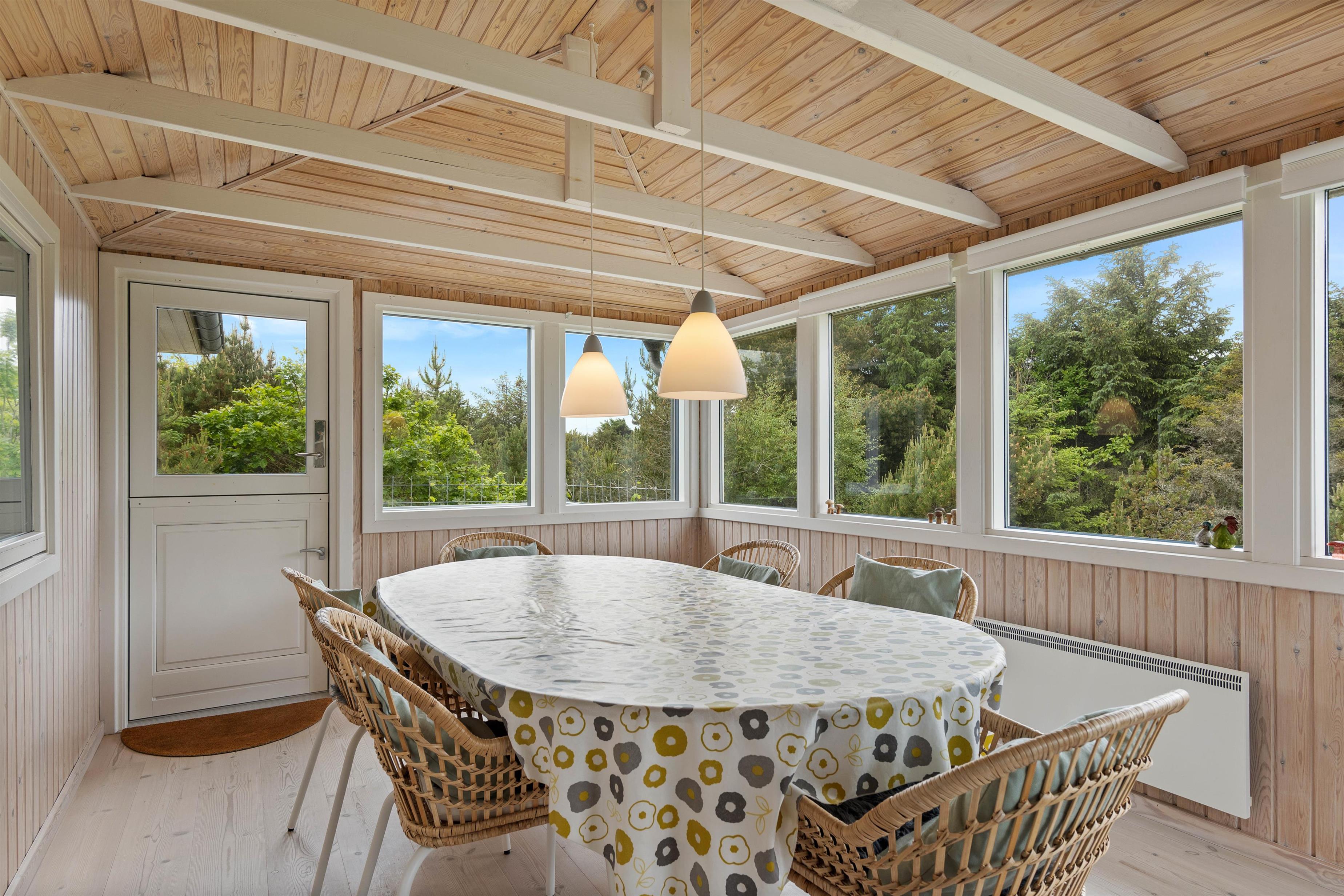 Fra alrummet kan I træde ud i sommerhusets skønne udestue, hvor I også kan tilbringe mange hyggelige timer i løbet af ferien. Her kan I også nyde et kig ud til haven og den skønne natur, der omgiver sommerhuset.