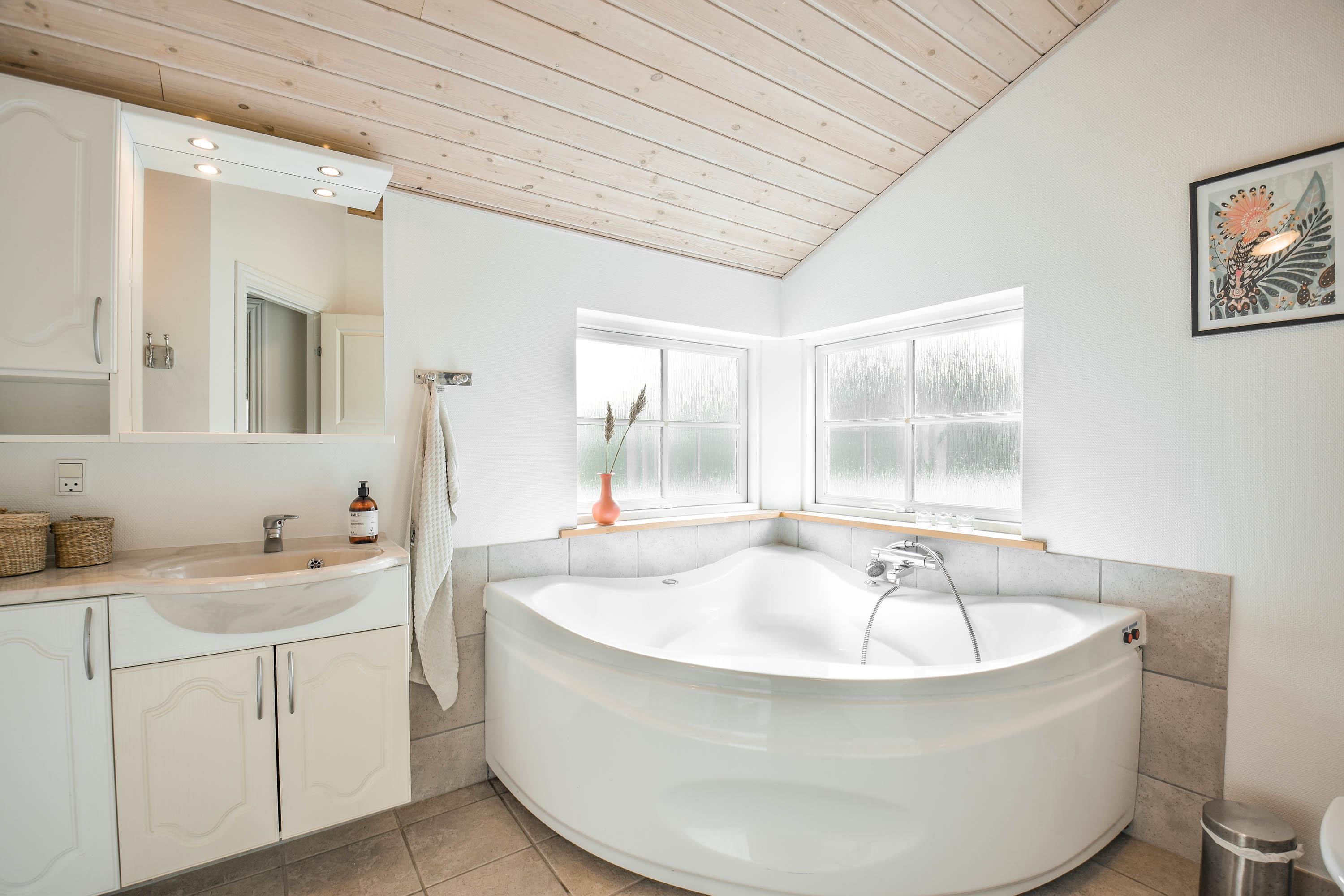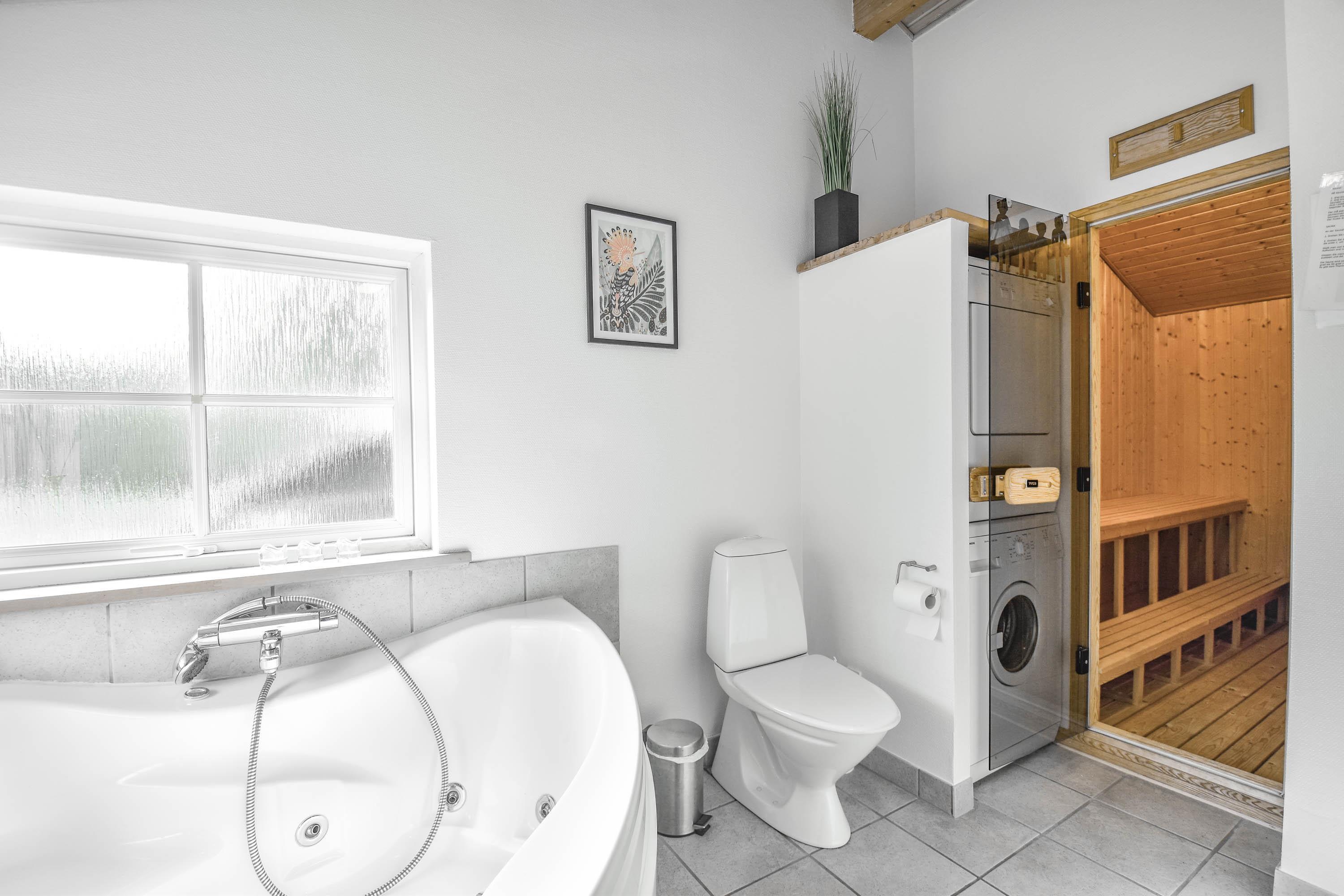 Efter en frisk tur ved havet kan du forkæle dig selv i husets wellnessafdeling – med spa, sauna og et stort badeværelse, der indbyder til afslapning.