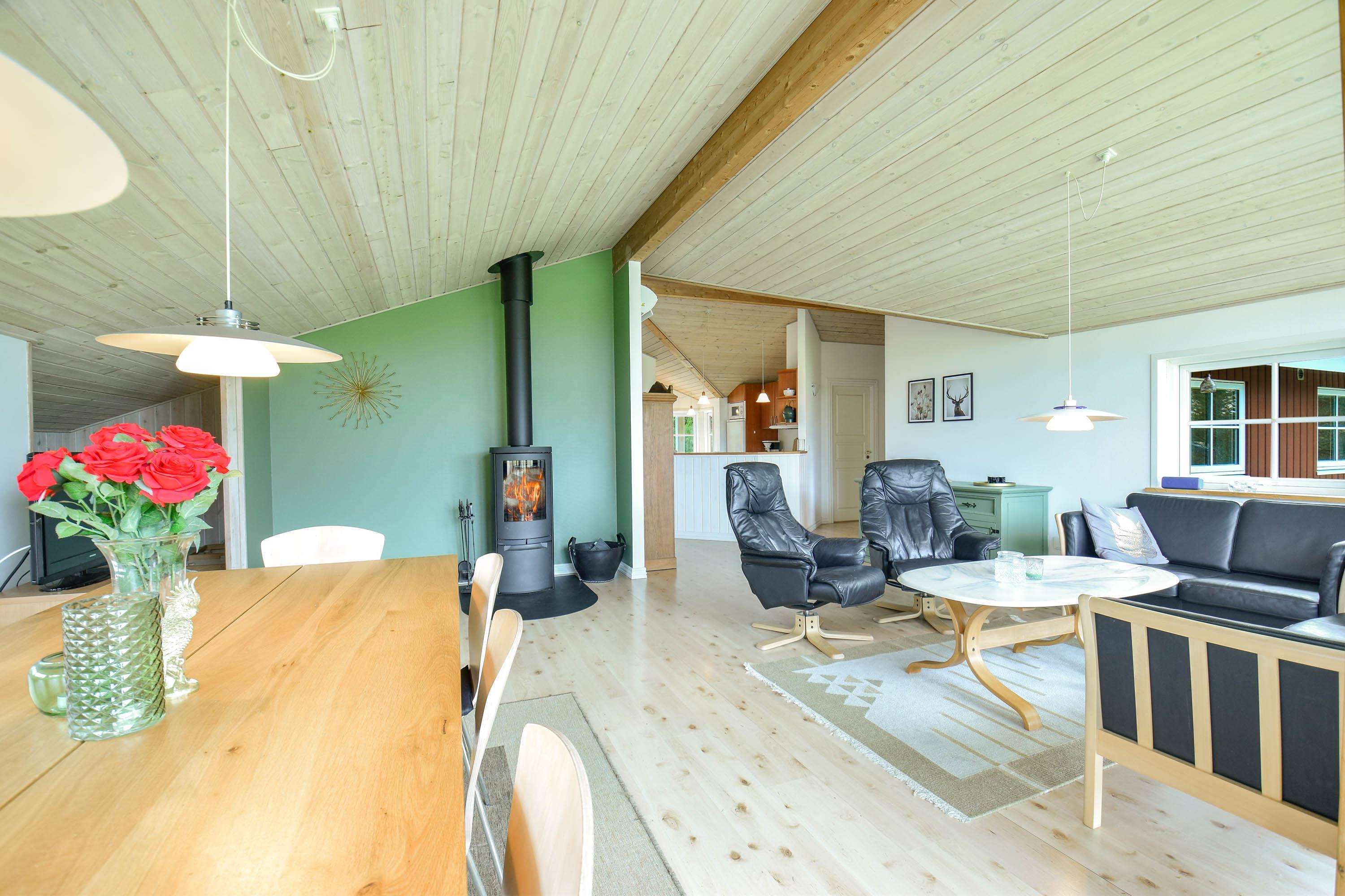 I stuen sørger brændeovnen for ekstra varme og stemning, og den hyggelige alkove giver et perfekt lille hjørne til afslapning med en god bog.