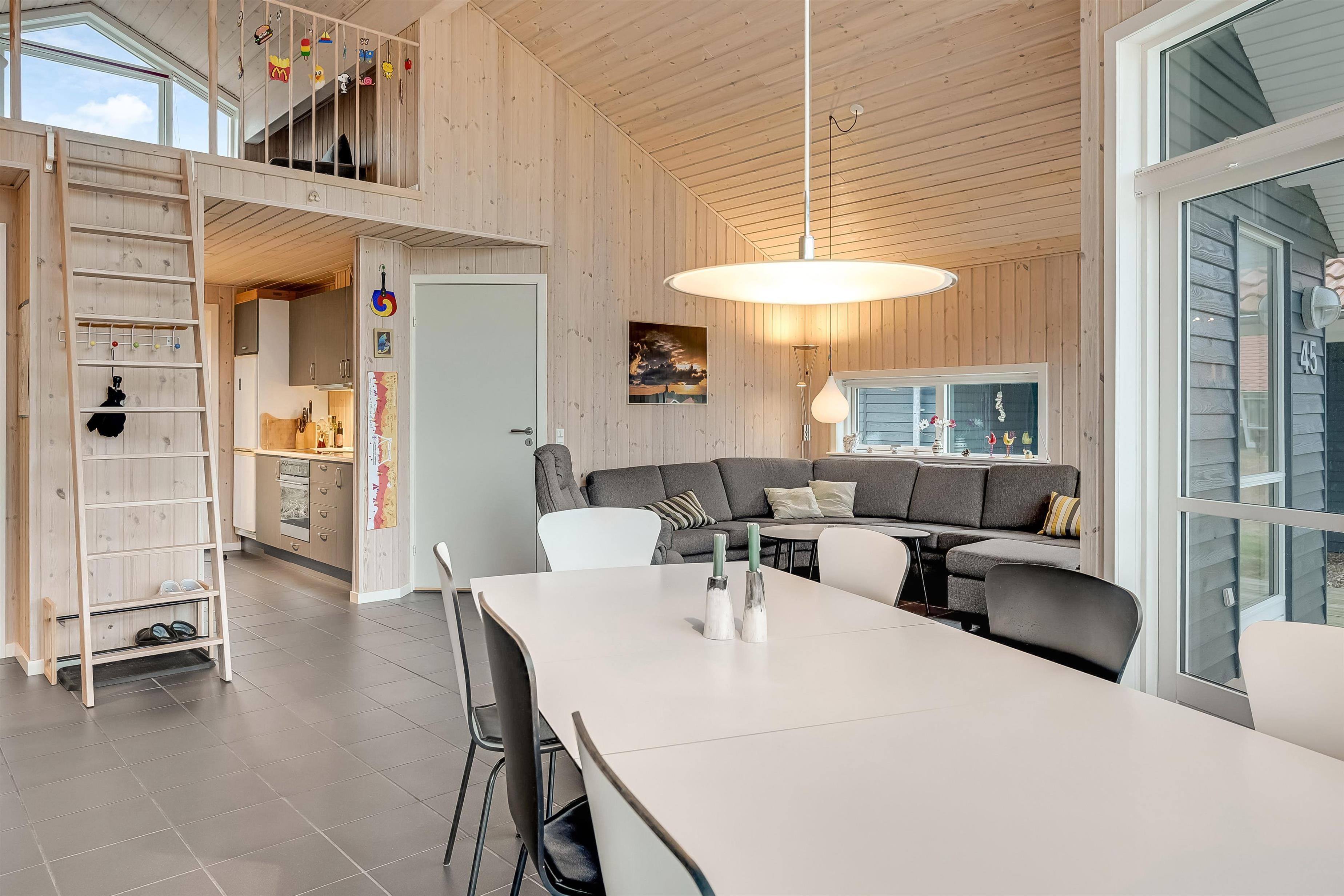 Feriehuset fremstår lyst, indbydende og funktionelt med en planløsning, der skaber gode rammer for samvær og afslapning.