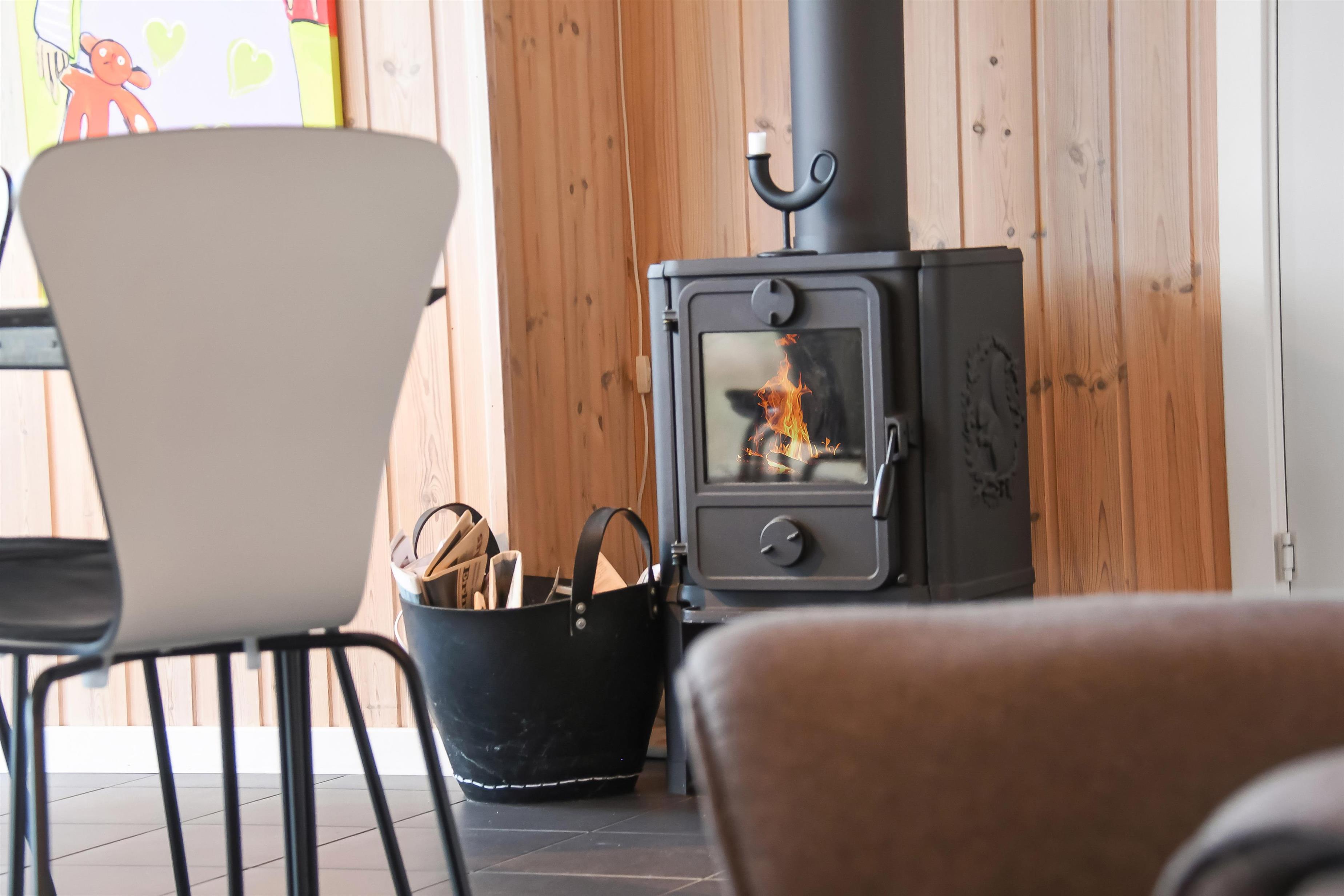 Brændeovn og varmepumpe sørger for en behagelig temperatur året rundt og bidrager til den hyggelige feriestemning.