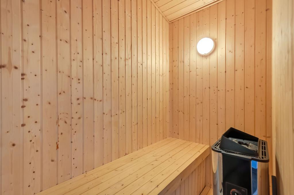 Den flotte brændeovn skaber varme og stemning, mens spaen og saunaen giver mulighed for ægte afslapning efter en dag i naturen eller ved stranden.