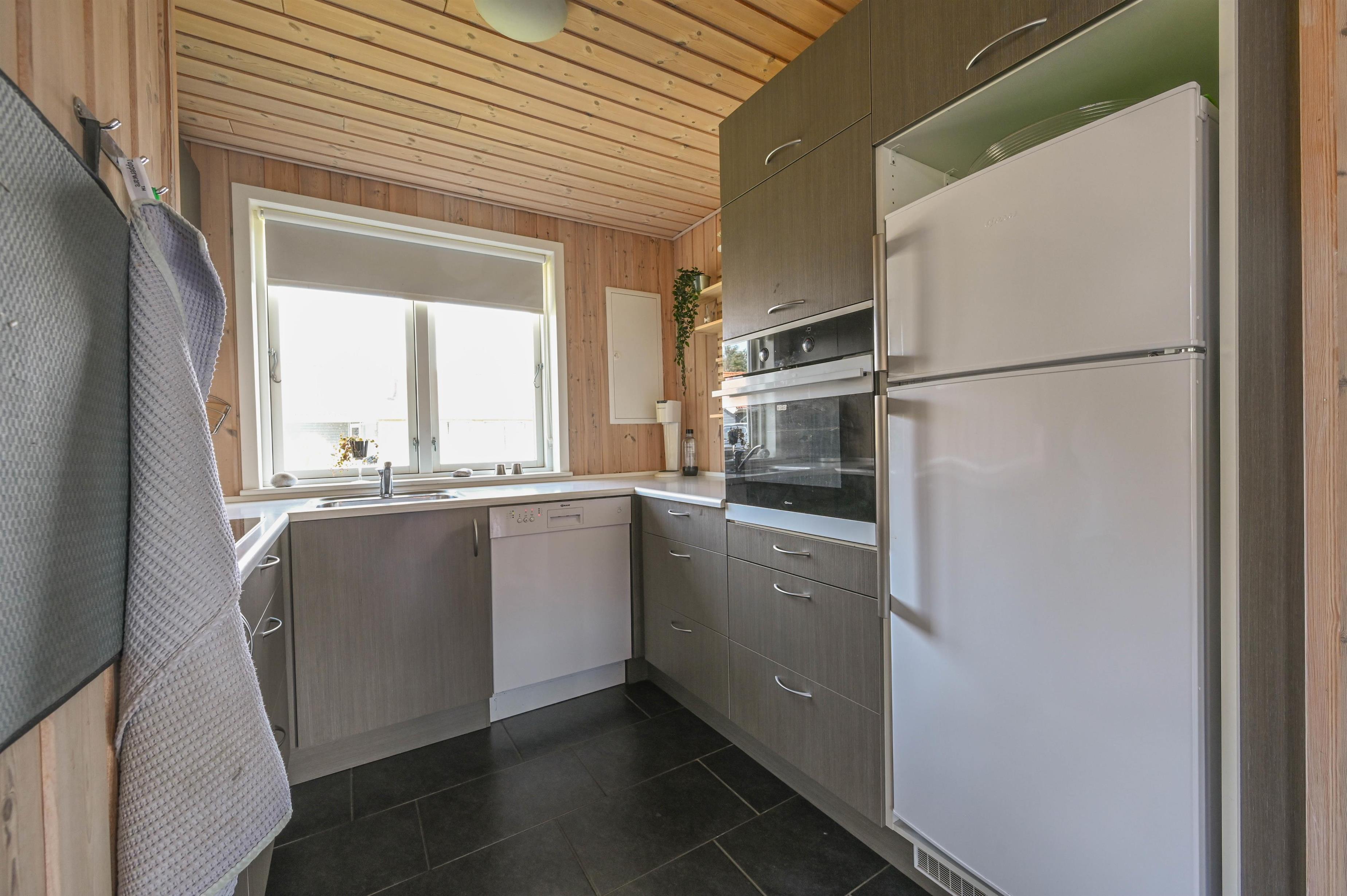 Indenfor byder huset på en funktionel og hyggelig indretning med entre og et veludstyret køkken, der blandt andet har opvaskemaskine. Stuen er lys og rummelig med spiseplads, sofagruppe og tv – her er der plads til både hygge og fælles måltider. De to soveværelser rummer henholdsvis en dobbeltseng og to enkeltsenge, som nemt kan sættes sammen til endnu en dobbeltseng. Begge værelser er rummelige og giver fint plads til en barneseng, hvis det ønskes. På hemsen findes to ekstra madrasser – oplagt til lidt større børn eller dem, der søger en ekstra hyggelig soveplads.