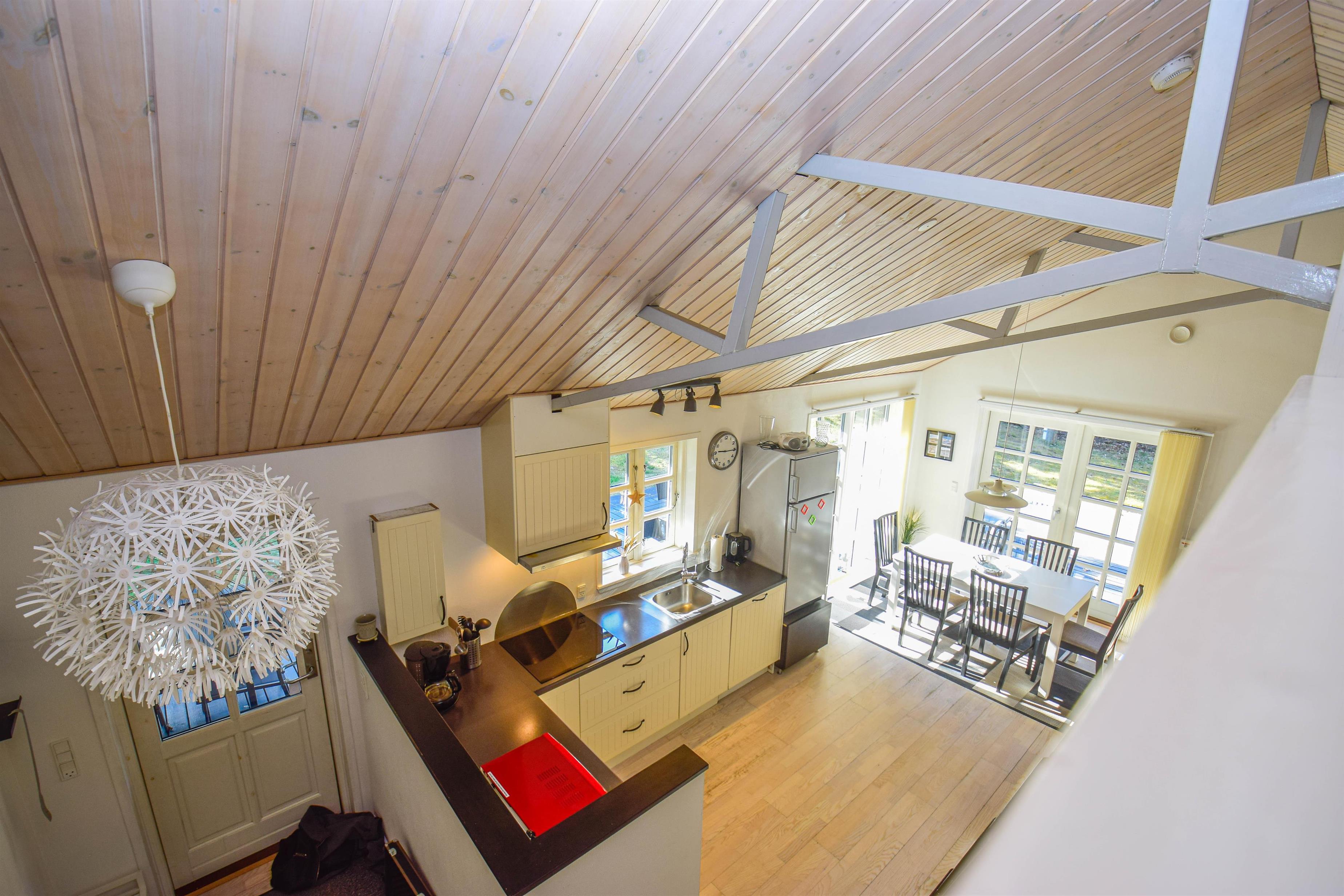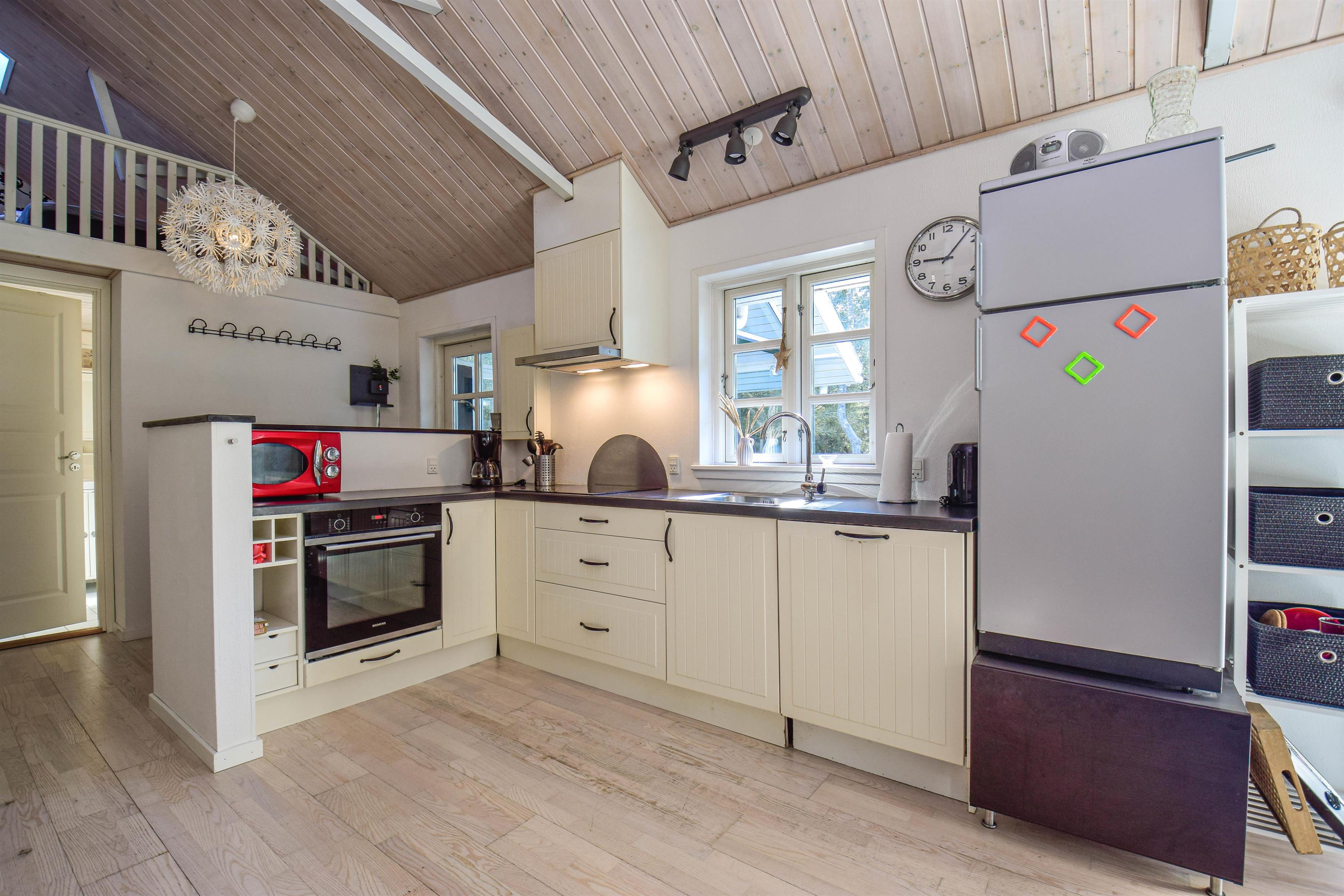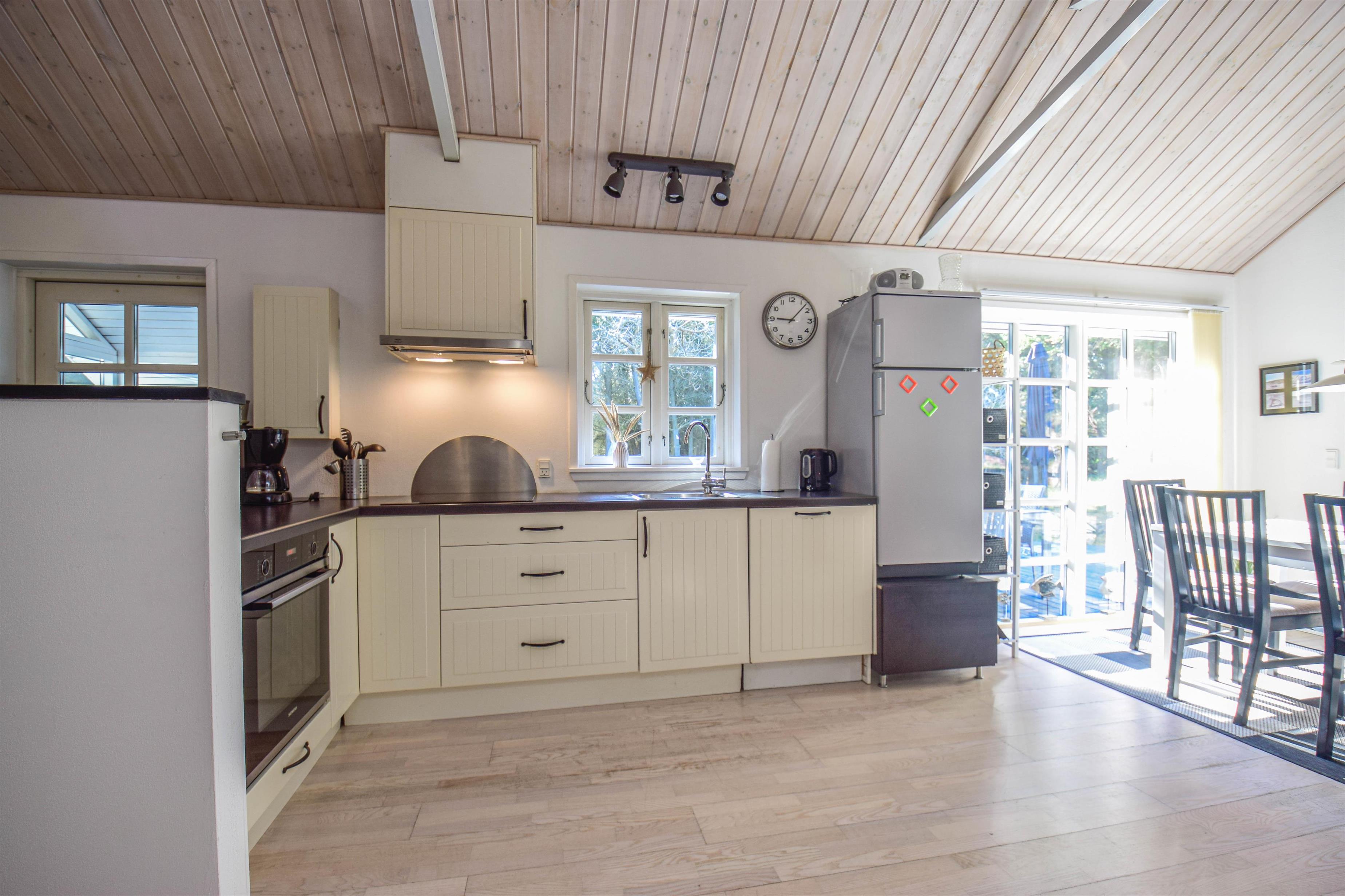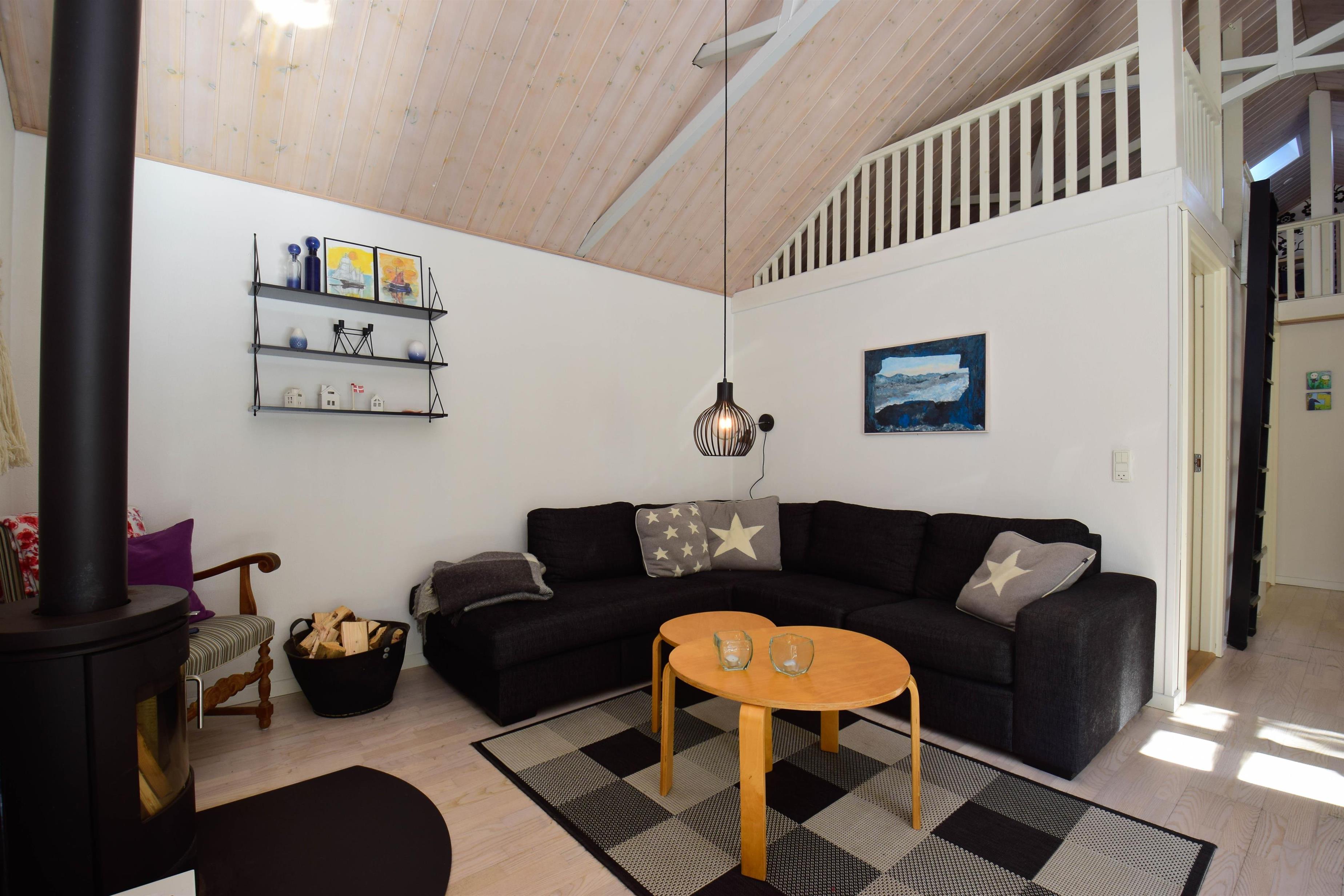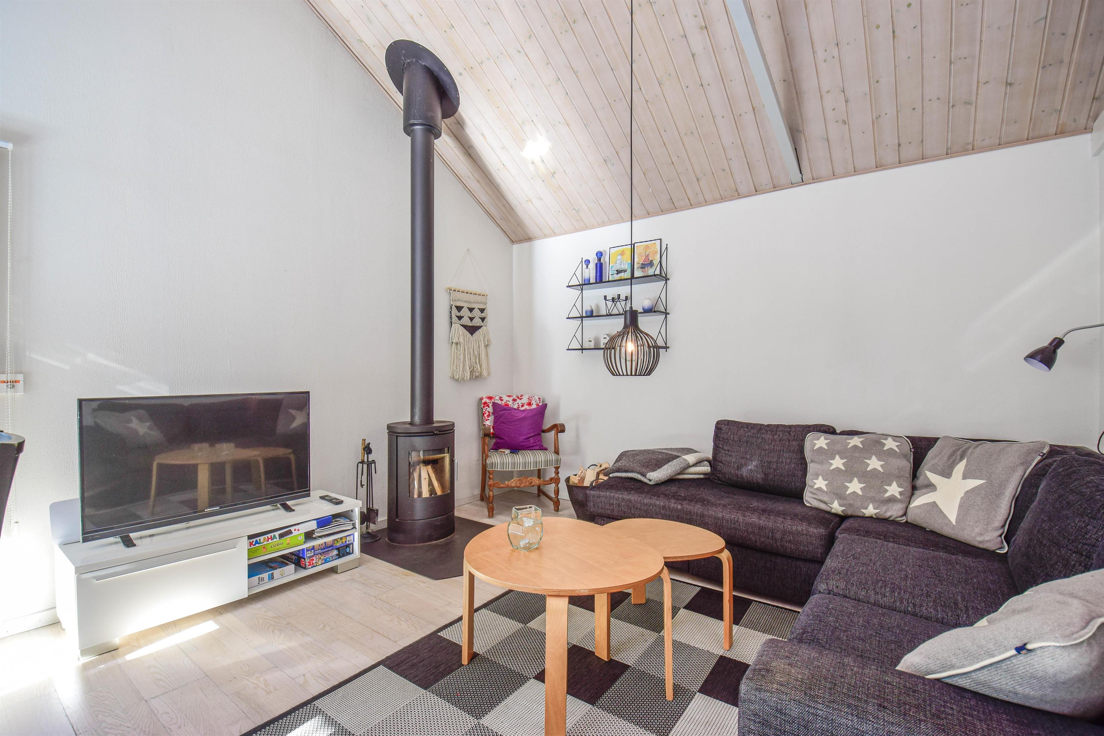 Køkkenet er veludstyret med opvaskemaskine og god bordplads, og i den hyggelige stue er der brændeovn, TV og et dejligt sofahjørne, hvor man hurtigt falder til.