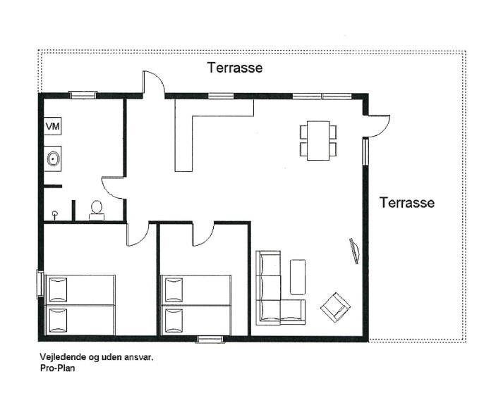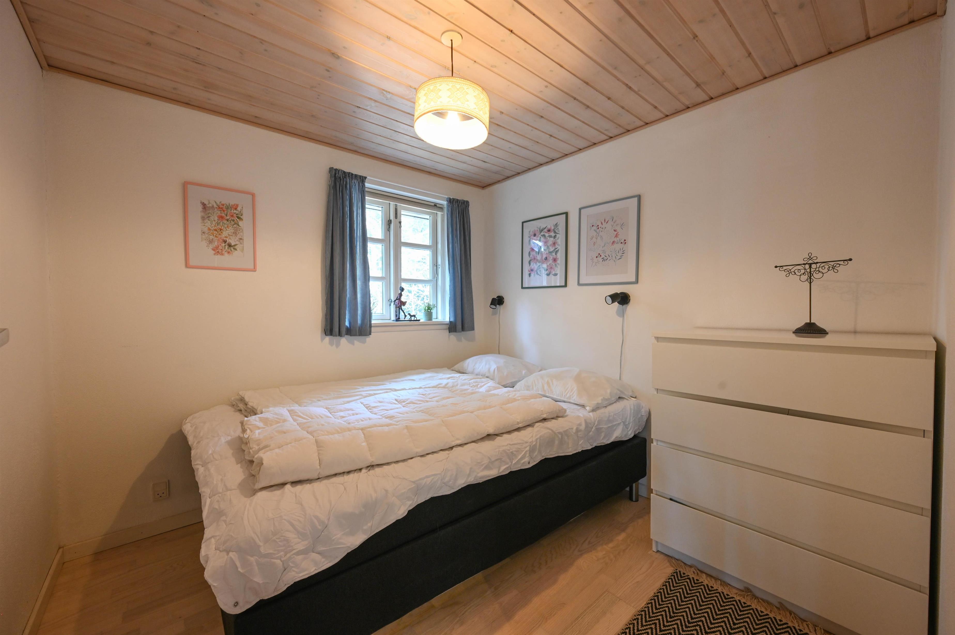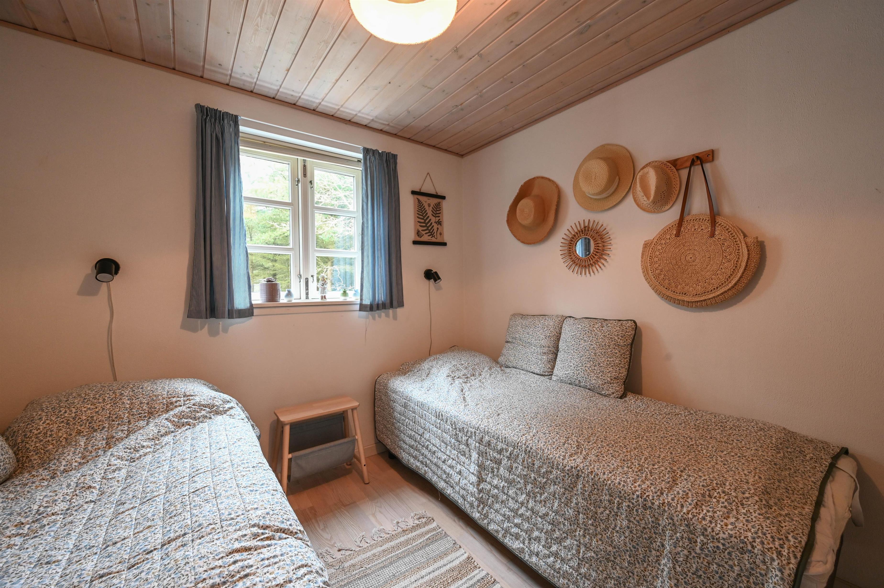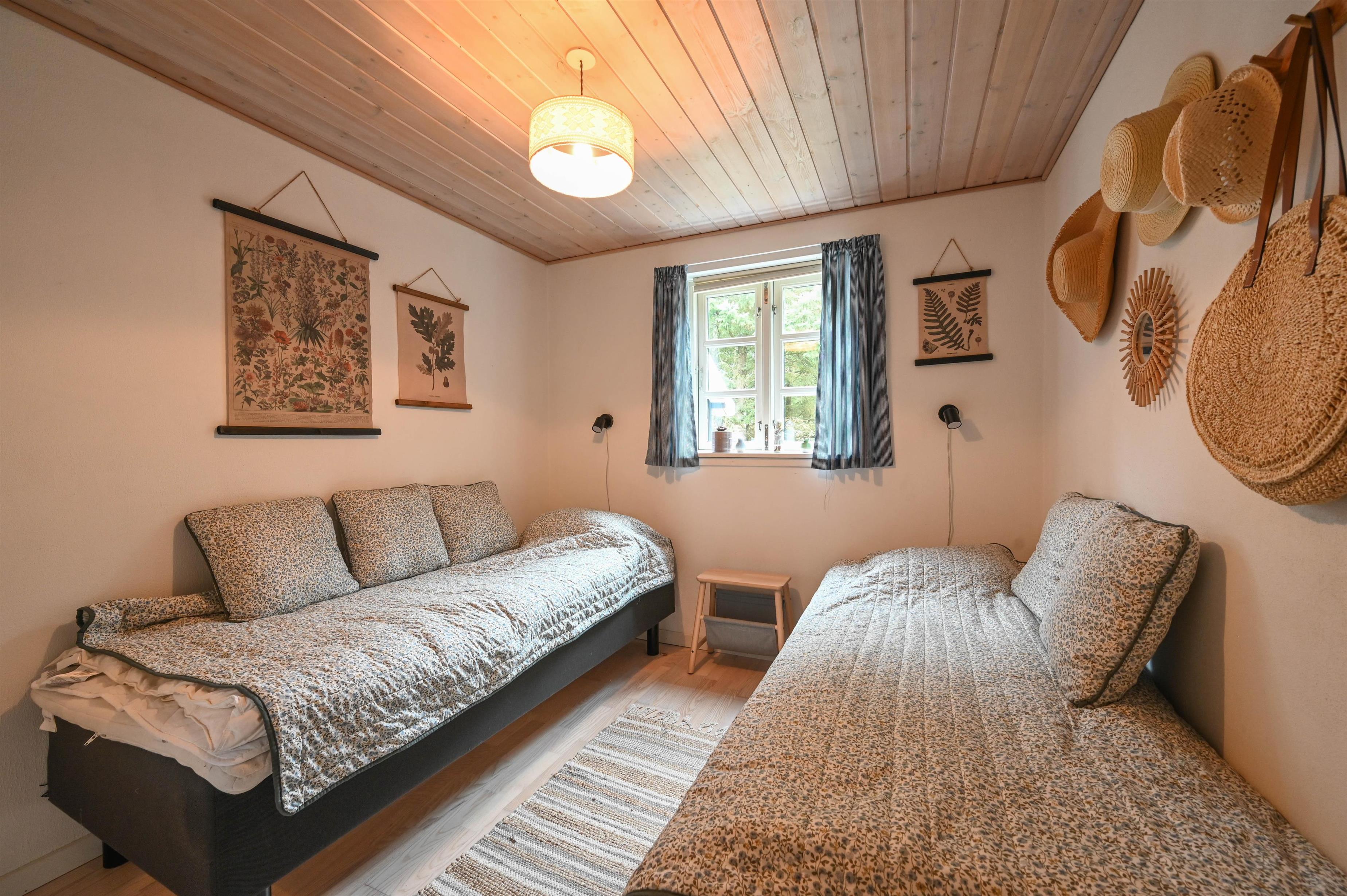 Huset har et soveværelse med dobbeltseng samt et værelse med to enkeltsenge, som nemt kan sættes sammen til en dobbeltseng – perfekt til både par og små familier.