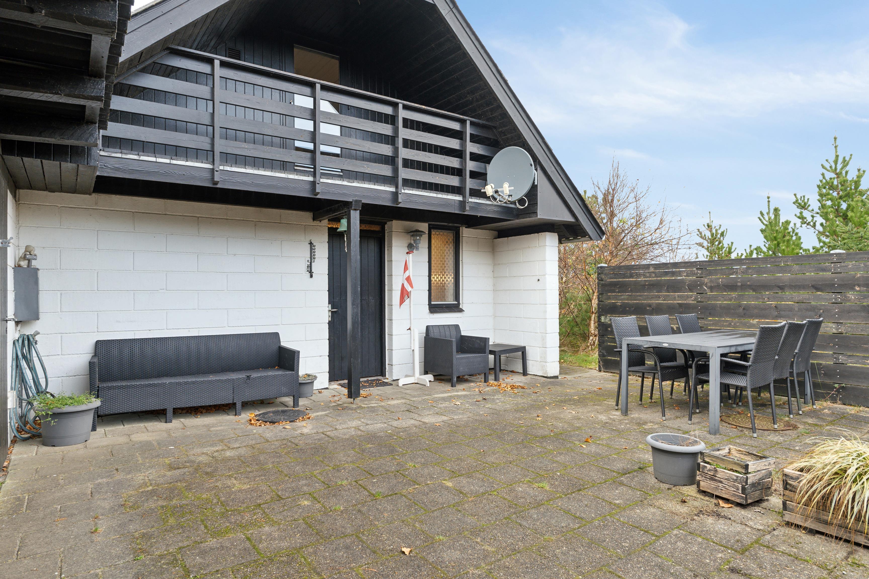 Huset er omgivet af flere terrasser og hyggelige lækroge, hvor I kan finde ro og nyde omgivelserne. Mod øst ligger en stor solgård, indrettet med komfortable havemøbler, blomsterkrukker og liggestole – ideel til at nyde solen og et sikkert sted for børn og hunde at lege frit.