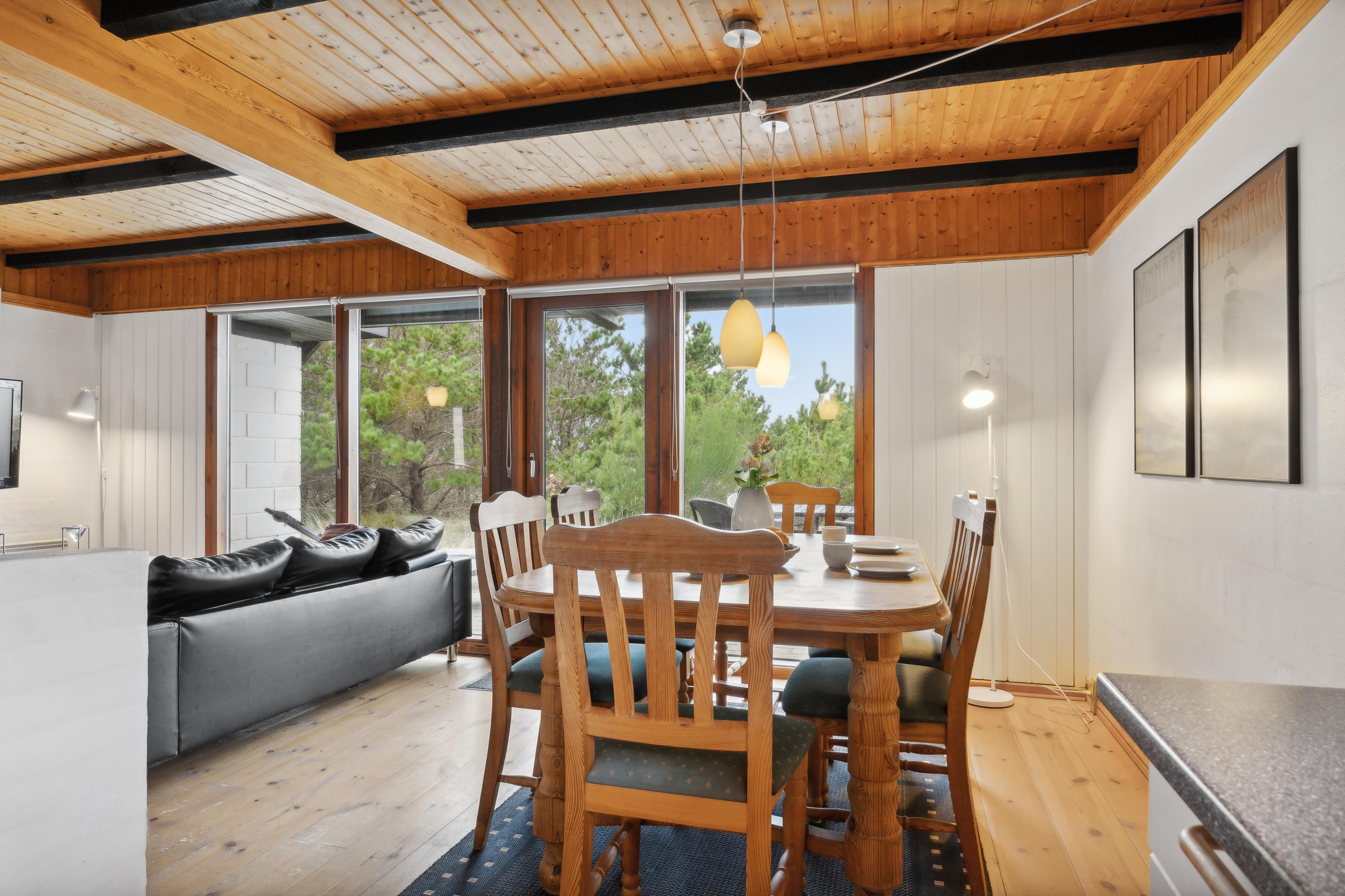 Det er sjældent, at man finder et feriehus, der både byder på gode læforhold og en imponerende udsigt – men dette hus har begge dele. Højt placeret på bakkerne ved Nissum Fjord, tilbyder det en betagende panoramaudsigt over fjorden, de omkringliggende enge og klitterne i baggrunden.