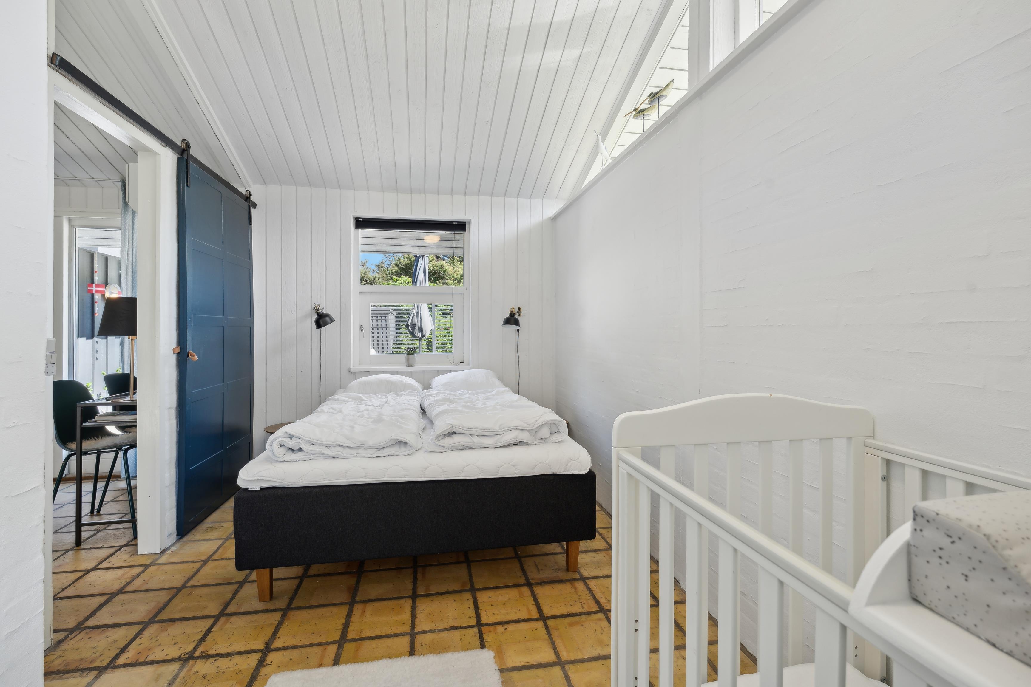 Dette charmerende sommerhus med ægte sommerhusstemning indbyder til god underholdning og leg i aktivitetsrummet samt afslapning foran brændeovnen i den hyggelige stue. Sommerhuset er delt op i 2 afdelinger. En afdeling med 3 værelser, stue, køkken og et badeværelse med bruser. Den anden afdeling har aktivitetsrum, et værelse med dobbeltseng, et badeværelse med badekar samt en hems med to enkelt senge. Der er en god trappe op til hemsen. Fra hemsen er der udgang til en lille altan, hvor kaffen kan nydes mellem trætoppene. I sommerhusets aktivitetsrum er der god mulighed for at konkurrere i bordtennis, bordfodbold eller bob. Der er 2 varmepumper i sommerhuset, et i hver afdeling. I alt 10 personer med maksimalt 3 kæledyr kan nyde og slappe af på ferien her.