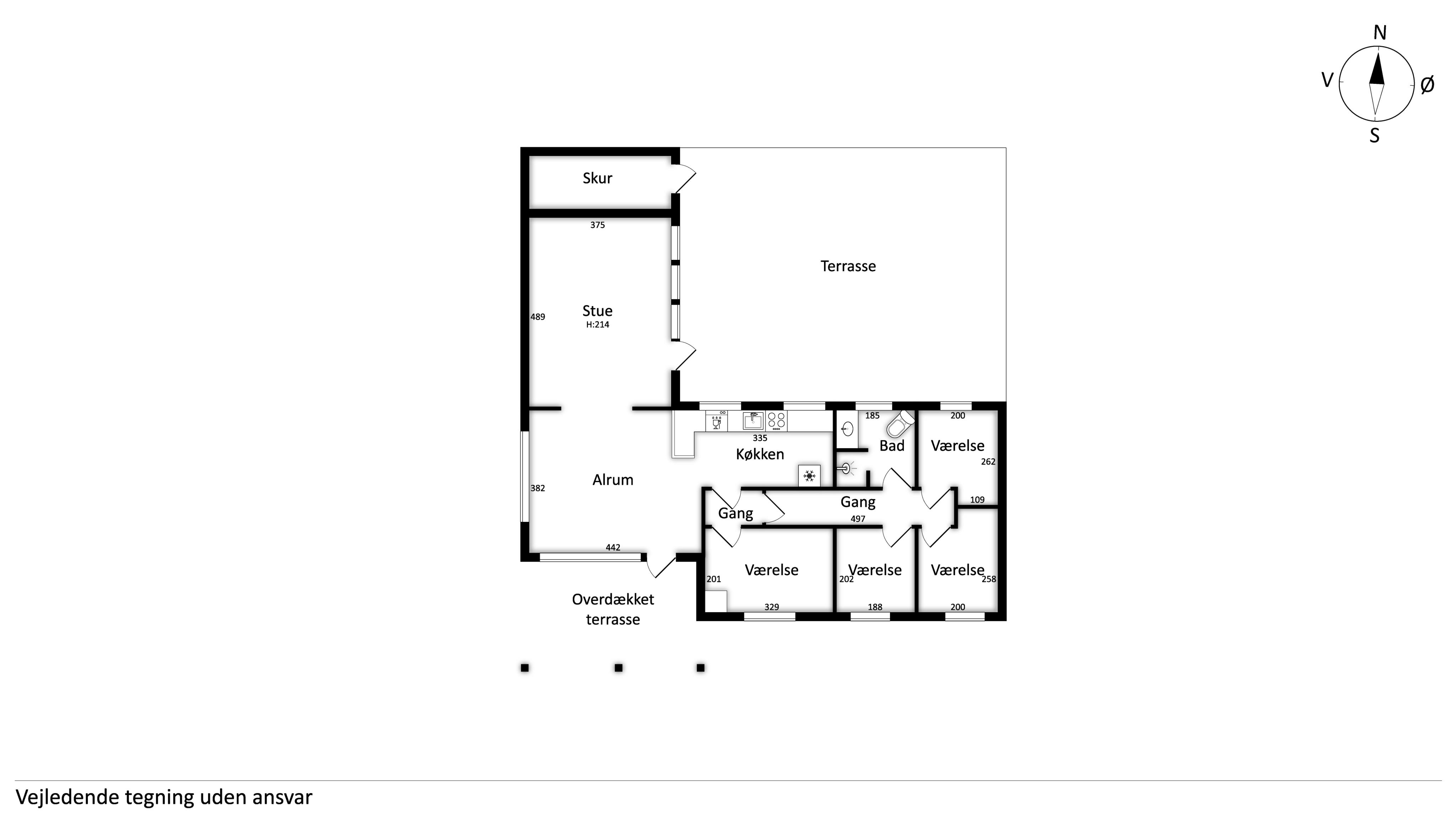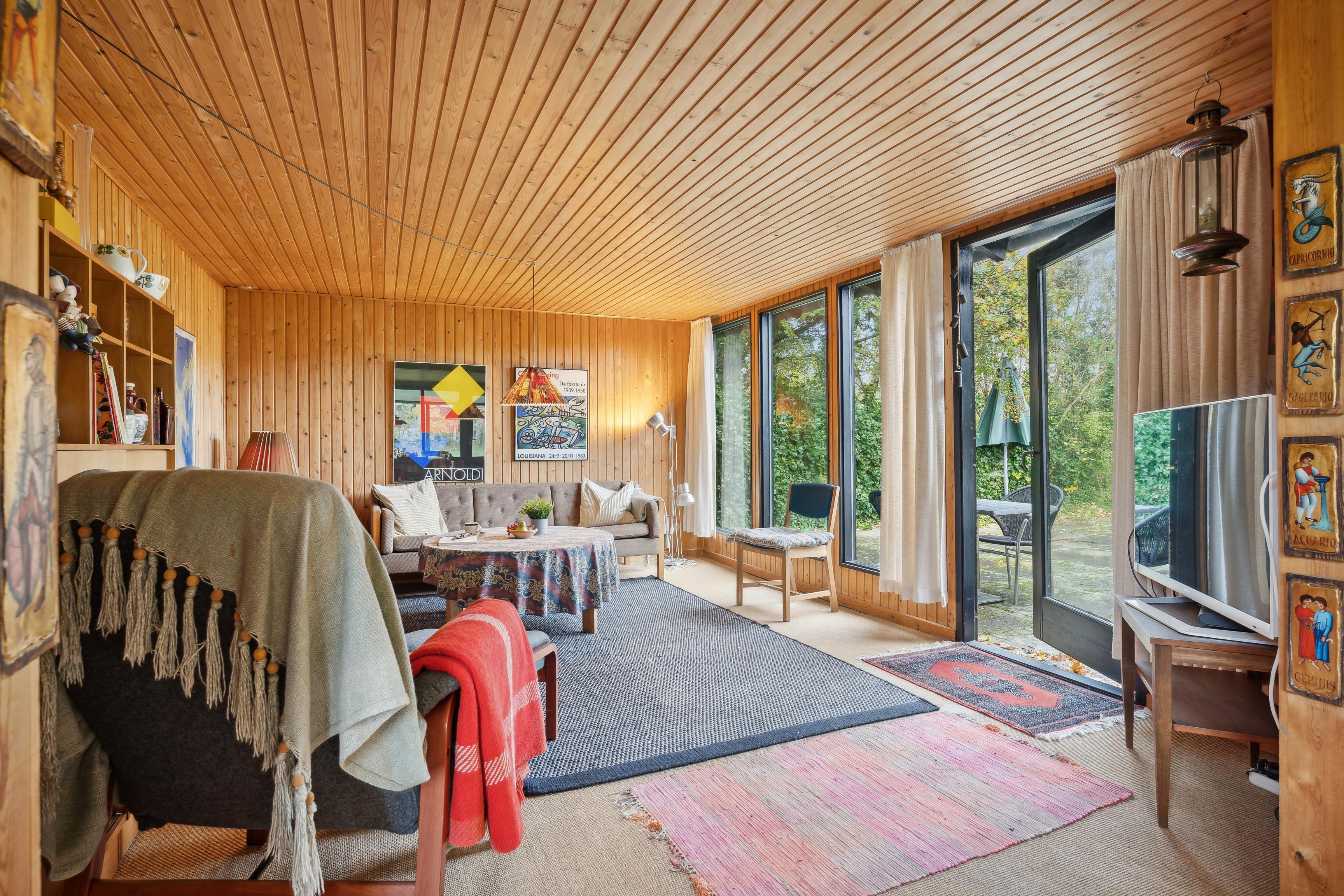 Sommerhuset har et åbent køkken-alrum, der skaber en skøn ramme om familielivet med spise- og opholdsområder. De mange vinduer sørger for et godt lysindfald og en flot udsigt til naturen. Fra stuen er der direkte adgang til den rummelige terrasse, hvor grillen også står klar.