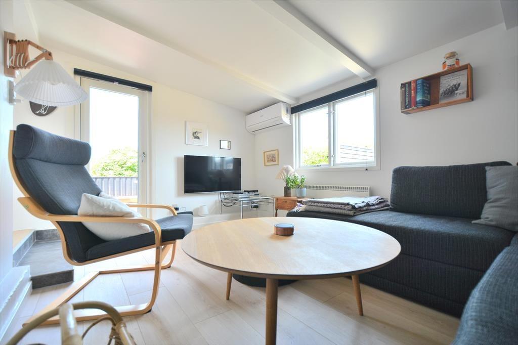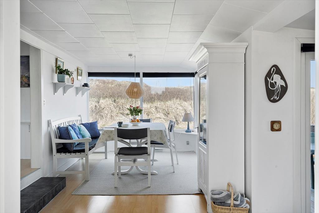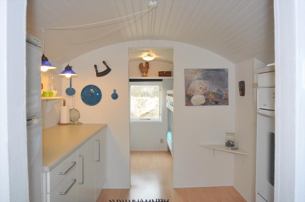 Drømmer I om ægte sommerhusstemning tæt på klitter og hav? Så vil dette helt særlige feriehus, en gammel ombygget togvogn, helt sikkert falde i jeres smag. Ombygningen giver huset masser af charme og hyggelig atmosfære, som straks skaber feriestemning. Huset ligger i et fredeligt og hyggeligt sommerhusområde, hvor roen hurtigt sænker sig. Indenfor mødes I af et lyst hjem med stuen placeret midt i huset – herfra er der direkte udgang til den lækre terrasse, hvilket får terrassen til at føles som en naturlig forlængelse af stuen. Flere små hyggekroge inviterer til en god bog, en varm kop kaffe eller bare at nyde udsigten over klitterne.