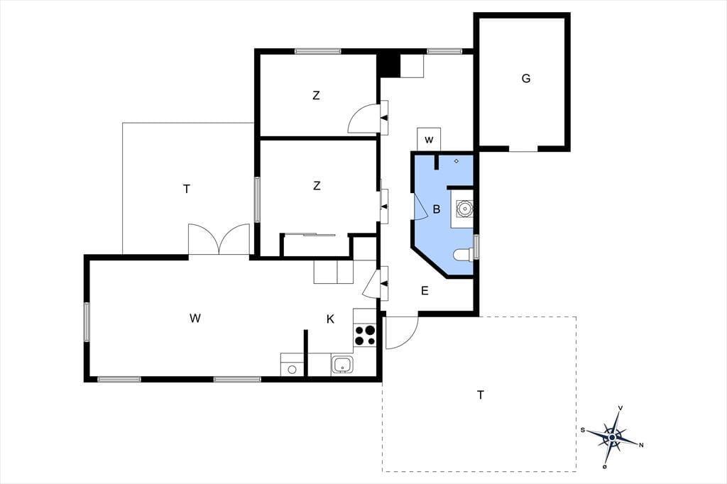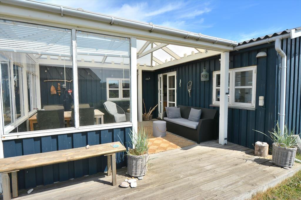 Fra stuen er der direkte adgang til den skønne, overdækkede terrasse, hvor der altid er læ – også selvom huset ligger tæt på det brusende Vesterhav. Her kan I sidde ude året rundt, nyde stilheden og den friske havluft, mens I mærker naturen omkring jer. På den anden side af huset finder I endnu en terrasse, helt lukket og ugeneret – det perfekte sted til morgenkaffen eller en stille stund i solen. Uanset årstid får I den ideelle ramme til både afslapning og hyggelige timer under åben himmel.