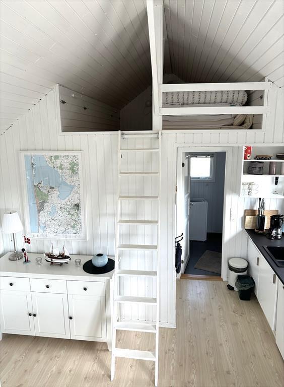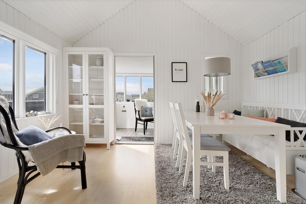 Når I træder indenfor i dette skønne feriehus, vil I blive mødt af lyset der strømmer ind genne de store vinduer, hvilket er med til at give huset et fantastisk lys som skaber en god rummelighed. Her kan I nyde feriens afslappende stunder med et spil kort om spisebordet, hygge med madlavning i køkkenet eller en stille stund med en god bog i den dejlige stue hvor der er lavet en skøn hyggekrog, her kan I rigtigt slænge jer og nyde den dejlige sol der kommer ind gennem vinduerne. På trods af huset få kvadratmeter har I masser af plads til både at være sammen, men også trække jer tilbage og nyde lidt alene tid. Der er ingen tv i huset.