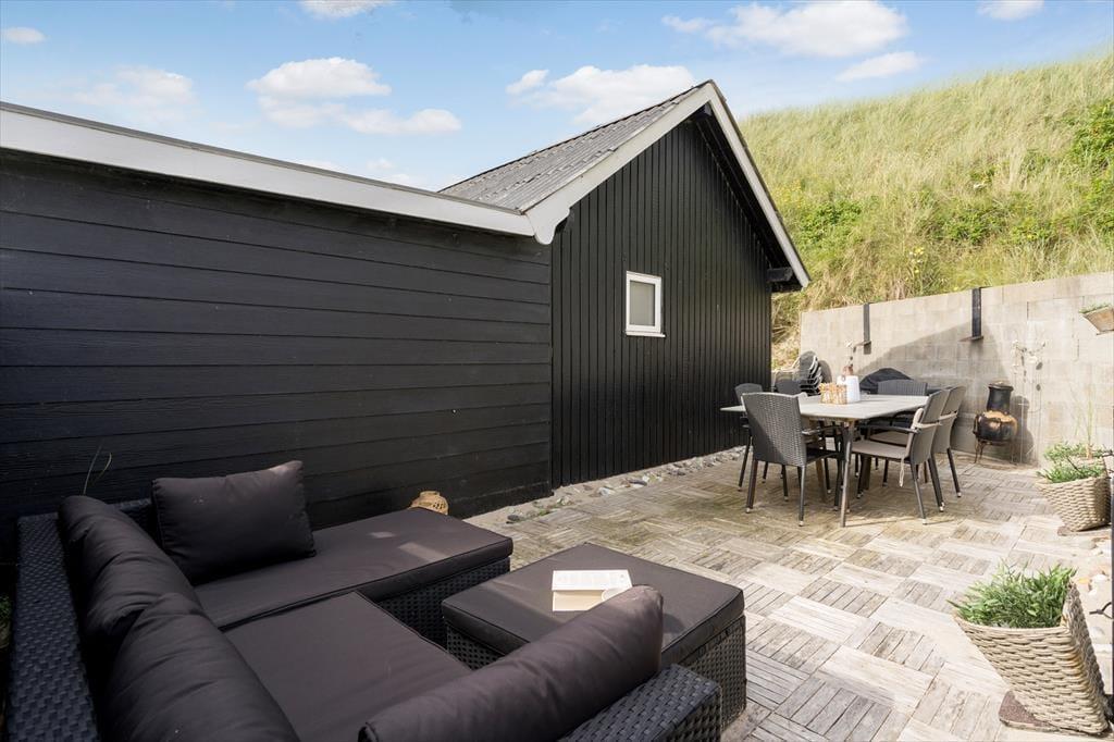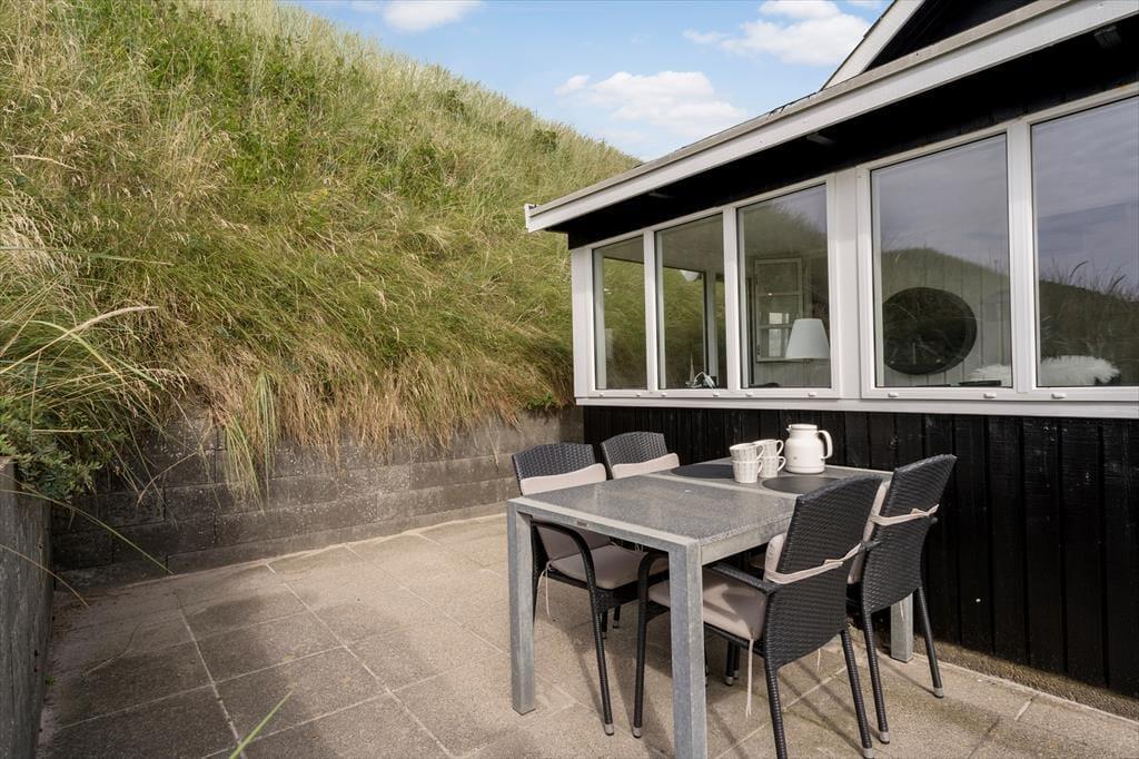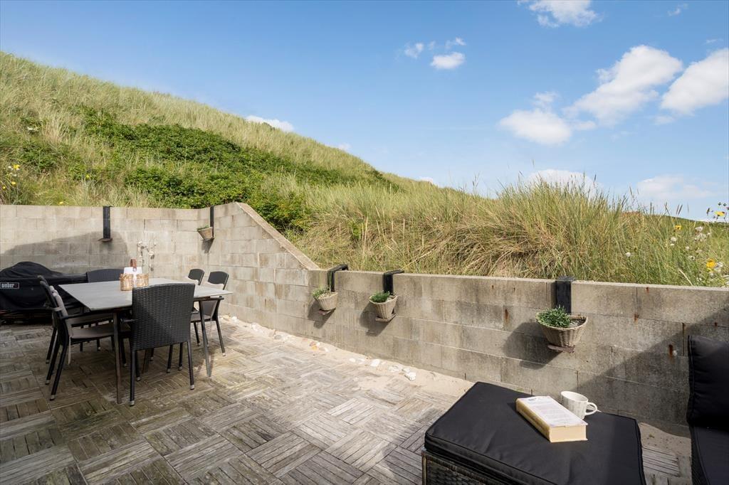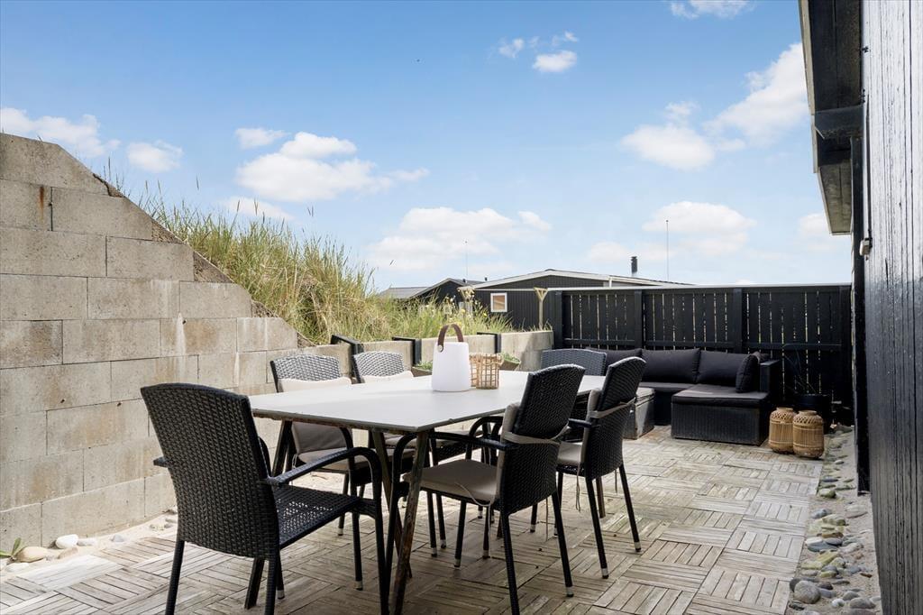 Det skønne sommerhus er omkranset af en skøn terrasse som giver jer fantastiske muligheder for at nyde den dejlige sol hele dagen. Så her kan I nyde en lækker kop morgenkaffe på den østvendte terrasse, imens I ser solen der langsomt stiger op i det fjerne, nyd frokosten på den sydvendte terrasse imens solens stråler blidt varmer jeres kroppe, og sidst men ikke mindst nyde aftensmaden på den vestvendte terrasse her kan I stege bøfferne på grillen, slænge jer i de lækre havemøbler med et lækkert glas rosé imens solen langsomt går ned bag klitterne.