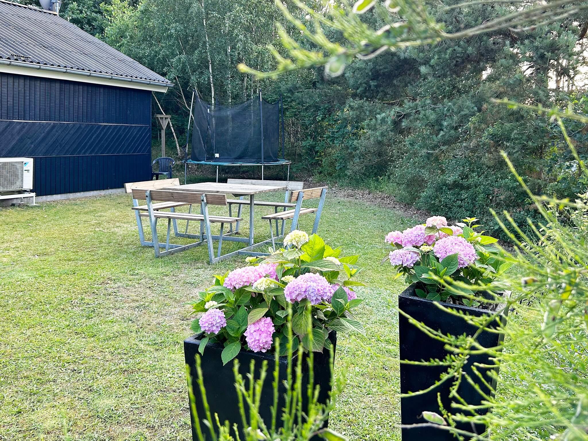 Der er sandkasse og gynge på grunden. Huset ligger på en naturgrund i ugenerte omgivelser.