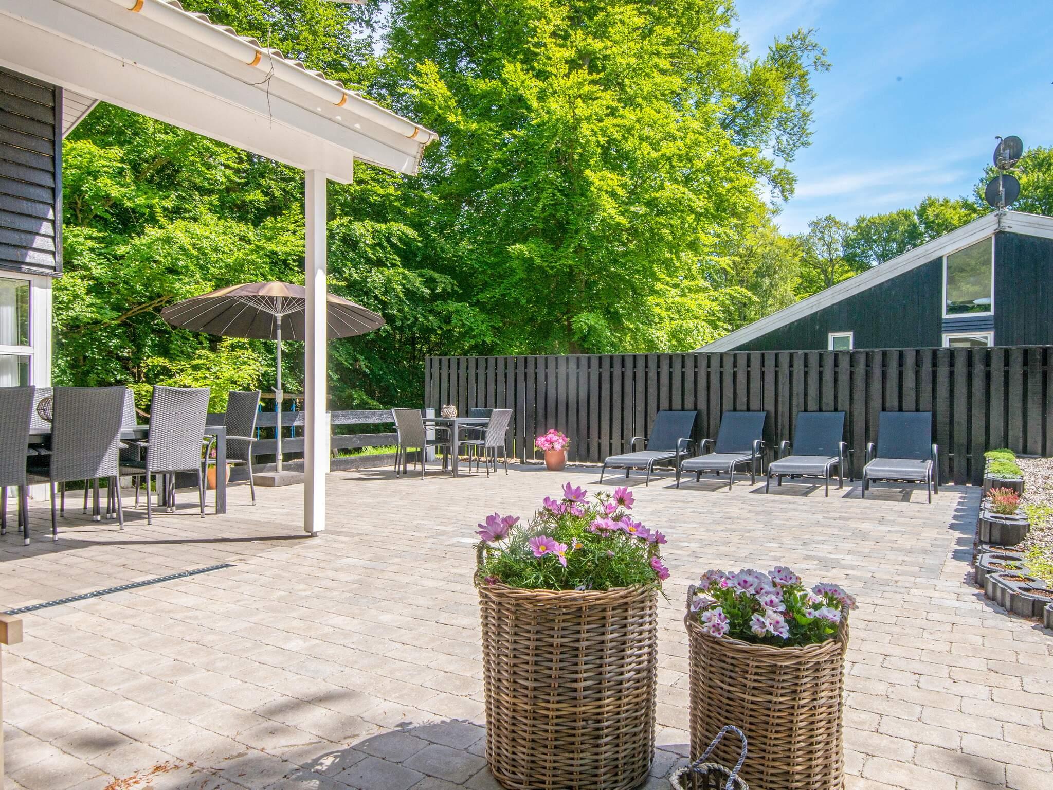 Stor terrasse hvor I kan nyde de danske sommeraftener. Der er gyngestativ og sandkasse til børnenes fornøjelse.