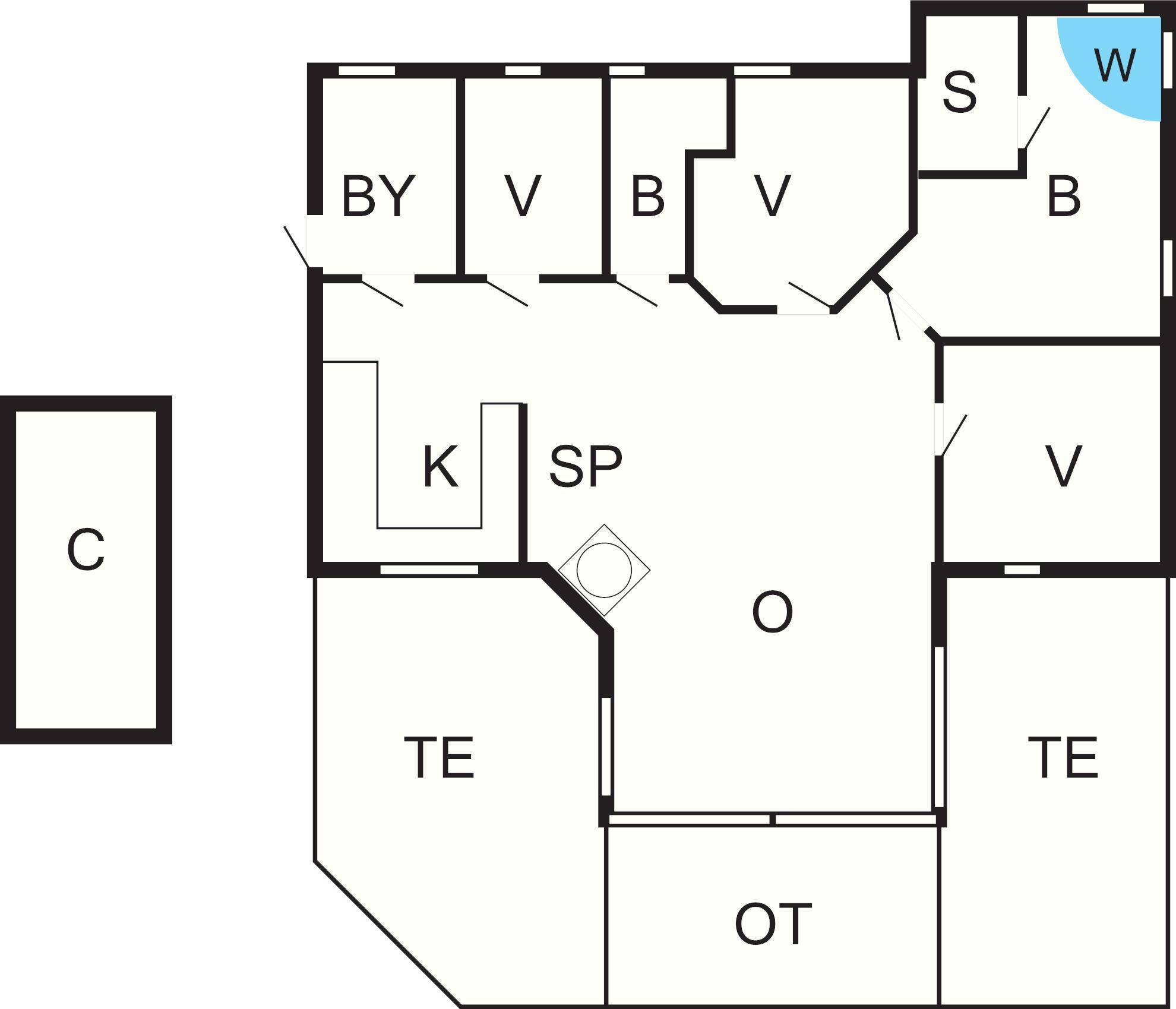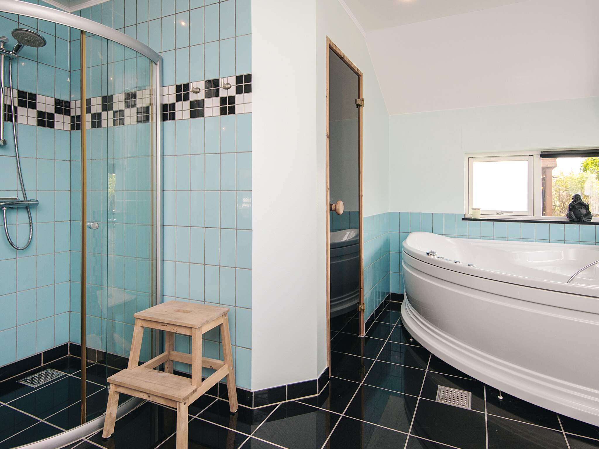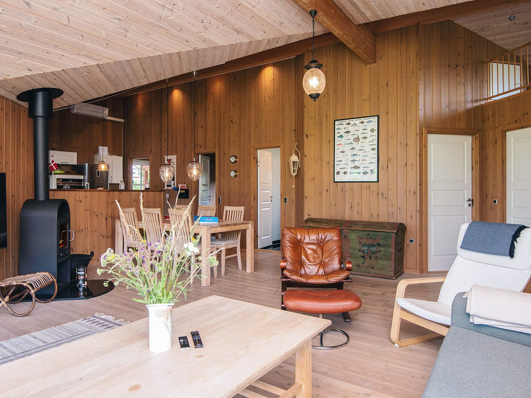 Sommerhuset har 57 m2 stue samt tre gode soveværelser og god stor hems. Derudover er der veludstyret køkken og to badeværelser med sauna til 6 personer og spabad til 2 personer.