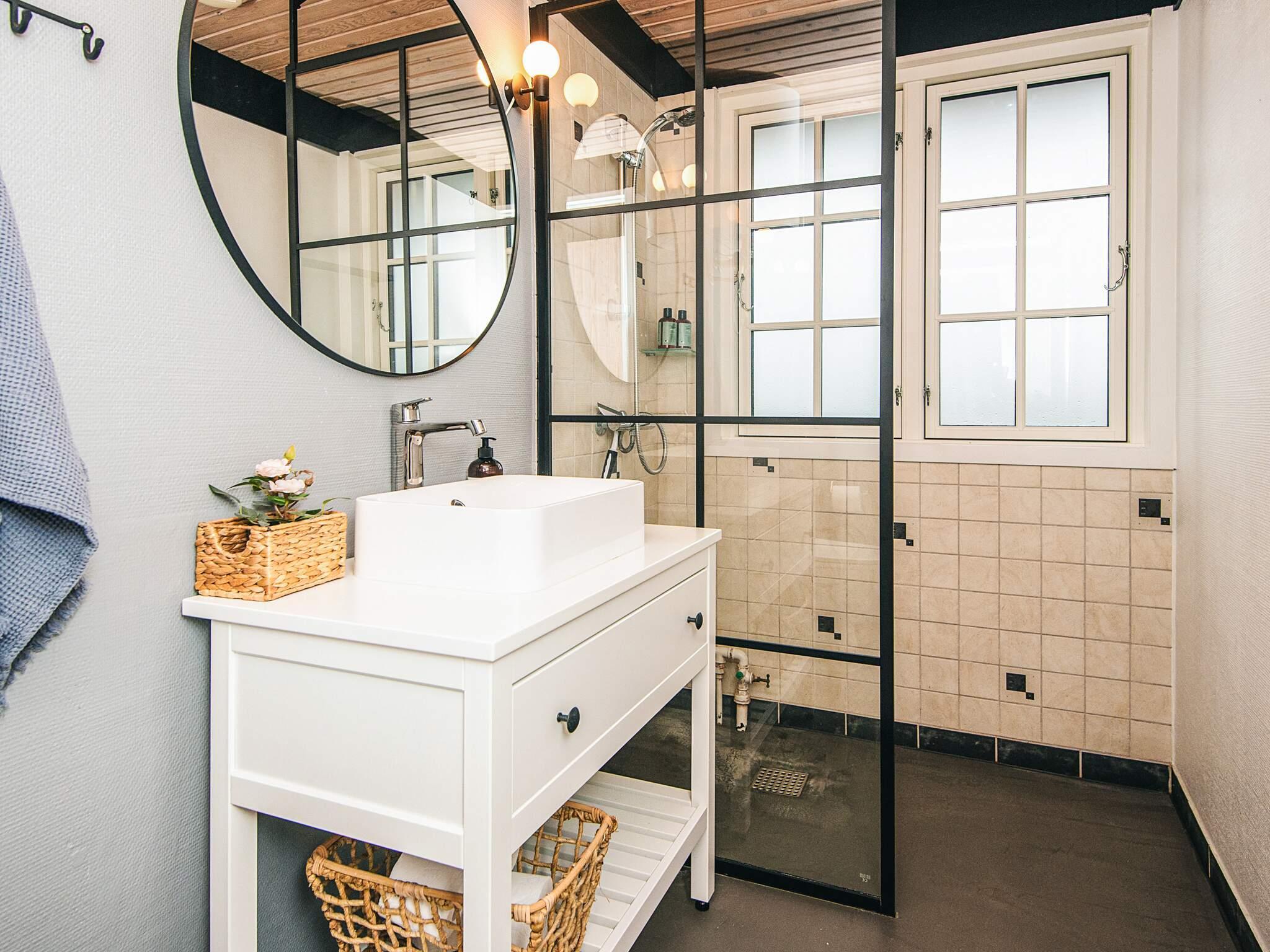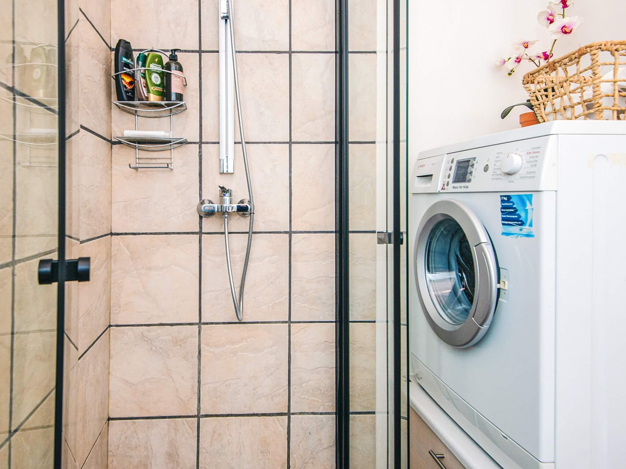 Bad/wc: Vaskemaskine, wc, håndvask, bruseniche, gulvvarme