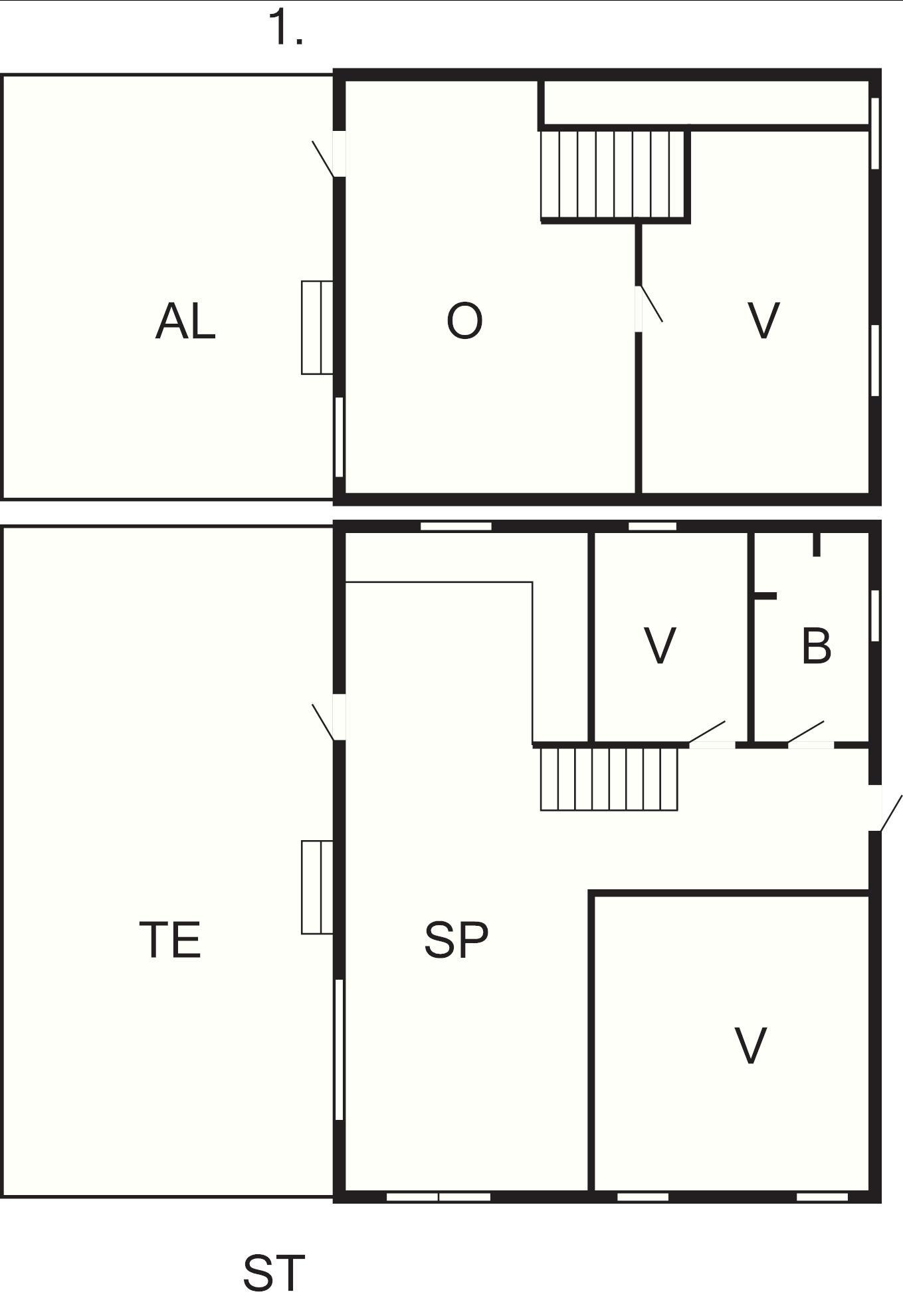 1 Opholdsstue: Brændeovn, radio, tv