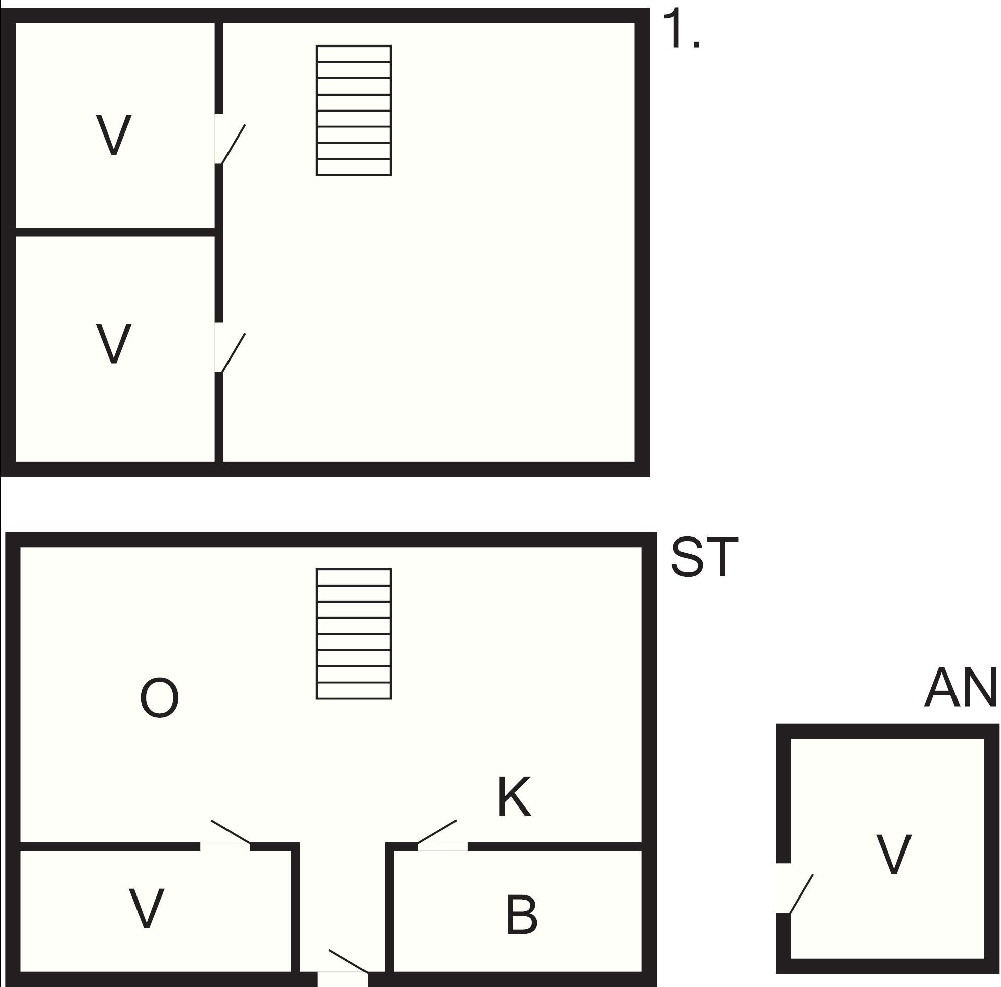 1 Opholdsstue: 25 m2, brændeovn, radio, stereoanlæg med cd, dvd-afspiller, tv, video, parabol