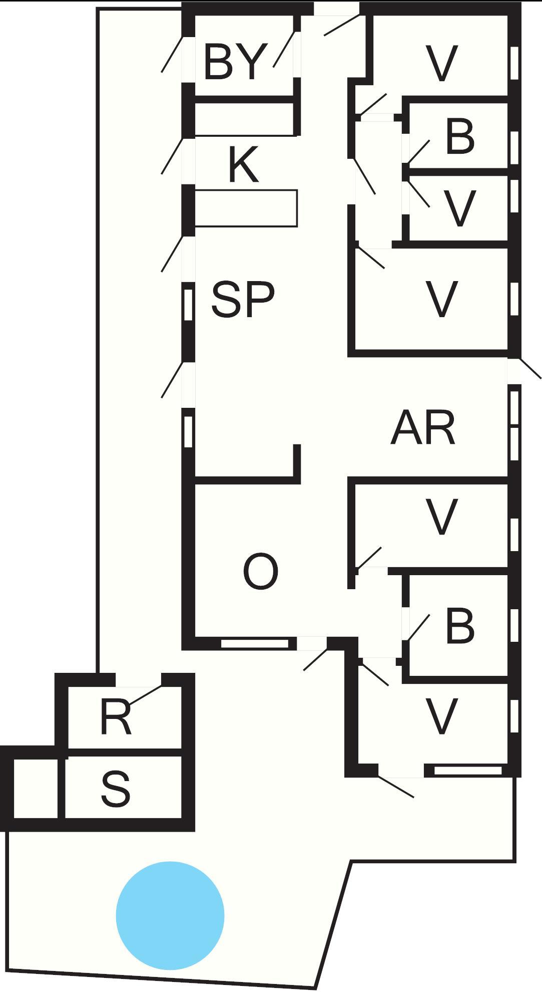 5 Soveværelser: (1DS)+(2K)+(1DS)+(1DS)+(1DS)
