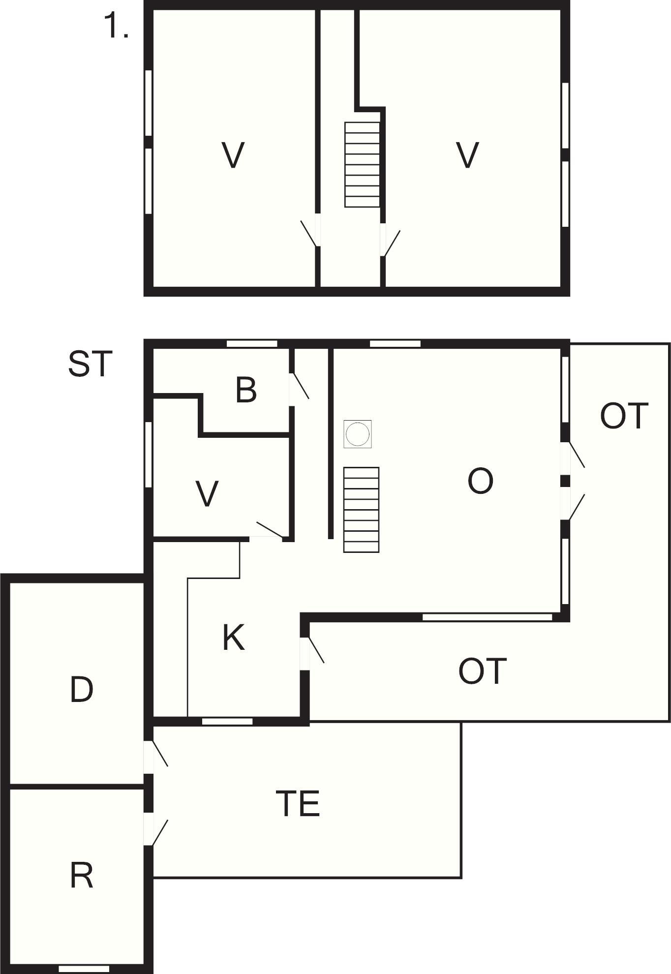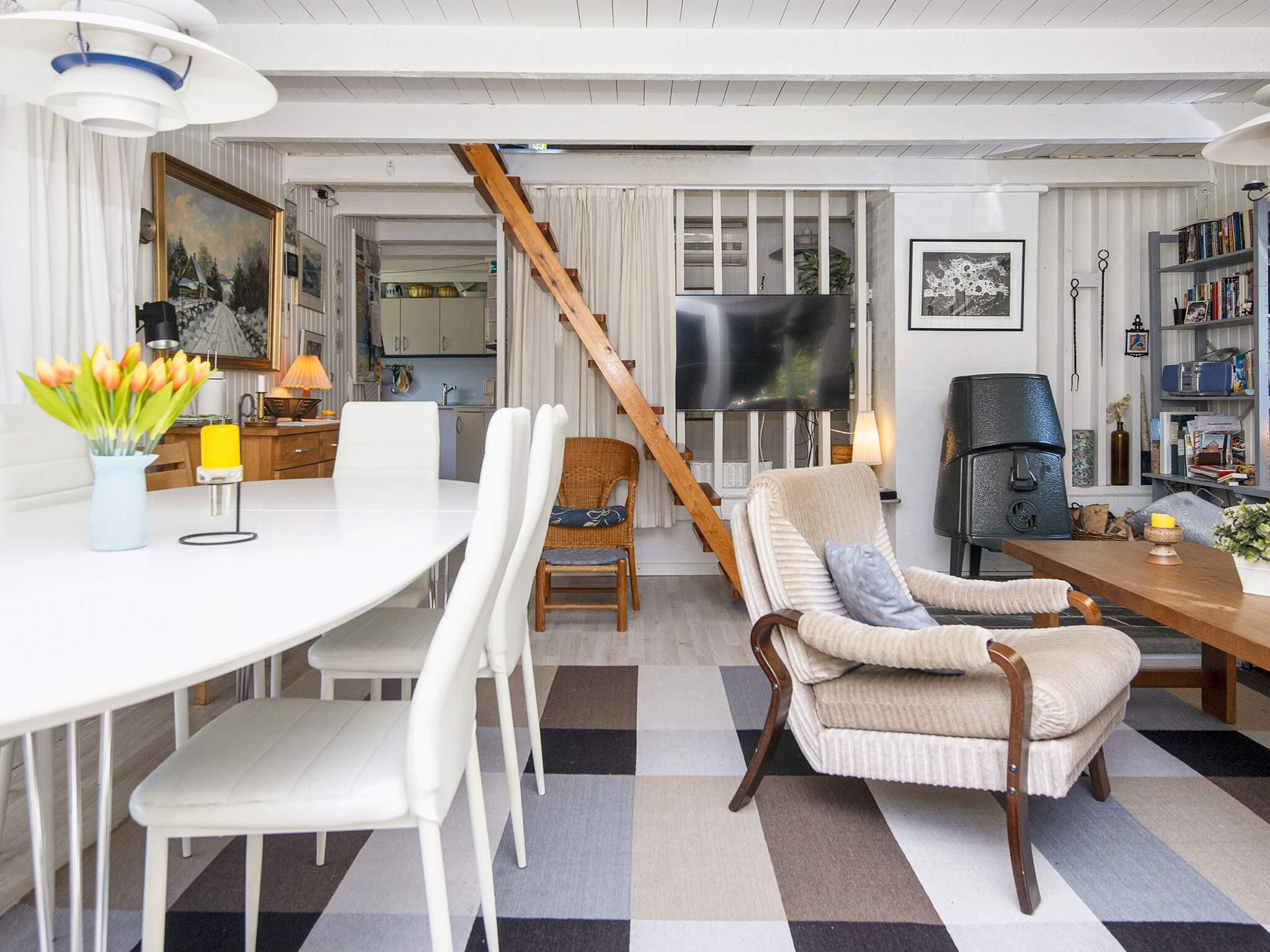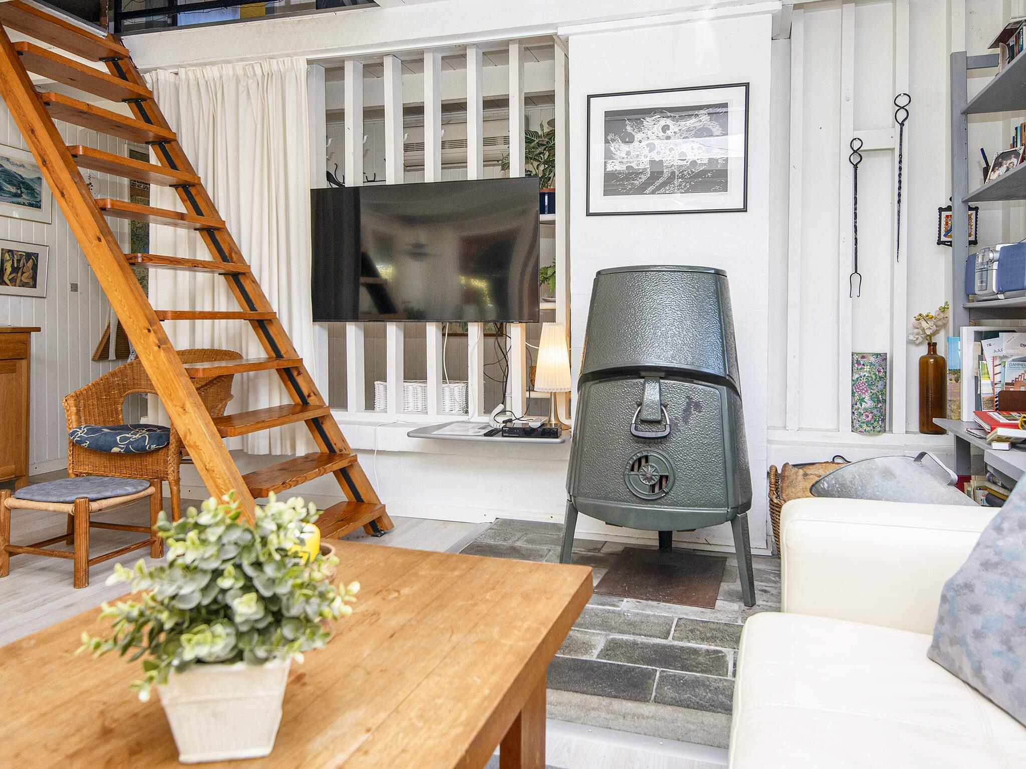 1 Opholdsstue: Brændeovn, radio, stereoanlæg med cd, Chromecast, tv, video, parabol, høj stol