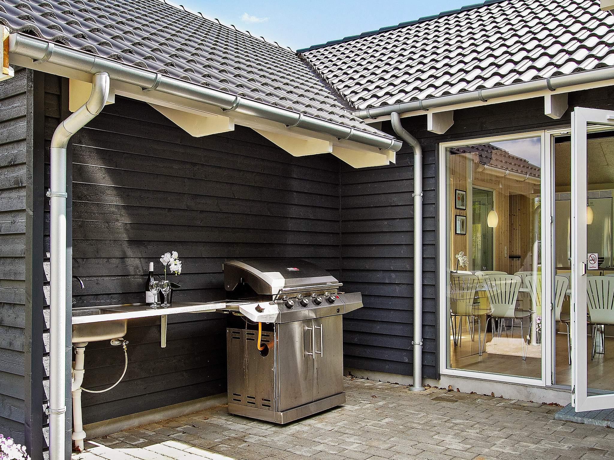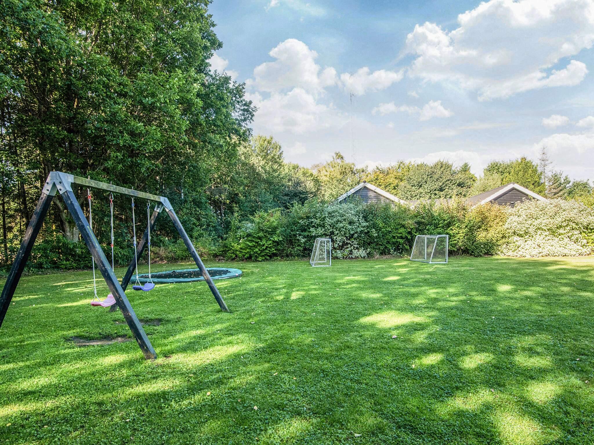 På den store grund, der omkranser huset, er der også tænkt på de mindste gæster med sandkasse og gynger. De voksne kan slænge sig på en solvogn på terrassen.
